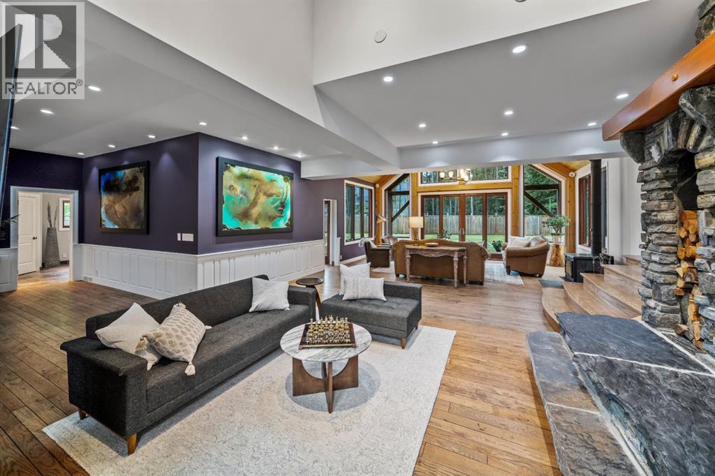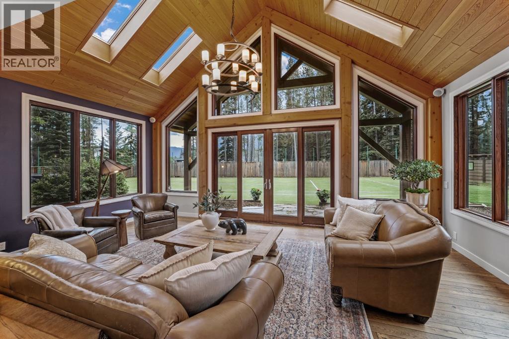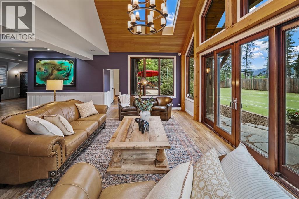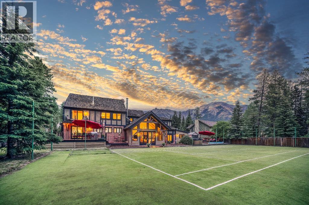 Set within a peaceful and private cul-de-sac, 5 Woodside Lane is a distinguished alpine estate that blends timeless elegance with contemporary refinement. Nestled on an expansive double lot of nearly 19,000 square feet, this property offers rare water and parkland frontage, where a tranquil side channel of the Bow River meanders beside the south-facing backyard and adjacent parkland creates a natural buffer of privacy. The four-bedroom, four-and-a-half-bathroom home unfolds with a sense of considered grandeur. At its heart, the great room features a soaring ceiling with timber accents and a commanding stone fireplace—an architectural centerpiece that evokes warmth and permanence. Expansive windows frame panoramic views of the surrounding peaks, forest, and sky, allowing natural light to spill across the interiors and draw the outdoors in. The interiors are a study in contrast and harmony—where old-world charm meets modern sophistication. Rich wood beams, artisan tilework, and hand-forged details are paired with clean-lined finishes and curated lighting, offering an understated luxury that is both refined and relaxed. Designed for both gracious entertaining and quiet retreat, the home’s layout includes multiple gathering spaces and a thoughtfully appointed kitchen that anchors daily life. The private bedroom suites provide comfort and seclusion, while the home’s lower level offers additional room to unwind or host extended family and guests. Outdoors, a private tennis court and sun-drenched backyard create a lifestyle rarely found in the Rockies—a serene haven within minutes of Canmore’s vibrant downtown and world-class trails. Bordering the eastern edge of Banff National Park, Canmore offers unmatched access to hiking, biking, skiing, and climbing. From this estate, adventure begins at your doorstep. Located in the mature neighbourhoods of Lion’s Park and Larch, 5 Woodside Lane is more than a home—it is a legacy property, offering a singular opportunity to live imme rsed in nature, design, and enduring quality. (id:55577)