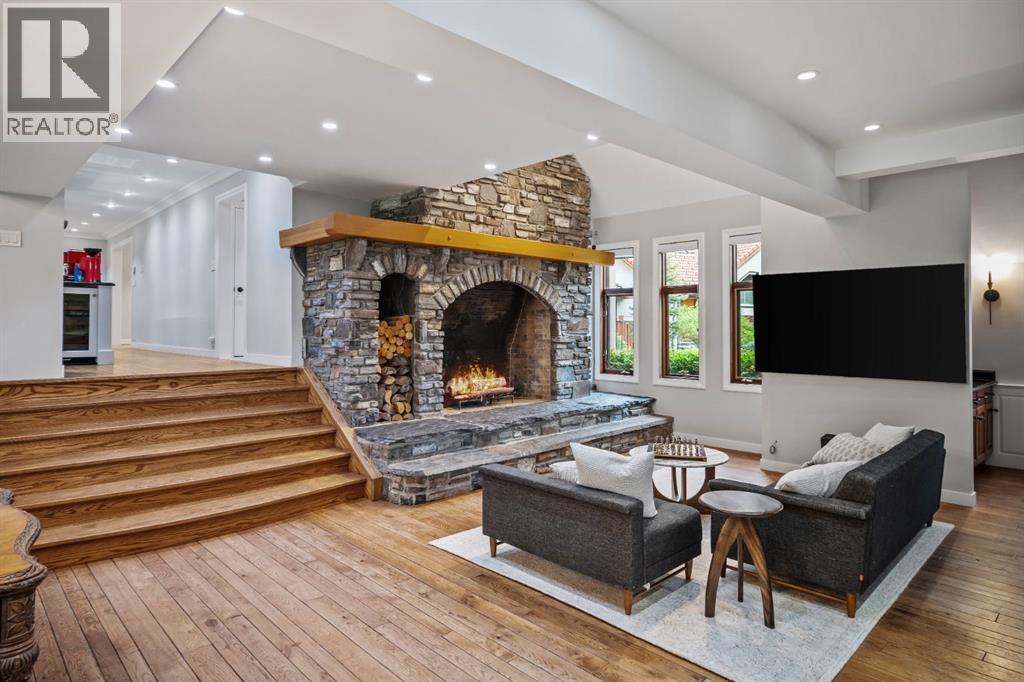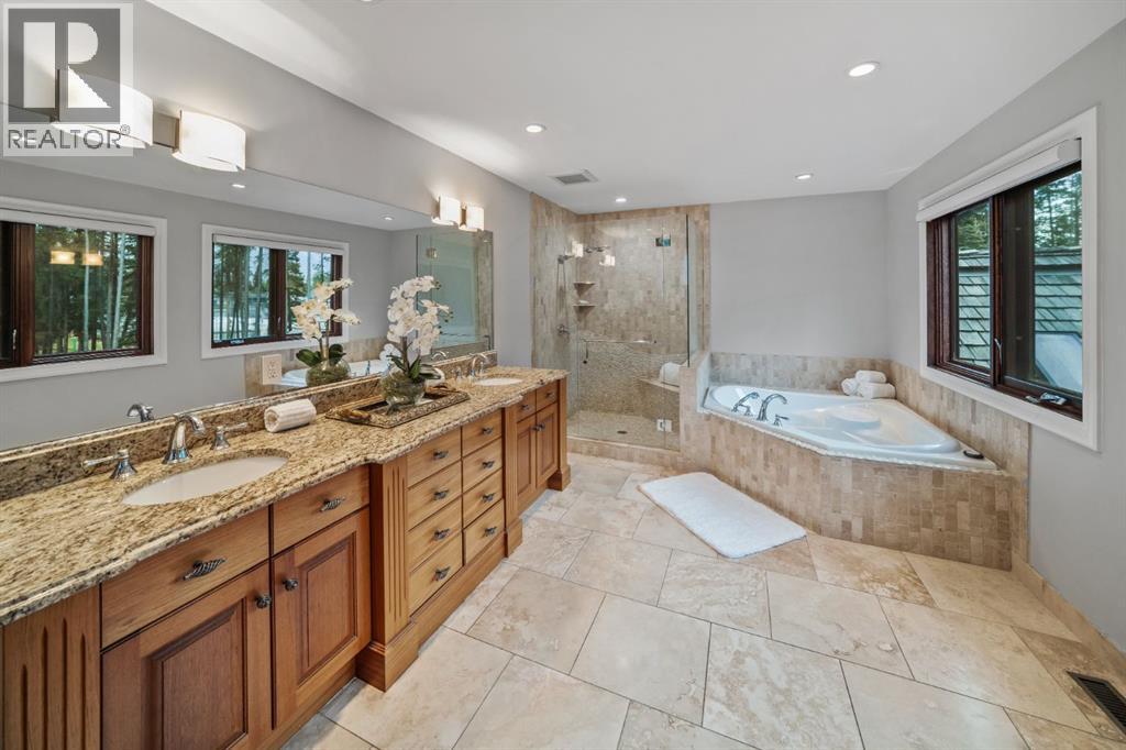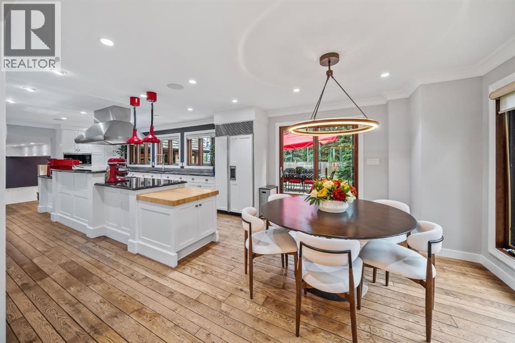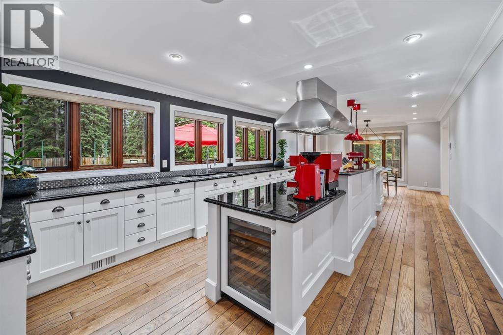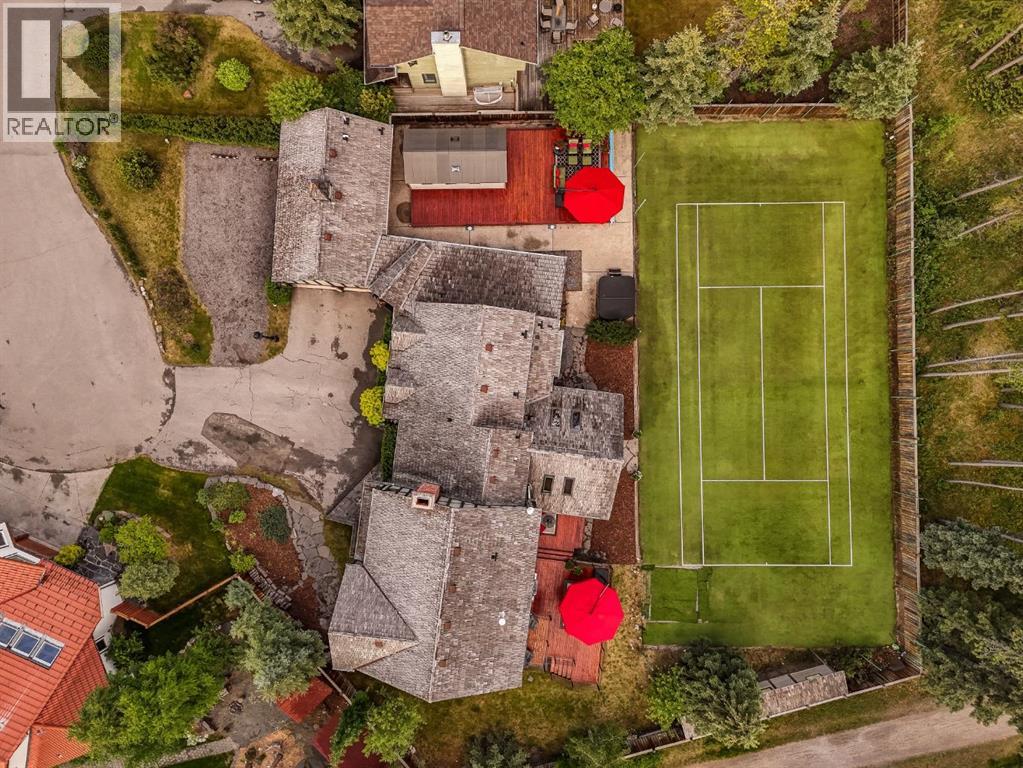 Set within a peaceful and private cul-de-sac, 5 Woodside Lane is a distinguished alpine estate that blends timeless elegance with contemporary refinement. Nestled on an expansive double lot of nearly 19,000 square feet, this property offers rare water and parkland frontage, where a tranquil side channel of the Bow River meanders beside the south-facing backyard and adjacent parkland creates a natural buffer of privacy. The four-bedroom, four-and-a-half-bathroom home unfolds with a sense of considered grandeur. At its heart, the great room features a soaring ceiling with timber accents and a commanding stone fireplace—an architectural centerpiece that evokes warmth and permanence. Expansive windows frame panoramic views of the surrounding peaks, forest, and sky, allowing natural light to spill across the interiors and draw the outdoors in. The interiors are a study in contrast and harmony—where old-world charm meets modern sophistication. Rich wood beams, artisan tilework, and hand-forged details are paired with clean-lined finishes and curated lighting, offering an understated luxury that is both refined and relaxed. Designed for both gracious entertaining and quiet retreat, the home’s layout includes multiple gathering spaces and a thoughtfully appointed kitchen that anchors daily life. The private bedroom suites provide comfort and seclusion, while the home’s lower level offers additional room to unwind or host extended family and guests. Outdoors, a private tennis court and sun-drenched backyard create a lifestyle rarely found in the Rockies—a serene haven within minutes of Canmore’s vibrant downtown and world-class trails. Bordering the eastern edge of Banff National Park, Canmore offers unmatched access to hiking, biking, skiing, and climbing. From this estate, adventure begins at your doorstep. Located in the mature neighbourhoods of Lion’s Park and Larch, 5 Woodside Lane is more than a home—it is a legacy property, offering a singular opportunity to live imme rsed in nature, design, and enduring quality. (id:55577)