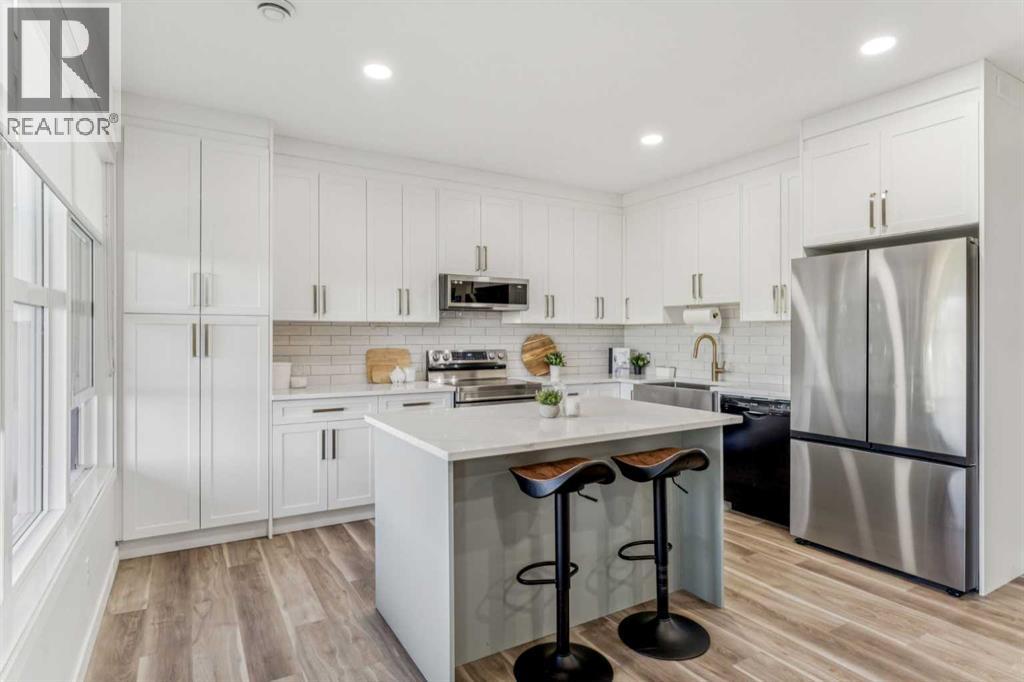 Welcome to your RIVERFRONT RETREAT in the prestigious COMMUNITY of RIVIERA! This former Trico SHOW HOME is perfectly positioned to showcase UNOBSTRUCTED VIEWS of the Bow River, Rocky Mountains, and natural reserve, with NO NEIGHBOURS BEHIND—just tranquility and nature at your doorstep.From the curb, the EXTRA-WIDE CUSTOM PAVING STONE DRIVEWAY and elegant exterior create a striking first impression. Inside, the grand foyer with OPEN-TO-BELOW CEILINGS, 7 ½” OIL-RUBBED HARDWOOD FLOORS, and FLOOR-TO-CEILING WINDOWS fills the space with natural light while framing the stunning river valley vistas.The chef-inspired kitchen is both stylish and functional, featuring an OVERSIZED ISLAND, QUARTZ COUNTERTOPS, MAPLE CABINETRY with a BUILT-IN WINE RACK, stainless steel appliances, and a GAS COOKTOP. The open living room, anchored by a STONE-SURROUND GAS FIREPLACE, is perfect for entertaining, and the FULL-WIDTH REAR DECK invites you to unwind while taking in the breathtaking scenery.Upstairs, a central BONUS ROOM separates the kids’ bedrooms from the private PRIMARY BEDROOM, which boasts sweeping views, a spa-like ENSUITE with SOAKER TUB, 10MM TILE & GLASS SHOWER, DUAL VANITIES, and a WALK-THROUGH CLOSET connecting directly to the laundry room with sink and storage.The FULLY FINISHED WALK-OUT BASEMENT offers additional living space with RIVER VIEWS, a KITCHENETTE WITH ISLAND, 9’ ceilings, full-height windows, GAS FIREPLACE, bedroom, bathroom, and laundry—ideal for extended family, guests, or multi-generational living.Additional highlights include:-Quartz countertops throughout-Custom drapery & upgraded carpets-8’ main floor doors & built-in speakers-Dual furnaces & two A/C units for year-round comfort-Double attached garage with 8’ doors, extra-high ceiling, LED lighting, and 220V wiringLiving in Riviera offers access to the natural reserve, walking paths, the Bow River, golf, a local farmers market, and a pedestrian bridge to the off-leash dog park.This is a rare opportunity to own a luxury riverside home that perfectly combines style, comfort, and location—don’t miss your chance to make it yours! (id:55577)