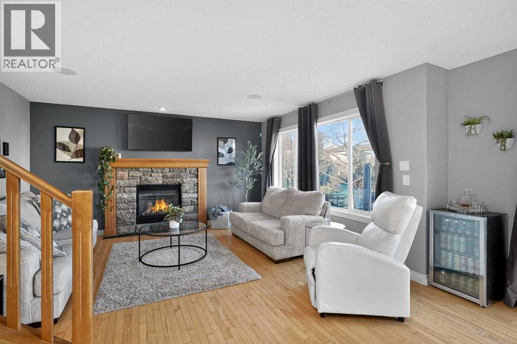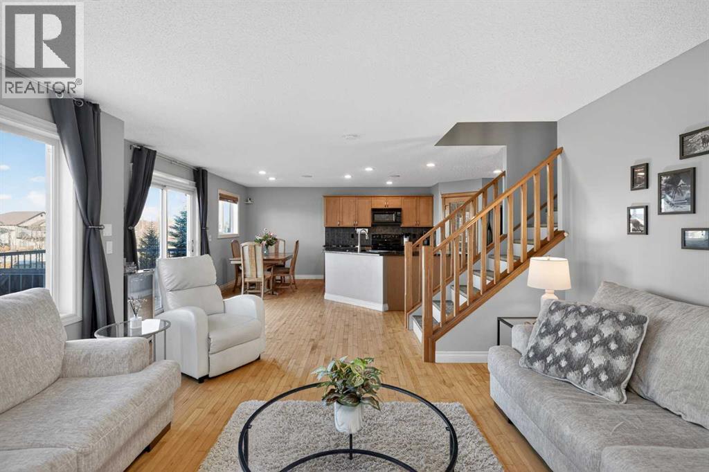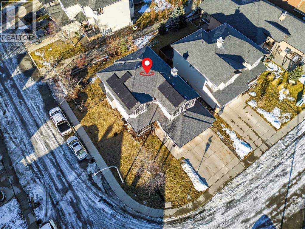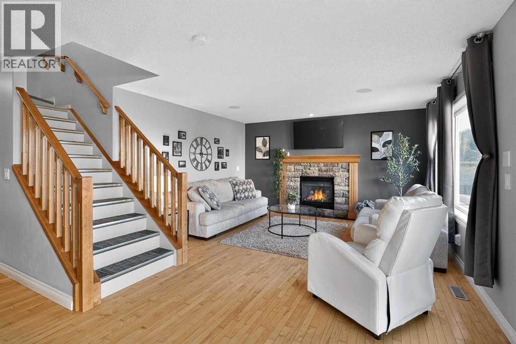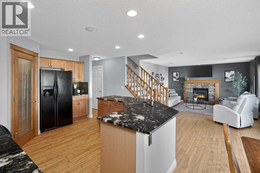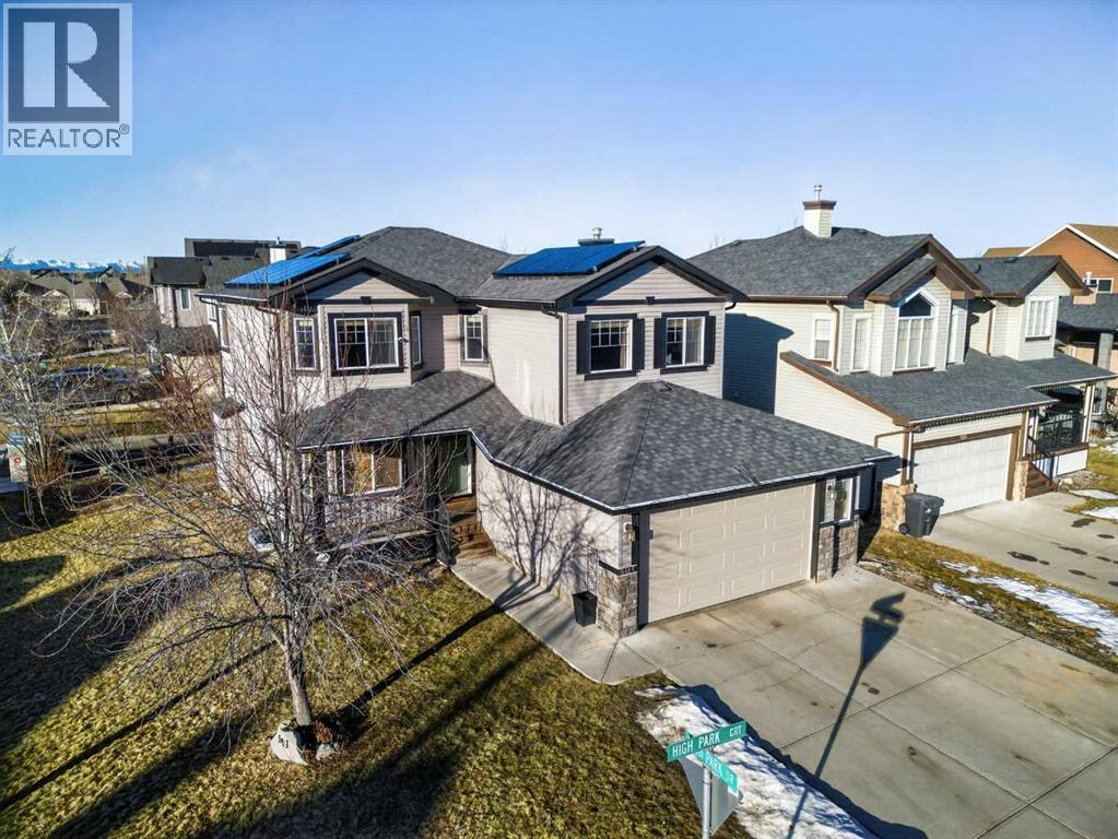 Nestled in the desirable northwest community of Highwood Village, just steps from scenic Highwood Lake, this beautifully upgraded family home perfectly blends modern comfort with everyday functionality. From the moment you step inside, the thoughtful layout and quality upgrades are immediately apparent, including leathered granite countertops throughout, low voltage wiring for a centralized video and sound system, underground irrigation, newly installed solar panels (2025) and hot water tank (2024).A generous 12’ x 14’ front office provides the ideal space for a home based business or private study. The heart of the home is the open concept main floor, highlighted by a stunning kitchen featuring an oversized centre island, walk-through pantry, and seamless flow into the dining and living areas. The inviting living room showcases rich hardwood flooring, a cozy gas fireplace, and expansive west facing windows that fill the space with natural light.Step outside through the breakfast nook to a spacious west-facing backyard complete with a two-tier deck—perfect for entertaining, summer BBQs, or enjoying peaceful sunset evenings. With access from the backyard to walking paths and green space, outdoor enjoyment is right at your doorstep.Upstairs, new vinyl plank flooring leads to a large bonus room with vaulted ceilings, fully wired for a theatre system, creating an inviting retreat for movie nights or family gatherings. The primary suite offers a true escape with his and hers closets and a luxurious five piece ensuite, while two additional bedrooms are thoughtfully located near the laundry room for added convenience.An oversized double attached garage and central air conditioning complete this impressive package. Move in ready and ideally located, this home is designed for modern living in a fantastic community. (id:55577)