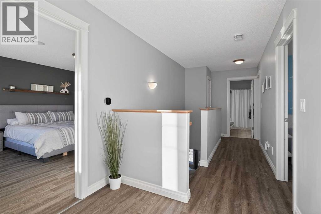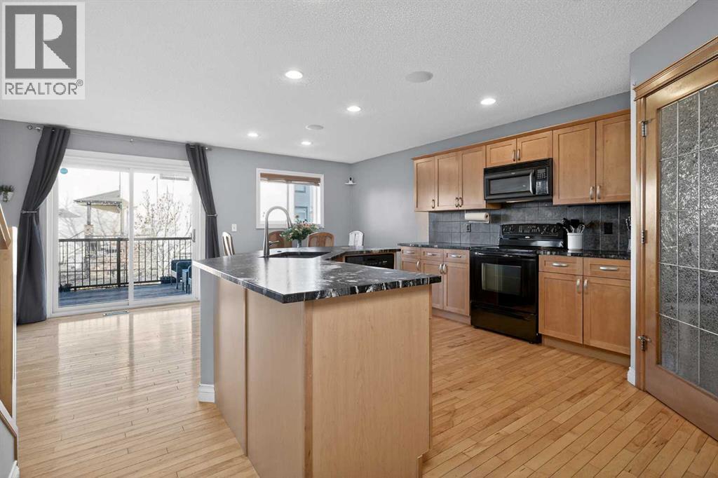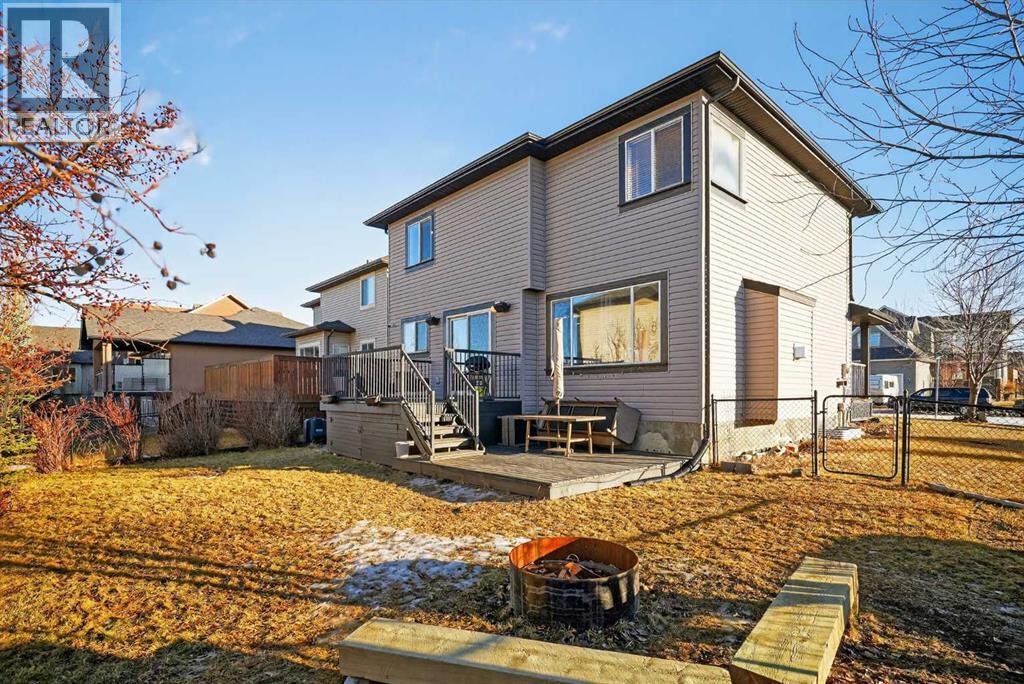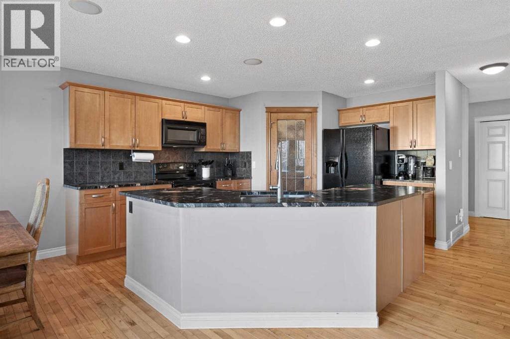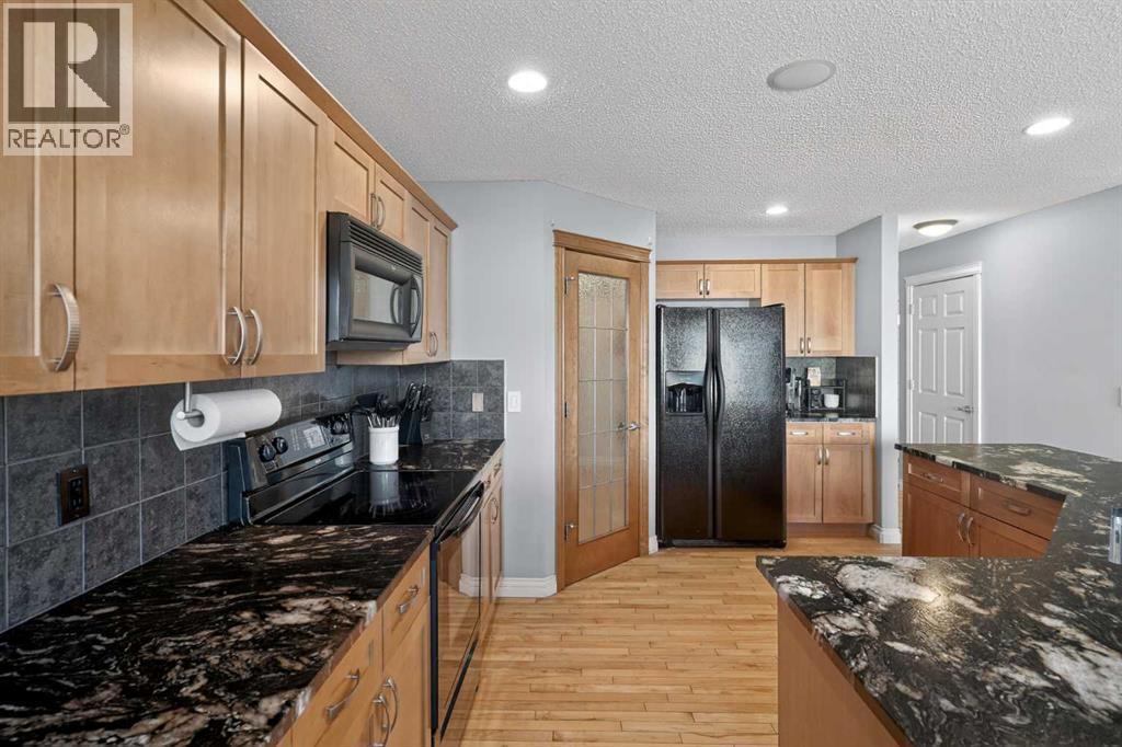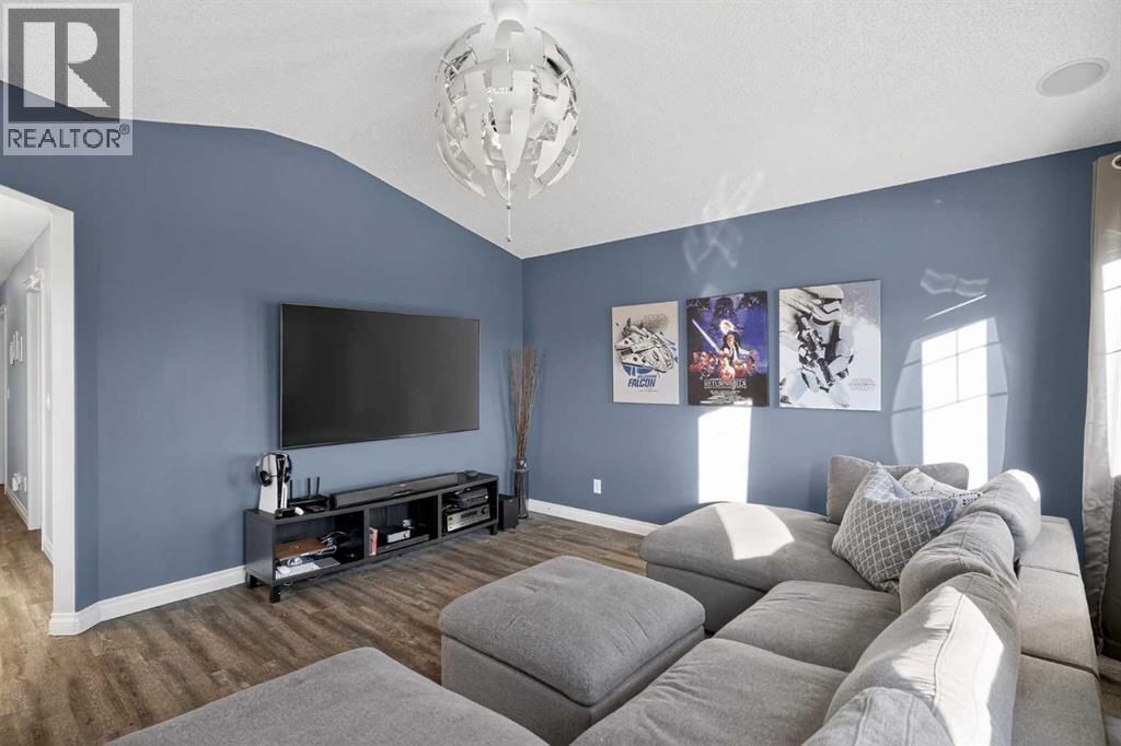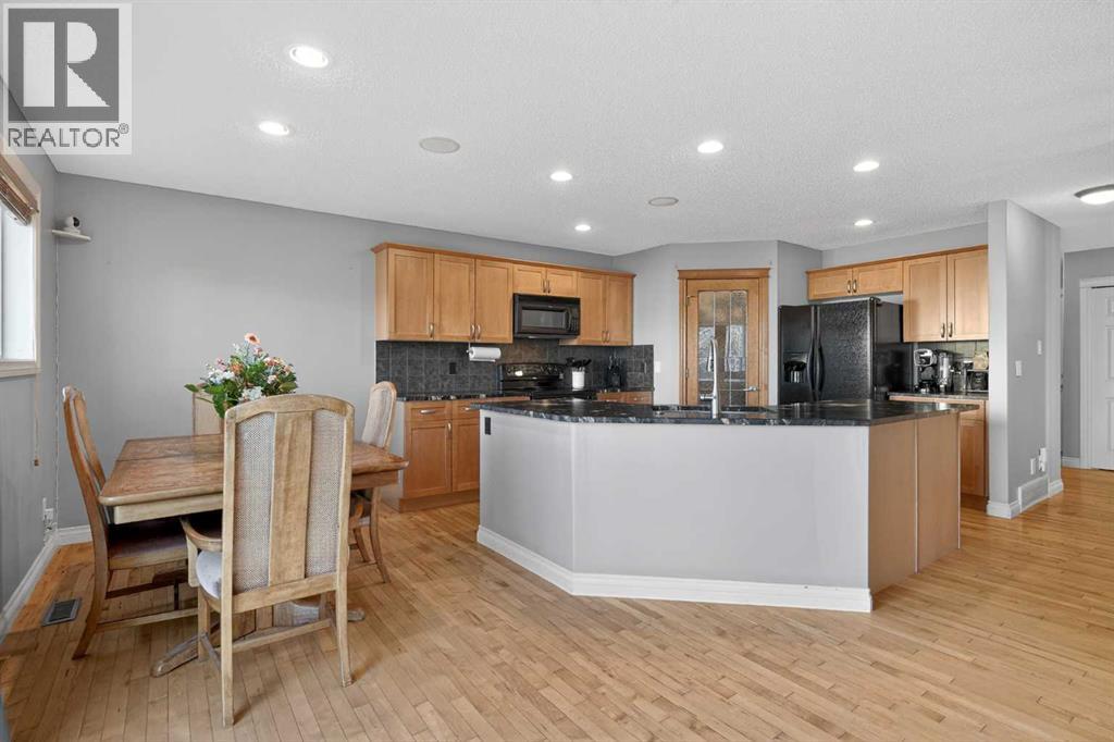 Nestled in the desirable northwest community of Highwood Village, just steps from scenic Highwood Lake, this beautifully upgraded family home perfectly blends modern comfort with everyday functionality. From the moment you step inside, the thoughtful layout and quality upgrades are immediately apparent, including leathered granite countertops throughout, low voltage wiring for a centralized video and sound system, underground irrigation, newly installed solar panels (2025) and hot water tank (2024).A generous 12’ x 14’ front office provides the ideal space for a home based business or private study. The heart of the home is the open concept main floor, highlighted by a stunning kitchen featuring an oversized centre island, walk-through pantry, and seamless flow into the dining and living areas. The inviting living room showcases rich hardwood flooring, a cozy gas fireplace, and expansive west facing windows that fill the space with natural light.Step outside through the breakfast nook to a spacious west-facing backyard complete with a two-tier deck—perfect for entertaining, summer BBQs, or enjoying peaceful sunset evenings. With access from the backyard to walking paths and green space, outdoor enjoyment is right at your doorstep.Upstairs, new vinyl plank flooring leads to a large bonus room with vaulted ceilings, fully wired for a theatre system, creating an inviting retreat for movie nights or family gatherings. The primary suite offers a true escape with his and hers closets and a luxurious five piece ensuite, while two additional bedrooms are thoughtfully located near the laundry room for added convenience.An oversized double attached garage and central air conditioning complete this impressive package. Move in ready and ideally located, this home is designed for modern living in a fantastic community. (id:55577)