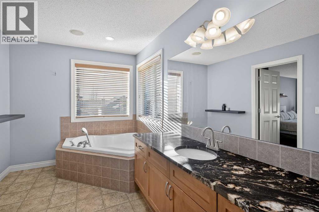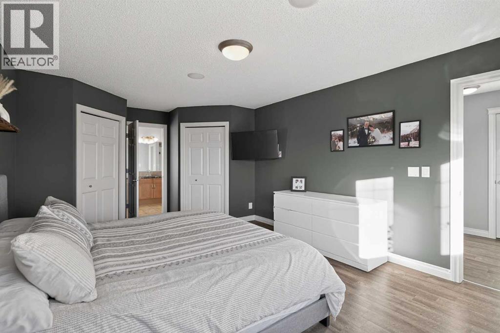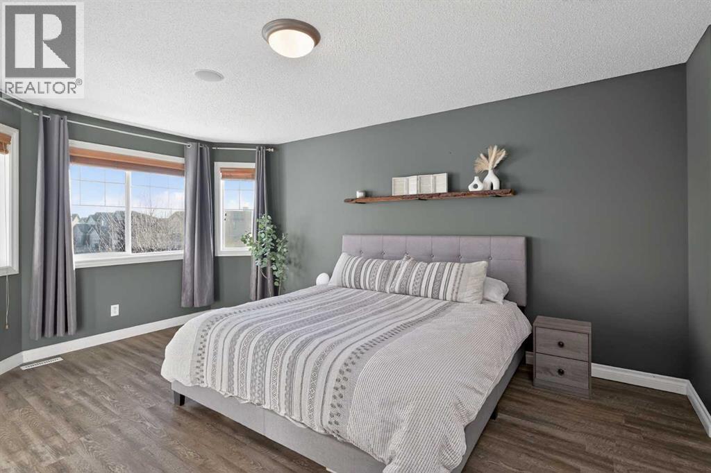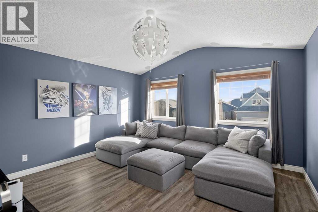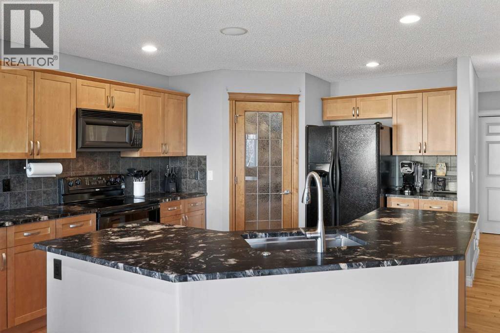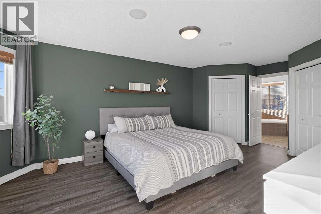 Nestled in the desirable northwest community of Highwood Village, just steps from scenic Highwood Lake, this beautifully upgraded family home perfectly blends modern comfort with everyday functionality. From the moment you step inside, the thoughtful layout and quality upgrades are immediately apparent, including leathered granite countertops throughout, low voltage wiring for a centralized video and sound system, underground irrigation, newly installed solar panels (2025) and hot water tank (2024).A generous 12’ x 14’ front office provides the ideal space for a home based business or private study. The heart of the home is the open concept main floor, highlighted by a stunning kitchen featuring an oversized centre island, walk-through pantry, and seamless flow into the dining and living areas. The inviting living room showcases rich hardwood flooring, a cozy gas fireplace, and expansive west facing windows that fill the space with natural light.Step outside through the breakfast nook to a spacious west-facing backyard complete with a two-tier deck—perfect for entertaining, summer BBQs, or enjoying peaceful sunset evenings. With access from the backyard to walking paths and green space, outdoor enjoyment is right at your doorstep.Upstairs, new vinyl plank flooring leads to a large bonus room with vaulted ceilings, fully wired for a theatre system, creating an inviting retreat for movie nights or family gatherings. The primary suite offers a true escape with his and hers closets and a luxurious five piece ensuite, while two additional bedrooms are thoughtfully located near the laundry room for added convenience.An oversized double attached garage and central air conditioning complete this impressive package. Move in ready and ideally located, this home is designed for modern living in a fantastic community. (id:55577)