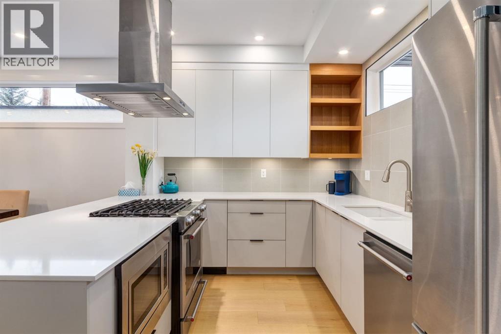 This 3-storey Townhouse by RNDSQR offers over total 2,290 sqft of well-designed, features open, bright, wide-plank hardwood, large windows, and a seamless flow from the living and dining area into a perfect kitchen with quartz counters, a gas range and high-end appliances on main level. On the second level, you'll see a comfortable primary bedroom with a 4-piece ensuite and walk-in closet, a second bedroom, a full 4-piect bathroom, and laundry area. Upstair on the 3rd level there's a bonus room which gives you the options for a home office, second living room, or converted into another bedroom. From there step out onto your private rooftop patio with views of Glenmore Athletic Park. The fully finished basement adds a third bedroom, full bathroom, and a rec space that works well as a guest area, gym, or cozy media room. You can access privately to the detached garage through your backdoor. Just steps from River Park, Sandy Beach, and Glenmore Athletic Park. (id:55577)
