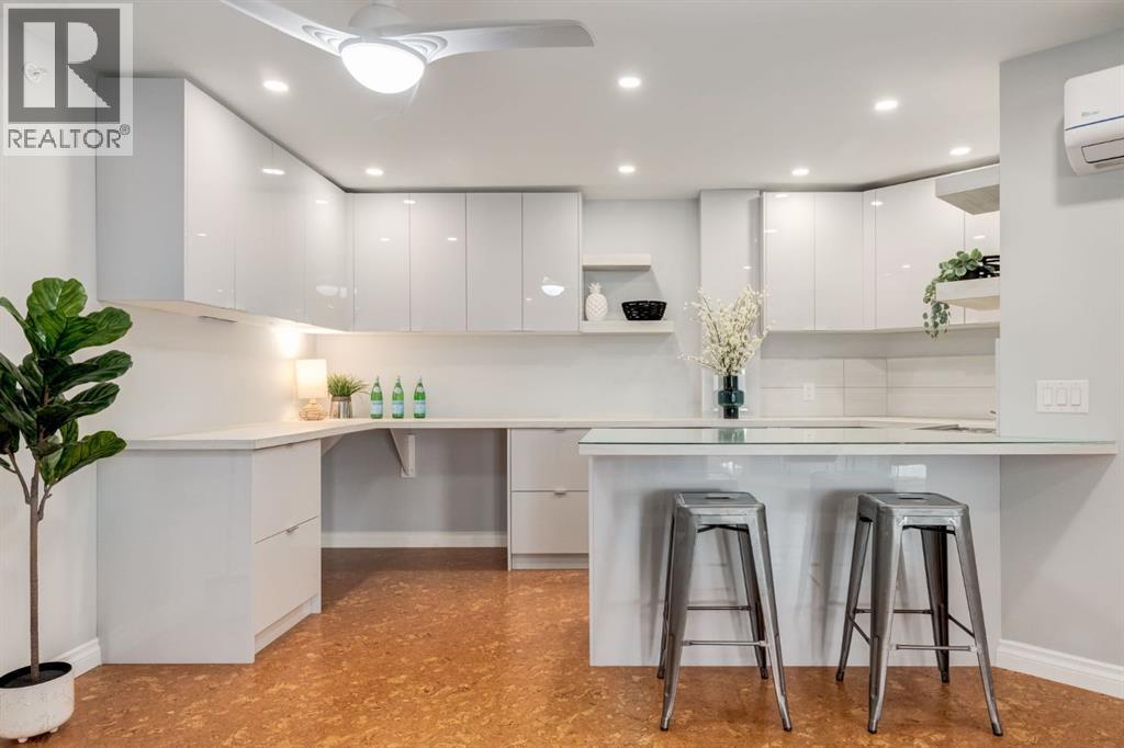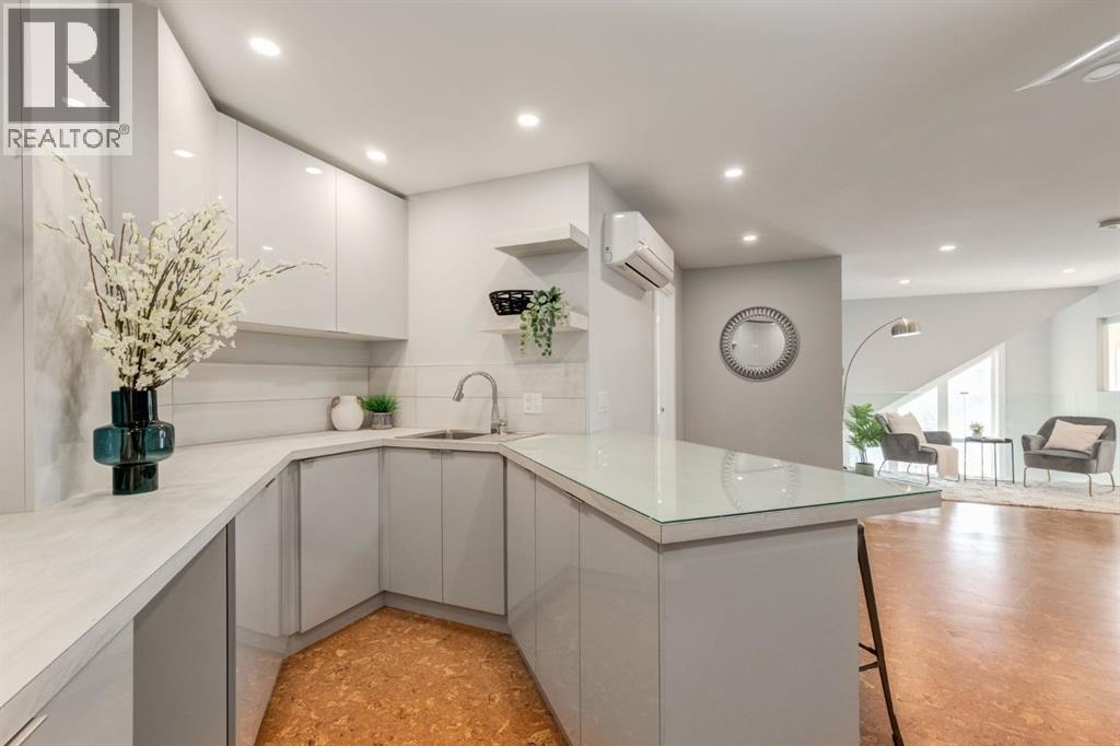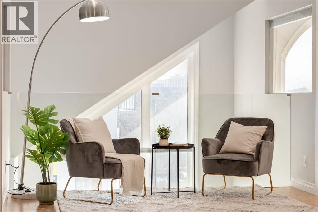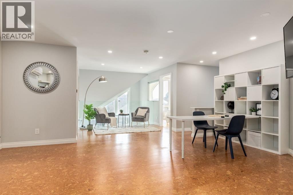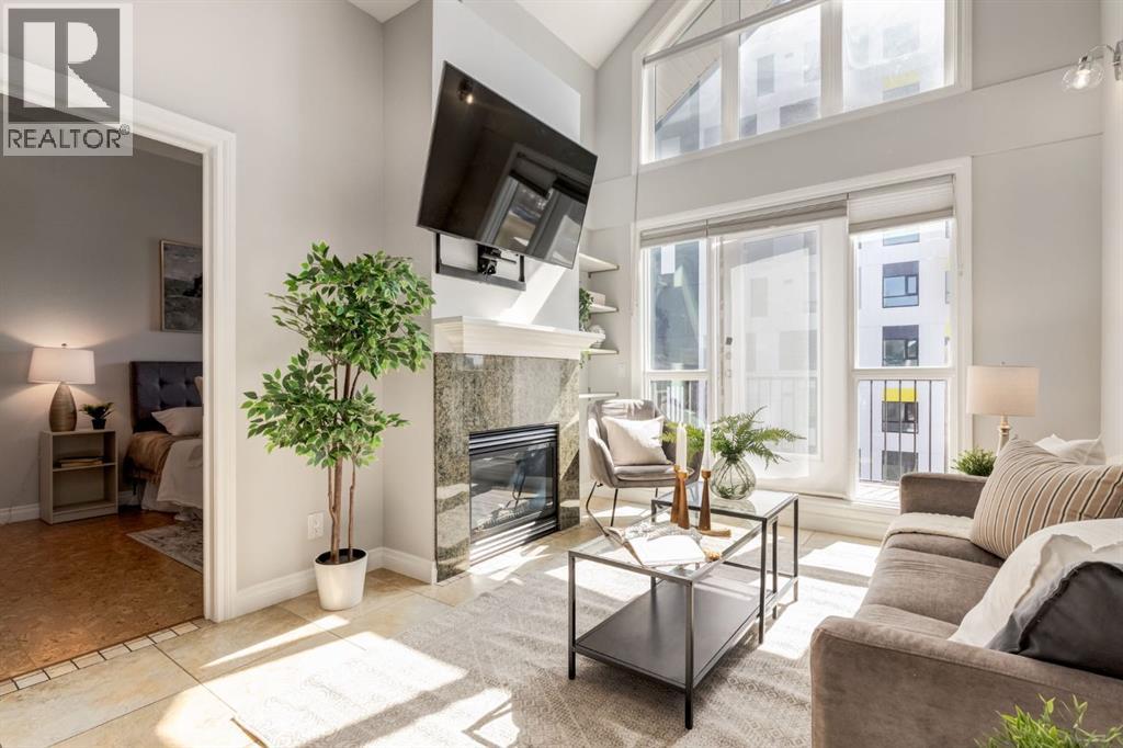 This spectacular, one of a kind four-bedroom penthouse loft offers unparalleled luxury lifestyle in trendy Mission, offers 4 bedrooms, 1,791sqft of space, the feel of a large two-storey home, and an unbelievably low condo fee. This crown jewel, top floor home showcases soaring 19ft vaulted ceilings, three full bathrooms, air conditioning, is flooded with natural light through enormous south facing windows and has the character and charm that is hard to find in today’s cookie-cutter world. Located just steps from the Elbow River, Stampede Park, MNP Center, transit, and all the amenities downtown and 17th Ave have to offer, this unique home is an unforgettable masterpiece. As you enter, you are greeted by a sprawling front entryway with a large coat closet, and room for bench seating. The entryway leads to your expansive, open-concept living space that showcases massive south facing windows, and boasts 10-foot ceilings with a 19ft vault over the living room. The stylish kitchen features granite countertops, bar seating, stainless steel appliances, and timeless white cabinetry. Just off the kitchen, your dining space flows perfectly with room to host family and friends. Your eye will be naturally drawn to your impressive living room with a striking gas fireplace with an elegant tile surround and classic, white mantle. The living room is drenched with natural light through vast windows that reach up to the vaulted ceiling. Step outside onto your south facing balcony that comes complete with natural gas and provides views of the river valley and Stampede Park. The main floor showcases your sprawling primary suite with vaulted ceilings, room for king-sized furniture and a designated seating nook. The primary bedroom has two large walk-in closets, and an enormous ensuite bathroom that features a large soaker tub and stand-up shower. The main floor also has a large second bedroom with warm cork flooring and is completed by a 4-piece bathroom with granite countertops, and la undry. Upstairs has been completely re-imagined and renovated in 2019, providing a one-of-a-kind layout, and extra square footage. The upper level is dripping with elegance and includes two additional large bedrooms, and a quaint sitting area overlooking the Elbow River. The upper-level features warm cork flooring, and a bonus space that is perfect for crafts, playing, work, or as a secondary media space. The upper level also boasts a sprawling kitchenette that provides can be used as a bar space, a secondary kitchen, or for your creative business endeavours. The upper level is finished by a beautiful 4-piece bathroom with dual vanities,and a sophisticated stand-up shower with elegant niche and stunning white tile. This masterfully designed home has the space and feel to provide an incredible home for your family while still enjoying the benefits of inner-city living. Featuring A/C throughout, a separate storage unit, and the feel of a detached home, this stunning penthouse is a one-of-a-kind opportunity. (id:55577)