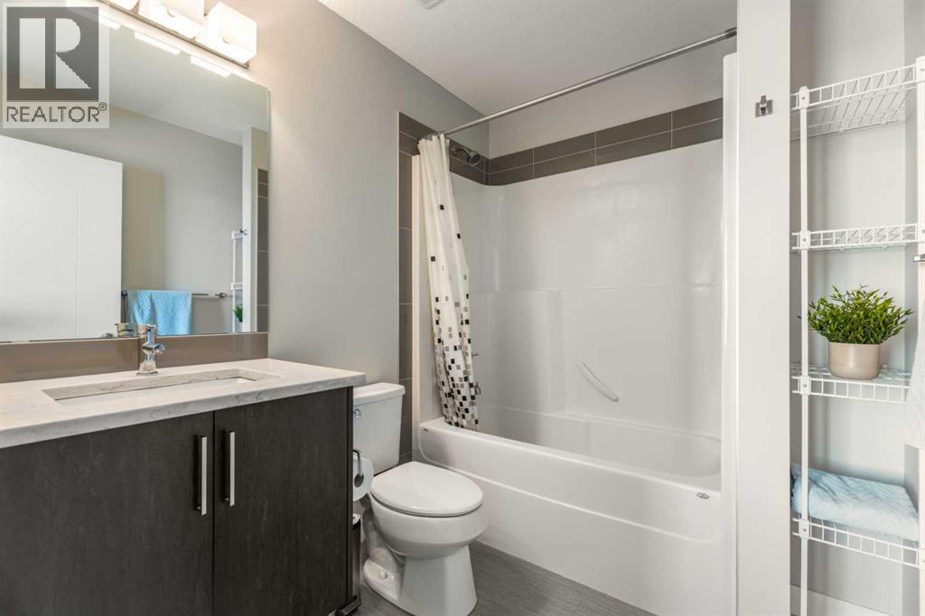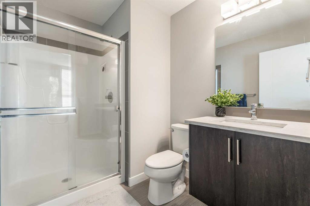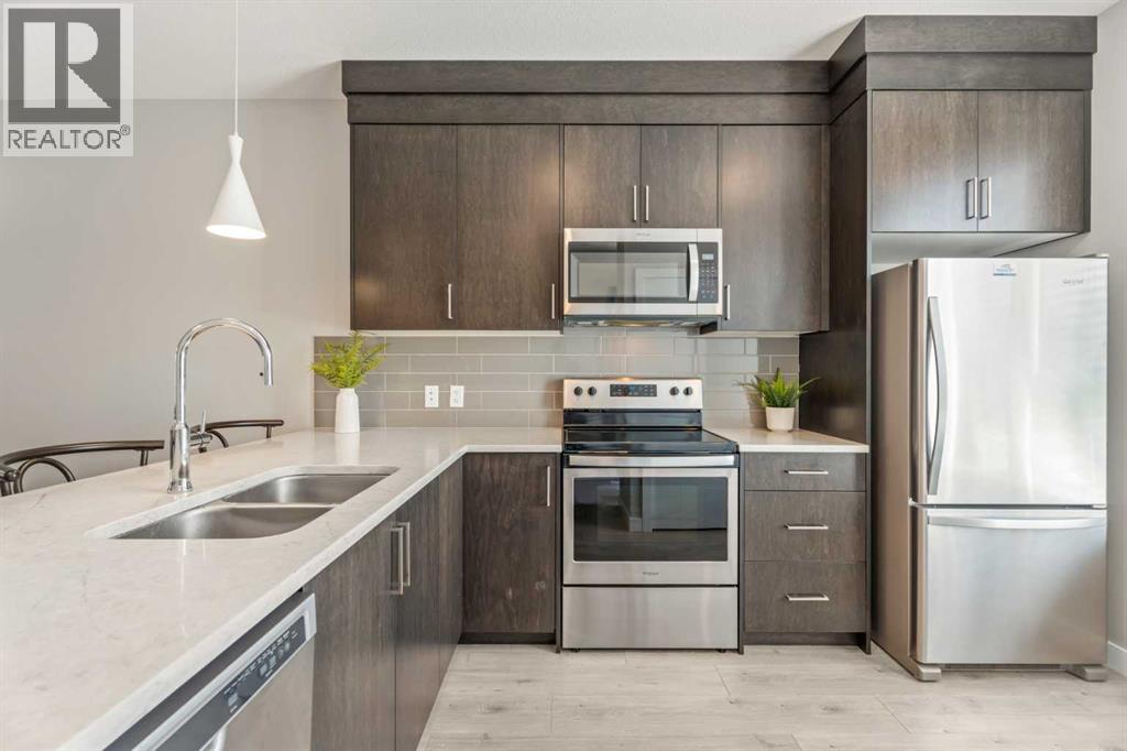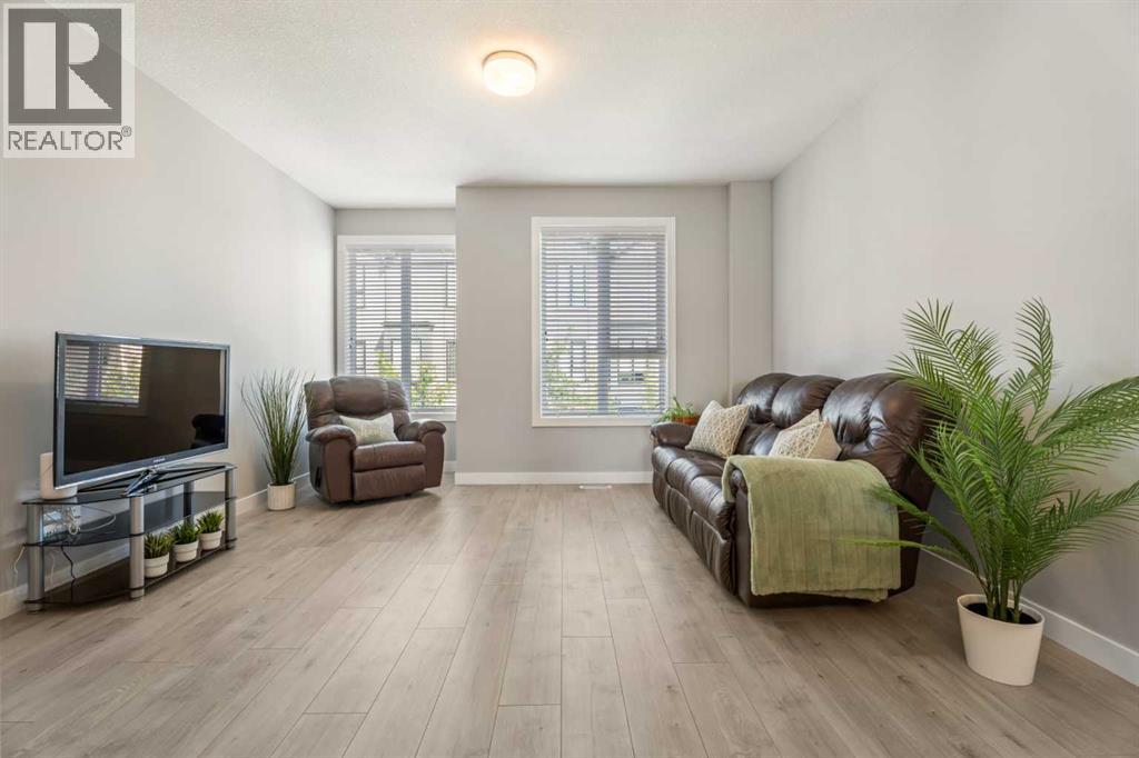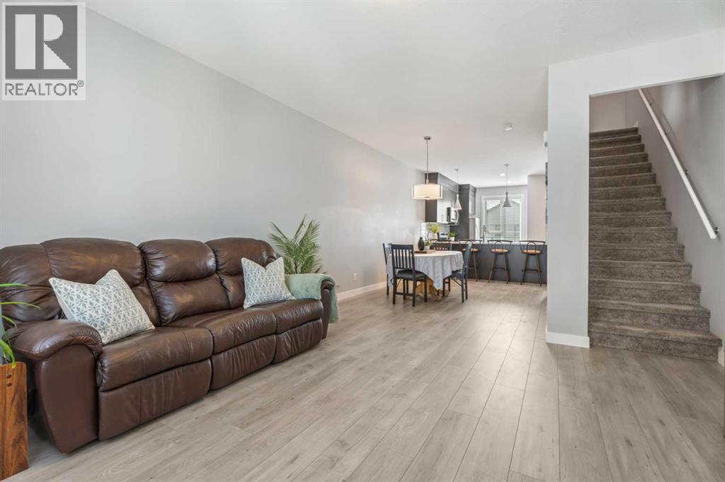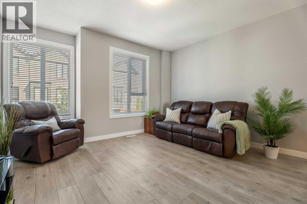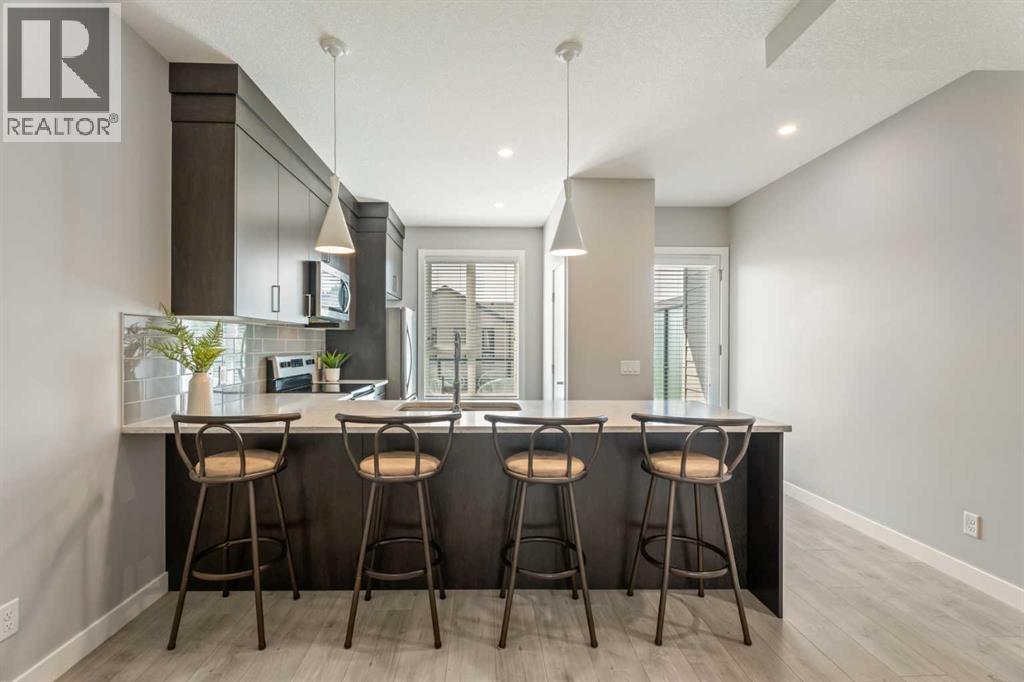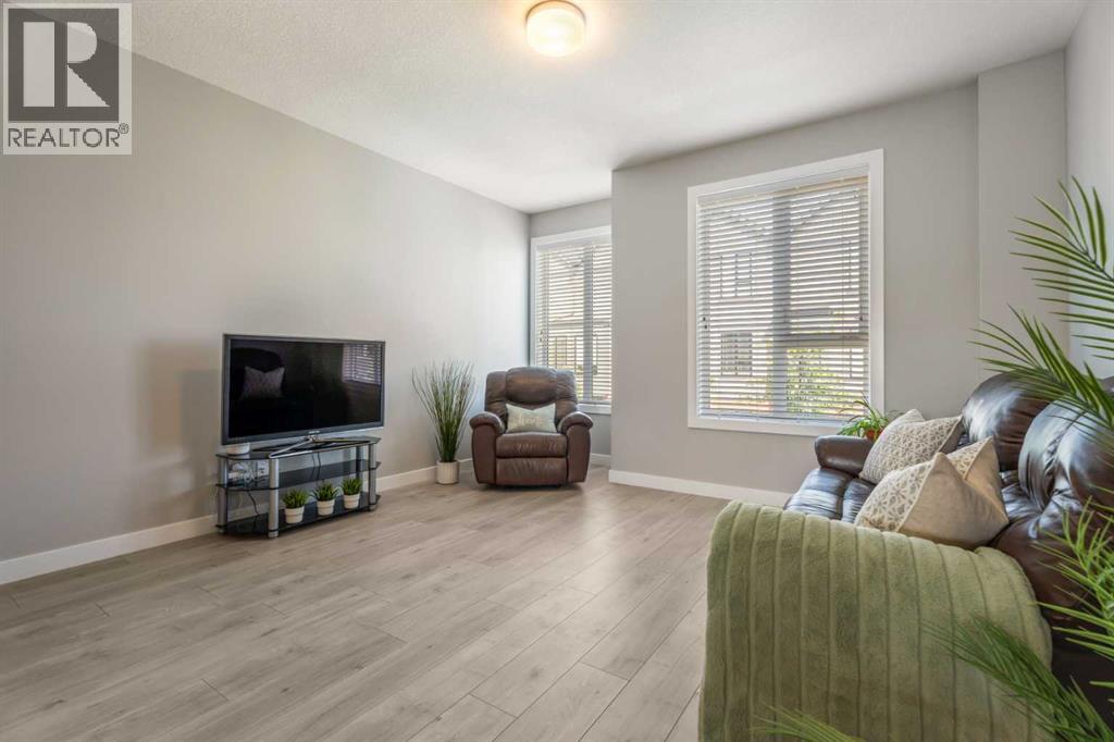 This sleek and modern townhouse in the heart of Drake Landing offers a stylish and functional layout that’s perfect for a variety of lifestyles. Featuring dual primary suites, each with their own private ensuite, plus a third room on the lower level that’s ideal as a home office, guest space, or an extra bedroom, this home is designed with flexibility in mind. The open concept main level is bright and inviting, with a modern kitchen that blends clean lines, contemporary finishes, and plenty of prep space. Just off the kitchen, you'll find a spacious balcony with mountain views, the perfect spot to fire up the BBQ and enjoy the sunset. Downstairs, the ground level patio offers an additional outdoor retreat, ideal for lounging or letting pets out with ease. You’ll also love the convenience of the single attached garage with a full driveway, offering space for two vehicles and extra storage. And with air conditioning, you’ll stay cool and comfortable all summer long. Tucked into the quiet section of the complex this unit is off the main road! Located in the sought after community of Drake Landing, this home is close to parks, schools, and walking paths and with a brand new commercial area on the way, life here is soon to get even better. Stylish, low maintenance living with thoughtful extras and a view this one is not to be missed! (id:55577)