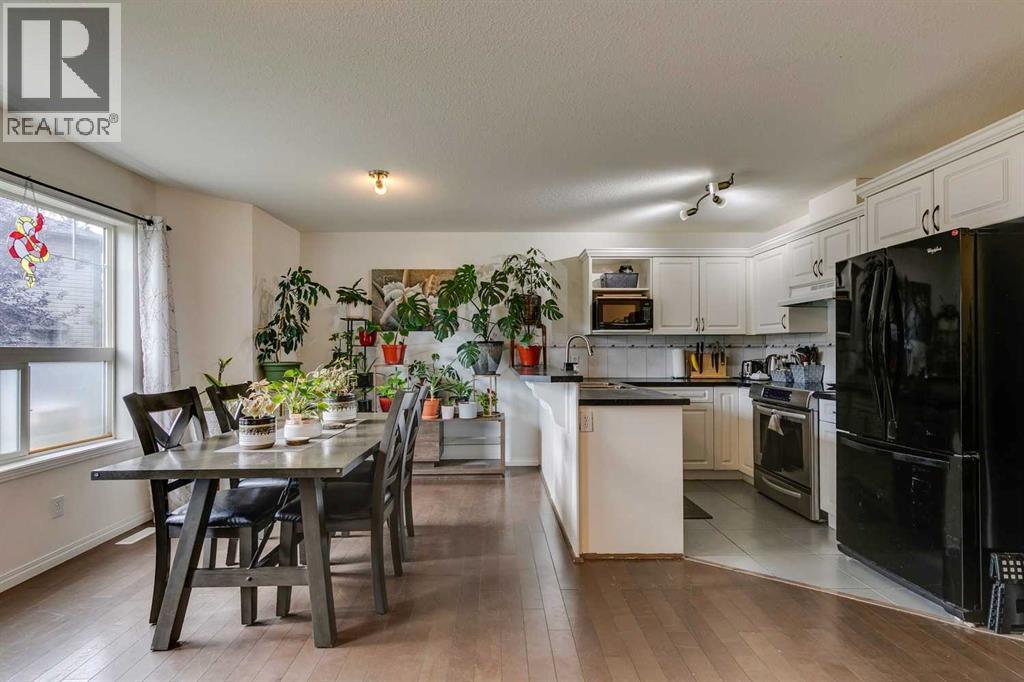 Ideally located close to schools and shopping, this 4 bedroom 3.5 bathroom townhouse is a great option for young families, first time buyers, or investors. The monthly fees are among the lowest of any townhome project in town, and the complex is well managed with a healthy reserve fund. The main floor has an open concept design with lots of natural light, and the kitchen features white cabinets and a raised breakfast bar with seating. Off the dining area is access to a small patio and BBQ space with a patch of grass that provides separation from the neighbors. The home is tucked into a quiet cul de sac with no through traffic, making it an excellent setting for kids. Upstairs are 3 bedrooms and 2 full bathrooms including a primary with double closets and a 3 piece ensuite. The fully finished lower level offers a large recreation room or TV area, a 4th bedroom with a good sized window, and another 4 piece bathroom with tile flooring. A single attached garage adds convenience and is especially welcome in the winter. (id:55577)