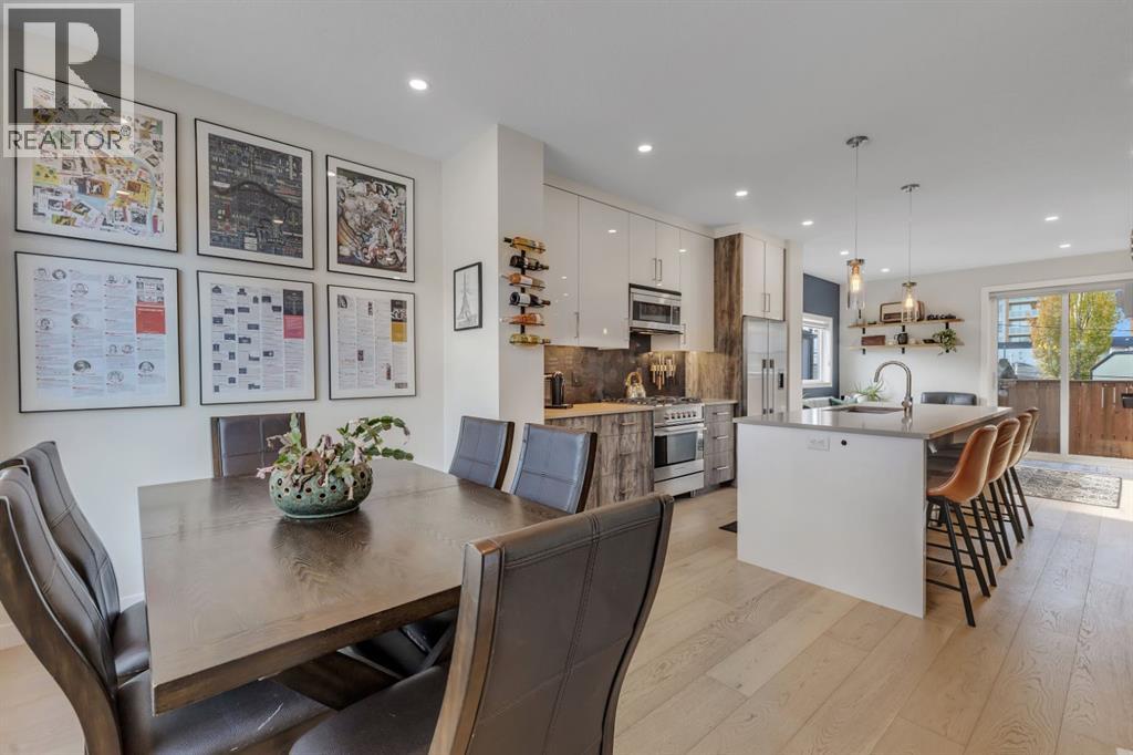 Experience refined living in one of Calgary's most sought after neighbourhoods- Windsor Park! This upscale townhome offers the perfect blend of elegance, comfort & modern design. From the moment you step inside, you are greeted by a bright, open concept layout. The kitchen is a true showpiece; equipped with Fisher & Paykel appliances, sleek cabinetry and a gorgeous island; an excellent space for entertaining. Cozy up in the living room next to the gas fire place on those chilly days & turn on the A/C on those hot days! A stunning glass-encased staircase adds to this homes modern elegance. The upper level continues to impress; a stunning skylight that fills the BONUS ROOM with natural light, spacious bedrooms & IN-FLOOR heating in ALL full bathrooms, for year round comfort! The primary bedroom features high ceilings, a large walk-in closet with built in shelving, and a 4 piece bathroom with double vanities. The upstairs second bedroom features a walk-in closet as well. The fully FINISHED BASEMENT offers additional living space, equipped with a wet bar, living room, a third bedroom & another full bathroom (with in-floor heating). Ideal for a media room, home office or entertainment space! Step outside on to your private, fenced in patio yard- steps away from your detached garage and equipped with a natural gas line. This exceptionally well maintained home's location has it all! Walking distance to Brittania Plaza, Chinook Mall, Stanley Park & dog parks. Just a 10 minute drive to the heart of downtown & only 7 minutes to Mission shops! Come see this immaculate property yourself & experience all that Windsor Park has to offer! (id:55577)