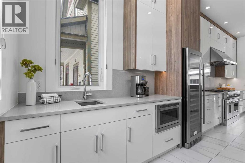 Modern Sophistication Meets Urban Living. Situated on a quiet, premier street, this custom home perfectly blends luxury with an unbeatable location. The centerpiece is a thoughtfully designed chef’s kitchen, featuring Jenn-Air appliances, a spacious entertaining island, and a butler’s pantry. Natural light floods the open-concept main level through a west-facing wall of windows, seamlessly connecting the living and dining areas. The office/flex room, with floor-to-ceiling windows, offers an inspiring space to work or unwind. On the second floor, the king-sized primary bedroom offers a stunning view of the downtown skyline. The 6-piece ensuite is a true retreat, including a freestanding slipper tub, steam shower, dual vanities, a water closet, and a walk-in closet. Two additional bedrooms with walk-in closets, a 4-piece bathroom, and a laundry room complete this level. The basement includes a family room, a rec room with a wet bar, a fourth bedroom, a 3-piece bathroom, and radiant floor heating throughout this level for maximum comfort. Step outside to a private west-facing backyard with an outdoor gas fireplace, BBQ, custom masonry, and an exposed aggregate patio, creating a seamless extension of the living space. A heated triple-car detached garage with epoxy flooring adds the finishing touch. Features include an east-facing front and a west-facing backyard for all-day sunlight, a mudroom with cabinets and storage, custom window coverings, central air conditioning, home automation system, an irrigation system, central vacuum/attachments, and more. Located on a quiet street in Bridgeland, you'll be walkable to all the local amenities and downtown, plus easy access to main roads for convenient city-wide access. (id:55577)
