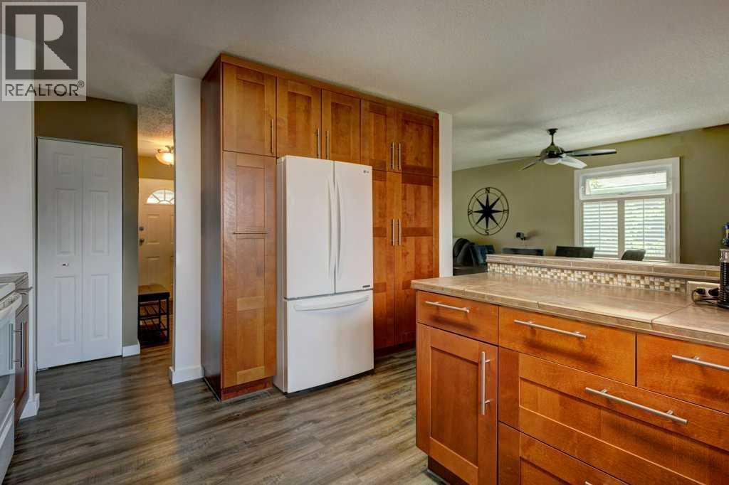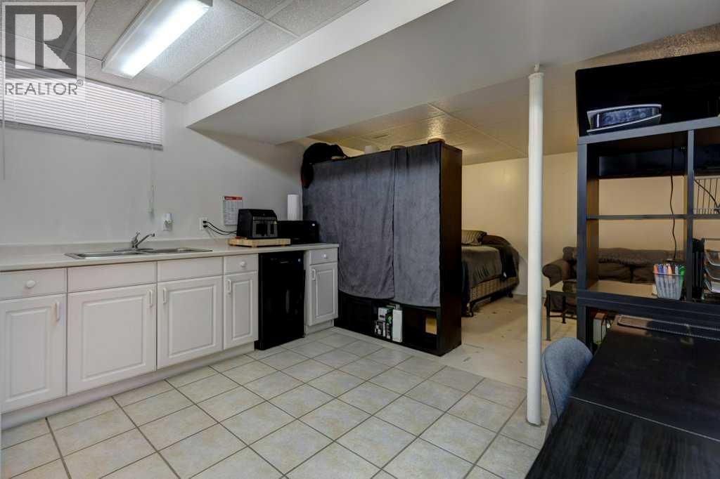 This beautifully maintained and extensively updated bungalow offers a purposeful blend of functionality, style, and location. Situated on a generous 50x100 ft lot on a quiet, tree-lined street, this 4-bedroom, 2-bathroom home presents over 1,700 sq ft of total developed space, catering to families, professionals, and investors alike.The main level is thoughtfully designed, featuring durable luxury vinyl plank flooring and custom blinds and shutters throughout. At the heart of the home is a professionally renovated kitchen, complete with stone countertops, full-height cabinetry, built in pantry, and tasteful finishes that balance both form and function. The main-floor bathroom has also been updated with a clean, modern aesthetic and a practical 3-piece layout, featuring a large trough sink, walk-in shower and stylish tile. The fully developed basement—configured as an illegal suite—offers over 700 sq ft of additional living space, ideal for multigenerational living or income potential. Mechanical upgrades include a new high-efficiency furnace and hot water tank (2021), a new roof (2024), and a newly installed fence (2025), providing peace of mind and low future maintenance costs.Outdoors, the expansive, south-facing backyard is perfect for entertaining or relaxing, featuring a stone patio, RV parking capability, and a 445 sq ft heated, detached garage with an 8-ft overhead door—ideal for car enthusiasts, a workshop, or extra storage. Located close to parks, schools, public transit, and amenities, this home represents an outstanding opportunity in a highly desirable, family-friendly community with idealic curb appeal. (id:55577)
