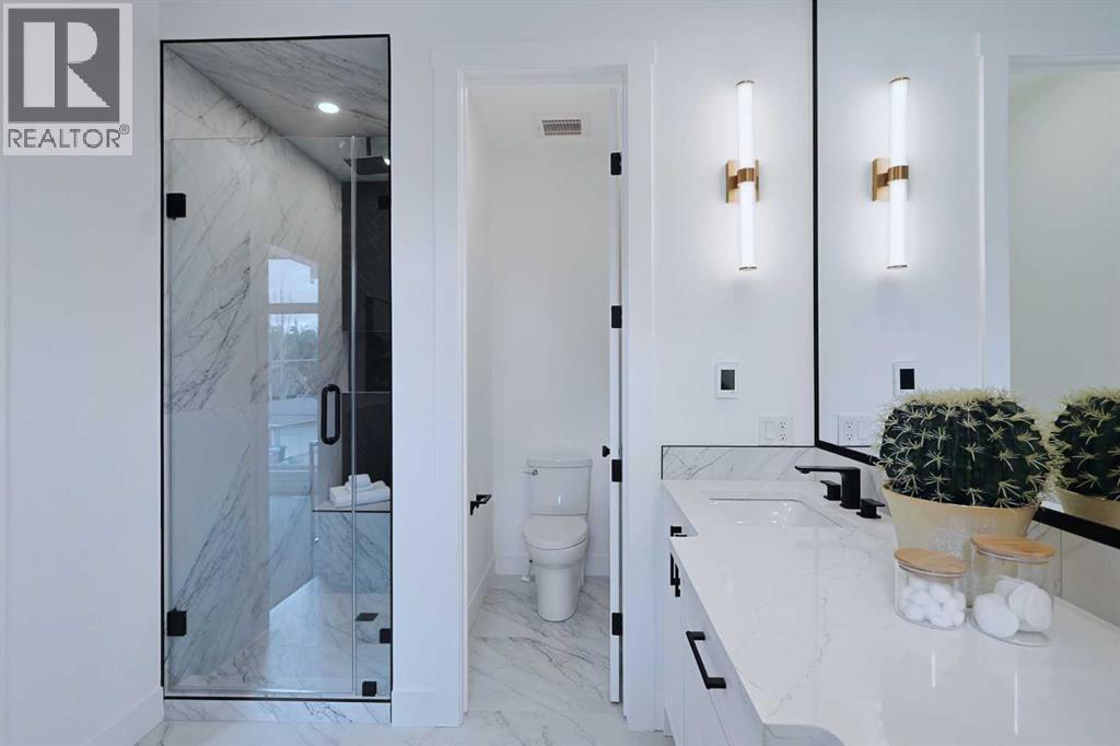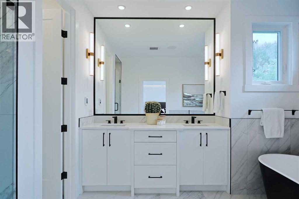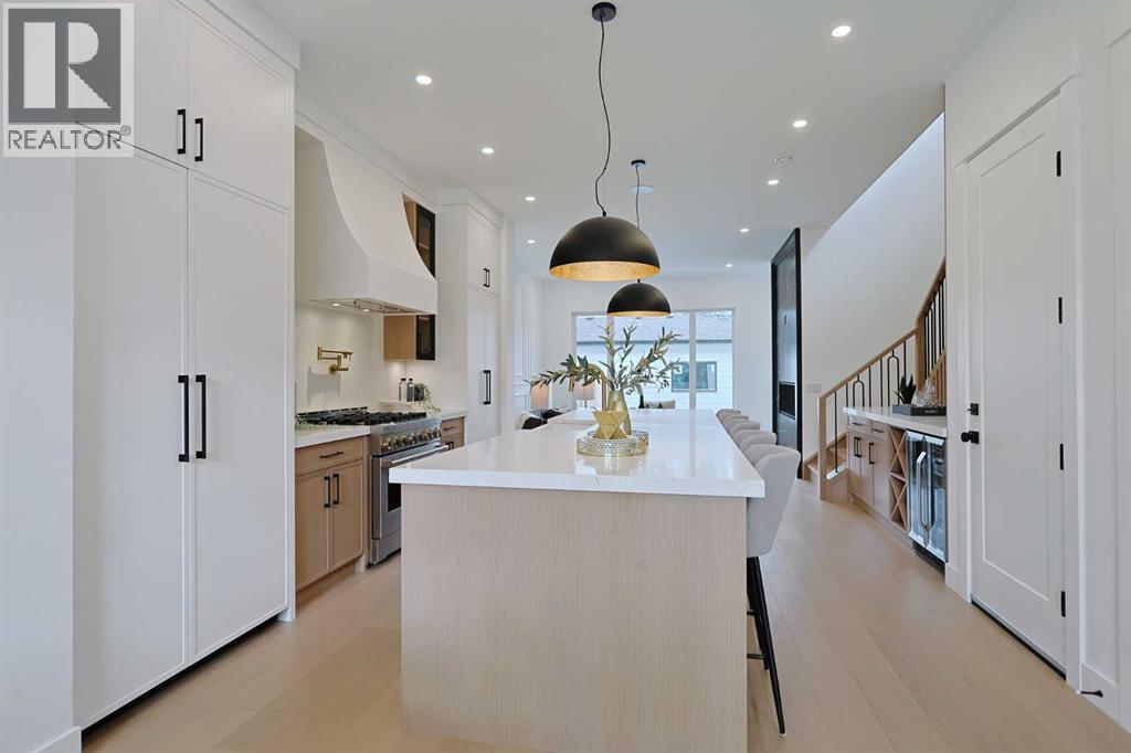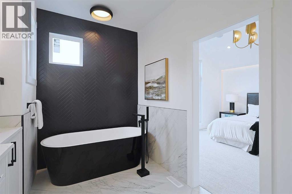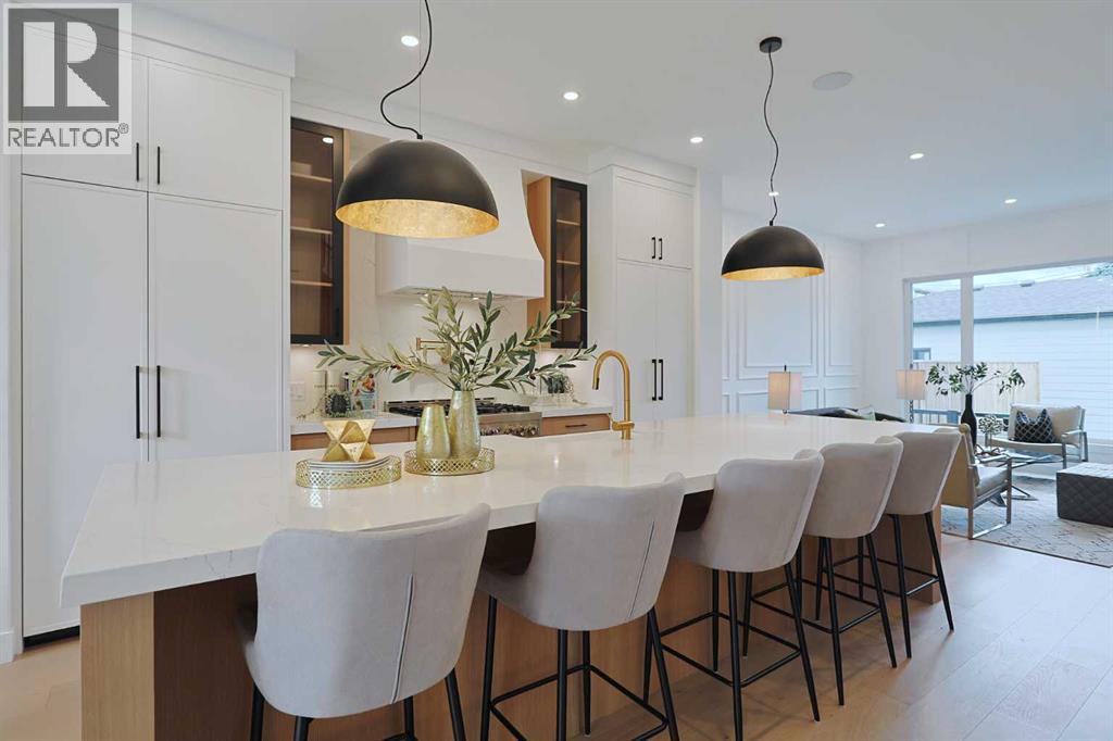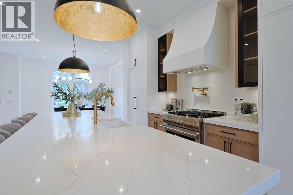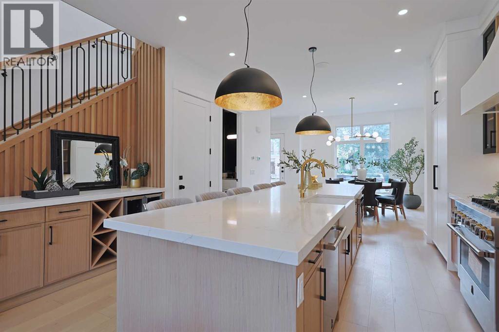 Here in the exclusive inner city community of Parkdale is this incredible custom-crafted home just waiting for you to make it your very own. This stunning brand new semi-detached two storey is fully-loaded & dressed to the nines, & features upgraded engineered hardwood & vinyl plank flooring, designer kitchen with JennAir appliances, exquisite quartz countertops throughout, a total of 5 bedrooms & 3.5 bathrooms plus legal basement suite with separate entrance. Offering over 2600sqft of stylish luxury living, you will love every inch of your new home, which boasts an amazing open concept main floor design with soaring 10ft ceilings & an expanse of windows, sun-lit dining room complemented by feature wall with accent lighting & formal living room with sleek contemporary fireplace & picture windows offering views of your backyard. The showpiece chef’s kitchen is a sensational space with its 2-toned cabinetry with soft-close drawers & doors, oversized centre island with farmhouse sink, built-in desk with bar fridge & full JennAir appliance package including gas stove/convection oven & fridge/freezer. Upstairs is where you’ll find 3 wonderful bedrooms & 2 full bathrooms, highlighted by the outstanding owners’ retreat with vaulted ceilings & large walk-in closet with built-ins, huge picture windows & spa-inspired ensuite with glistening heated tile floors & free-standing tub, quartz-topped double vanities & glass shower with full tile surround. Two additional bedrooms, another full bathroom with quartz counters & dedicated laundry room with built-in cabinets & sink complete the 2nd floor. The fully legal basement suite – with its own separate entrance & vinyl plank floors, is beautifully finished with a rec room & eat-in kitchen with Samsung stainless steel appliances, 2 bright bedrooms, full bathroom & laundry hook-ups. Additional features & extras include the main floor mudroom with built-in cabinets & lockers, built-in ceiling speakers on all 3 levels, upgraded lightin g, custom “hidden” white oak closet in the foyer, fenced backyard with aggregate patio & gas BBQ line, detached 2 car garage with 220V wiring & rough-ins for central air, central vacuum system, security & radon. A truly phenomenal home just steps to the Parkdale Community Centre & Gardens, walking distance to Bow River pathway system, only a few short blocks to the Foothills Medical Centre & schools, & only minutes to the University of Calgary & major retail centers (incl Market Mall, University District, Brentwood & North Hill), popular parks (incl Edworthy, Shouldice & Karl Baker Off-Leash), transit & downtown. (id:55577)