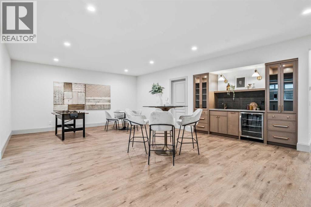 This LUXURIOUS INNER-CITY DREAM HOME by CNJ DEVELOPMENTS is slated for completion in December 2025. Ideally situated on a QUIET CUL-DE-SAC BACKING ONTO A GREEN SPACE mere STEPS TO THE ELBOW RIVER. Incredible curb appeal with stone and acrylic stucco siding, TRIPLE PANE WINDOWS and an OVERSIZED INSULATED, DRYWALLED AND HEATED GARAGE. The spaciously designed interior features 4+1 BEDROOMS and endless HIGH-END UPGRADES including CUSTOM SITE-BUILT FINISHINGS, CUSTOM SOLID CORE DOORS, BUILT-IN SPEAKERS, PREMIUM CARTWRIGHT LIGHT FIXTURES, ENERGY EFFICIENT HVAC SYSTEM, SMART THERMOSTATS, A BOILER WITH MULTI-ZONE RADIANT HEAT, TWO A/C UNITS, WIRING for future full automation, vacuflor roughed in and much more! Soaring 10’ CEILINGS and ENGINEERED HARDWOOD FLOORS grace the beautiful open concept main floor. Put your feet up in front of the GORGEOUS GAS FIREPLACE with a sculptural design cast stone mantal in the inviting living room. An entire wall of glass leads to the REAR DECK WITH AN OUTDOOR FIREPLACE, BUILT-IN BBQ AND BUILT-IN SPEAKERS - an outdoor entertainer’s dream for summer nights under the stars, casual barbeques and lazy weekends unwinding. Back inside, the GOURMET KITCHEN inspires culinary adventures featuring HIGH-END APPLIANCES, A GAS STOVE and a handy walk-through pantry for easy grocery unloading. The dining room with a BUILT-IN WET BAR makes hosting a breeze. An ENCLOSED DEN is perfect for a quiet work, study or play area. Those beautiful hardwood floors continue onto the upper level with grand 9’ ceilings adding to the airiness. Retreat at the end of the day to the opulent primary bedroom with a CUSTOM WALK-IN CLOSET and a LAVISH ENSUITE. 3 additional bedrooms are on this level all with walk-in closets – 1 with its own private ensuite while the other 2 share the 5-piece bathroom. The large upper-level laundry room features built-in cabinetry for added storage making laundry day more efficient. INFLOOR HEAT WITH LVP FLOORING FOR LOW MAINTENANCE keeps toes war m and cozy in the FINISHED BASEMENT. This level is incredible for gathering, entertaining and relaxing with a large family room and a WET BAR plus a separate games room and theatre. Easily get your workouts in at the GLASS ENCLOSED GYM. A 5th guest bedroom is located beside the 5-piece bathroom with a built-in SAUNA for ultimate luxury. The fully fenced yard has loads of play space for kids and pets that continues onto the green space. Thanks to the bend in the river, this historic community is bordered on three sides by the Elbow River with easy access to downtown and all the diverse shops and trendy restaurants on 4th Street and 17th Ave. Truly an outstanding location for this exceptional dream home! Please note that area size calculated by applying the RMS to the blueprints provided by the builder. (id:55577)