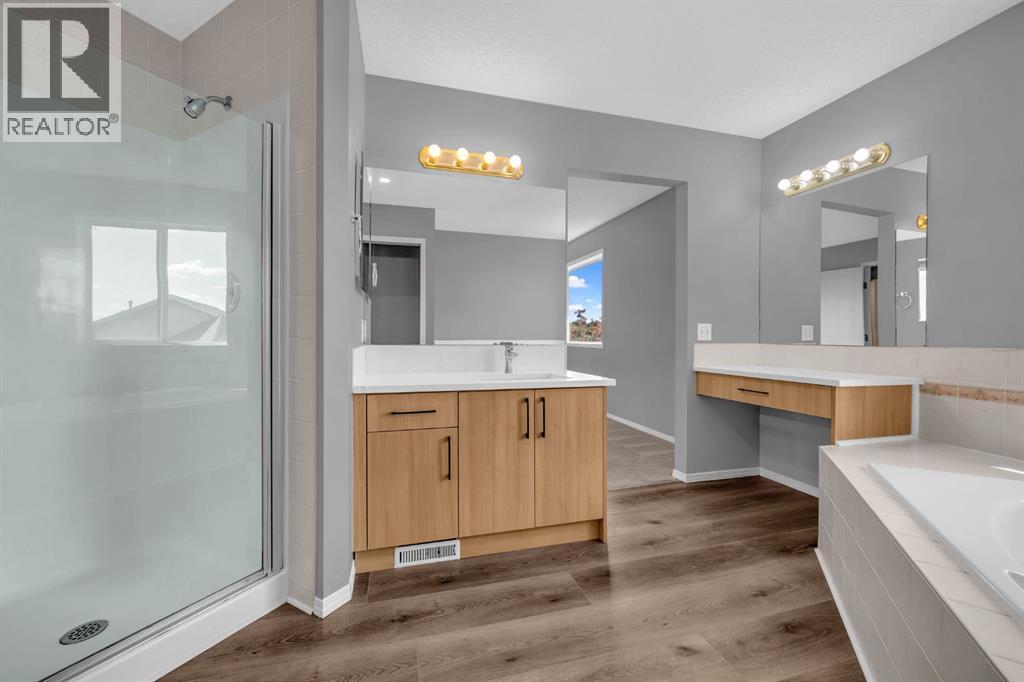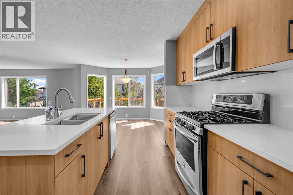 Nestled at the end of a quiet cul-de-sac in Bridlewood, this beautifully renovated 2,085 sq. ft. two-storey offers modern upgrades and a bright, welcoming design. The home features a new roof, fresh paint, new flooring, and a stunning kitchen with quartz counters, centre island, walk-in pantry, sunny nook, and all-new appliances. Bathrooms have been updated with new cabinets, quartz counters, and sinks. The upper level boasts three spacious bedrooms, including a huge primary suite with a 4-piece ensuite featuring a corner soaker tub, separate shower, and walk-in closet. Main floor highlights include convenient laundry in the mudroom and open living spaces perfect for gatherings. Step outside to a south-facing deck and enjoy the pie-shaped backyard. The basement level offers oversized windows, framing, insulation, and roughed-in plumbing—ready for future development. Move-in ready and close to schools, shopping, and parks, this home combines comfort, style, and location in one perfect package. (id:55577)