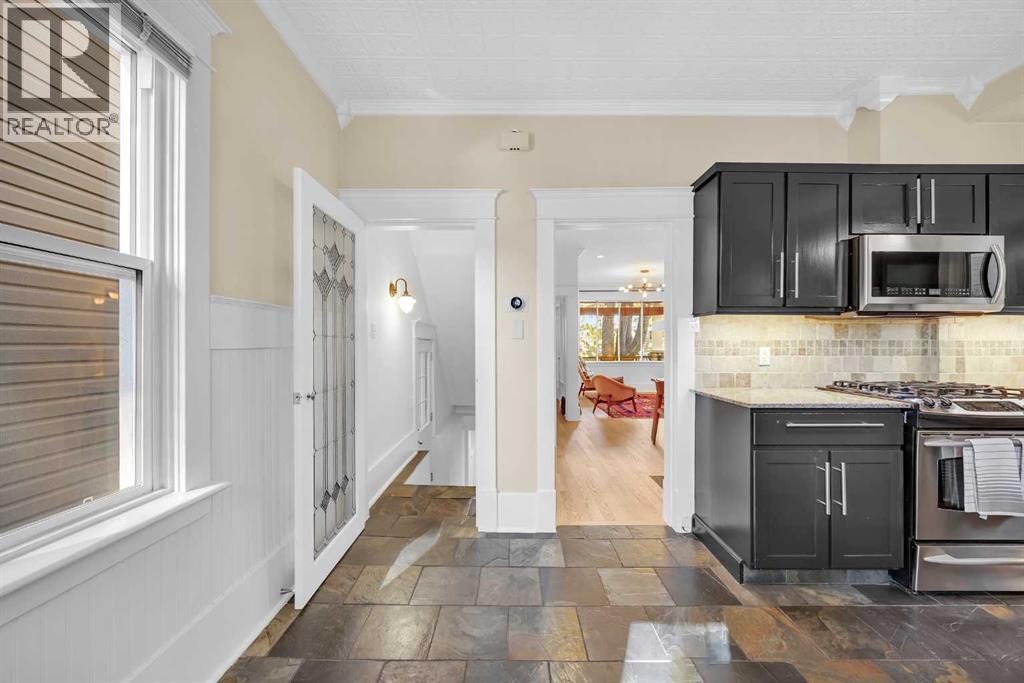 Welcome to this beautifully updated and meticulously maintained heritage home where timeless charm meets thoughtful modern upgrades. From the moment you step inside, you’ll be greeted by bright, open living spaces accented by gleaming solid real WHITE OAK HARDWOOD FLOORS (2021) and fresh finishes that make every room feel warm and inviting. The heart of the home is the spacious kitchen, featuring granite countertops and stainless steel appliances, perfect for everyday meals or entertaining guests. A cozy dining room with a gas fireplace sets the scene for intimate gatherings, while large windows bring in plenty of natural light. Upstairs, you’ll find three comfortable bedrooms, including a serene primary suite with double closets and views of the quiet, tree-lined street. The upstairs bathroom was fully updated in 2018, complete with new plumbing fixtures, and a cast iron clawfoot tub that blends vintage character with modern comfort.The lower level offers a versatile finished basement with a bright family room, additional bedroom, full bathroom, and laundry — the perfect setup for guests, a home office, or play space. Step outside to your private backyard oasis, highlighted by a RED BATU HARDWOOD deck that’s ideal for summer barbecues and evening unwinds. The home’s curb appeal shines with a fresh EXTERIOR REPAINT (2025), making it move-in ready inside and out. Not only is this home beautiful, but it’s also been carefully updated where it counts — with all KNOB-AND-TUBE WIRING REPLACED (2018) and SUBFLOORS FULLY REDONE (2021), offering true peace of mind. This house is ideally located on a quiet street that is close to schools, parks, and amenities, this is the perfect blend of history, style, and modern living. (id:55577)