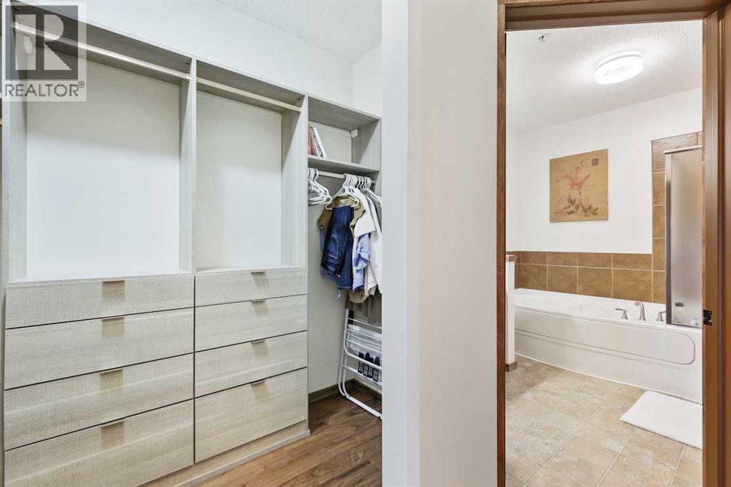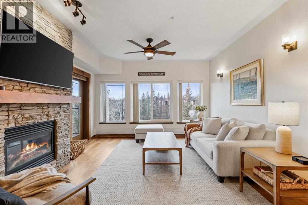 "Welcome to our Treehouse" is the picture above the South and West facing Penthouse living room windows, with breath taking views of Griffith Woods and the Elbow River Valley. This 2 bedroom, 2 bath 1031 square foot totally renovated condo is in pristine condition. Upgrades include Engineered wood floors, granite counter tops, new lighting fixtures, built in shelving in the ensuite, new baseboards and trim, rock faced gas fireplace with mantle and all the appliances have been replaced.