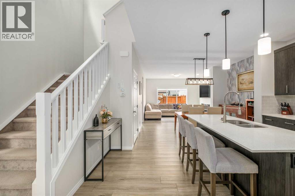 Welcome to 53 Masters Street SE – the stunning Windsor model by Excel Homes, offering 1,758 sq/ft of modern, functional living in the heart of Calgary’s award-winning lake community of Mahogany. With remaining NEW HOME WARRANTY INCLUDED, this thoughtfully designed home delivers comfort, convenience, and long-term peace of mind.From the moment you enter, you'll appreciate the bright OPEN CONCEPT layout that’s perfect for both everyday living and entertaining. The main floor features a welcoming living area centered around an elegant electric fireplace, a spacious dining area, and a stylish kitchen finished with sleek QUARTZ COUNTERTOPS throughout. A dedicated MAIN FLOOR OFFICE provides the ideal space for remote work, study, or a flexible guest room.Upstairs, the spacious primary retreat includes a walk in closet and a beautifully upgraded ensuite with a dual vanity, offering both luxury and practicality. Two additional bedrooms and a full main bath complete the upper level, making this home ideal for growing families or hosting guests. The ADDITIONAL FLEX ROOM upstairs provides an ideal space to relax, or a great kids play space.What truly sets this home apart are the thoughtful upgrades that enhance both style and function. The SMART HOME AUTOMATION system, powered by Google Nest, controls lighting and the thermostat for effortless modern living. A natural gas hookup on the back deck makes BBQ season a breeze, while CENTRAL A/C keeps you comfortable year-round. The basement offers even more potential, featuring a separate side entrance and rough-ins for a legal suite (A secondary suite would be subject to approval and permitting by the city/municipality), including plumbing for a future bathroom and electrical/venting for a dedicated laundry area; perfect for generating rental income or accommodating multi-generational living.Step outside to enjoy a FULL LANDSCAPED BACKYARD, an inviting space for relaxing, entertaining, or playing with the kids. Whether you ’re hosting summer gatherings or simply enjoying a quiet evening outdoors, this home delivers the lifestyle you’ve been looking for.LIVING IN MAHOGANY means access to Calgary’s largest freshwater lake, where residents enjoy beach days, paddle boarding, skating, and year-round community events. Surrounded by wetlands, scenic pathways, and lush parks, Mahogany offers the perfect balance of outdoor recreation and urban convenience. With a vibrant village center, top rated schools, and easy access to major roadways.Don’t miss your chance to own this upgraded, move-in ready home in one of Calgary’s most sought-after communities. (id:55577)