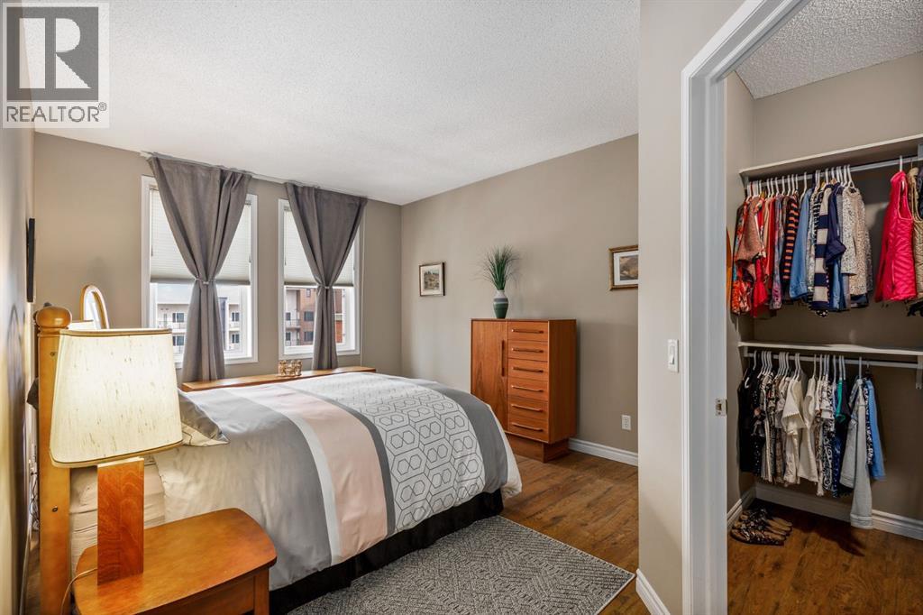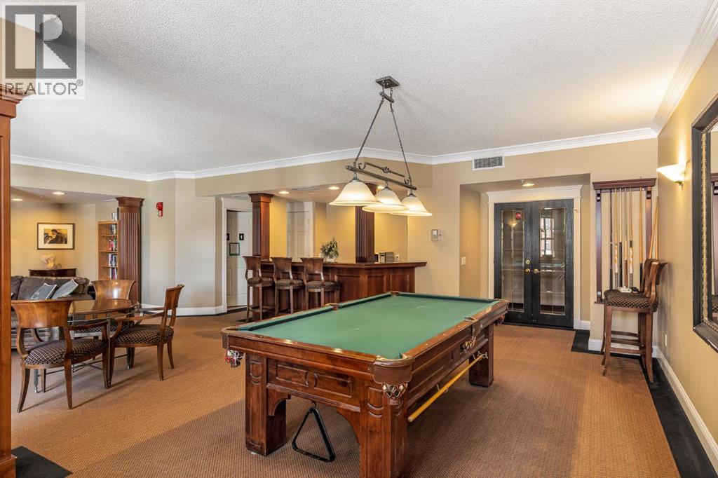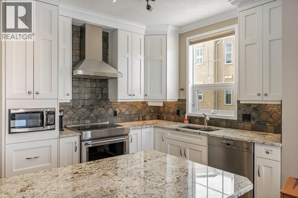 An extremely rare offering of a high end beautifully updated CORNER UNIT condo with 3 TITLED UNDERGROUND PARKING STALLS in the heart of Shawnee Slopes. Just steps from Fish Creek Provincial Park, you’ll enjoy endless walking and cycling paths, while the nearby Fish Creek–Lacombe LRT Station and shopping amenities offer unbeatable convenience.This beautifully appointed 2-bedroom, 2-bathroom + den home offers 1,250 sq. ft. of refined living space, highlighted by a wrap-around balcony with BBQ gas line—perfect for entertaining or relaxing. From the moment you enter, you are immediately welcomed by new laminate flooring (installed in 2025) which creates a fresh, modern, and cohesive feel. The spacious open-concept layout is further enhanced by 9’ ceilings and timeless slate accents, while the inviting living room is anchored by a striking floor-to-ceiling stone gas fireplace, creating a warm and sophisticated focal point. The adjacent dining area is ideal for hosting memorable dinners.The thoughtfully designed kitchen is truly the heart of the home, featuring high-end stainless steel appliances, ceiling-height custom soft-close cabinetry, granite countertops, a custom slate backsplash, and an under-mount BLANCO sink—blending functionality with upscale design.A versatile den with translucent glass French doors provides the perfect home office or flex space. The well-designed layout also includes a second bedroom and full bathroom for guests, a spacious foyer with a large coat closet, and a convenient in-suite laundry room.The primary retreat comfortably accommodates a king-sized bed and offers a large walk-in closet along with a spa-inspired ensuite complete with a soaker tub, separate walk-in shower, custom vanity with granite countertops, and elegant finishes throughout.A truly rare and highly valuable feature of this home is the inclusion of THREE underground, heated, titled parking stalls—an exceptional find in this complex—along with a dedicated assigned storage locker, offering unmatched convenience, flexibility, and long-term value for owners and investors alike.Residents also enjoy an impressive array of amenities, including a wine room, free underground, heated visitor parking, 2 guest suites, 2 woodworking shops, 2 fitness centers, and 2 resident lounges.A rare opportunity to own a spacious, amenity-rich home in one of Calgary’s most sought-after southwest communities—where nature, transit, and lifestyle come together seamlessly. (id:55577)