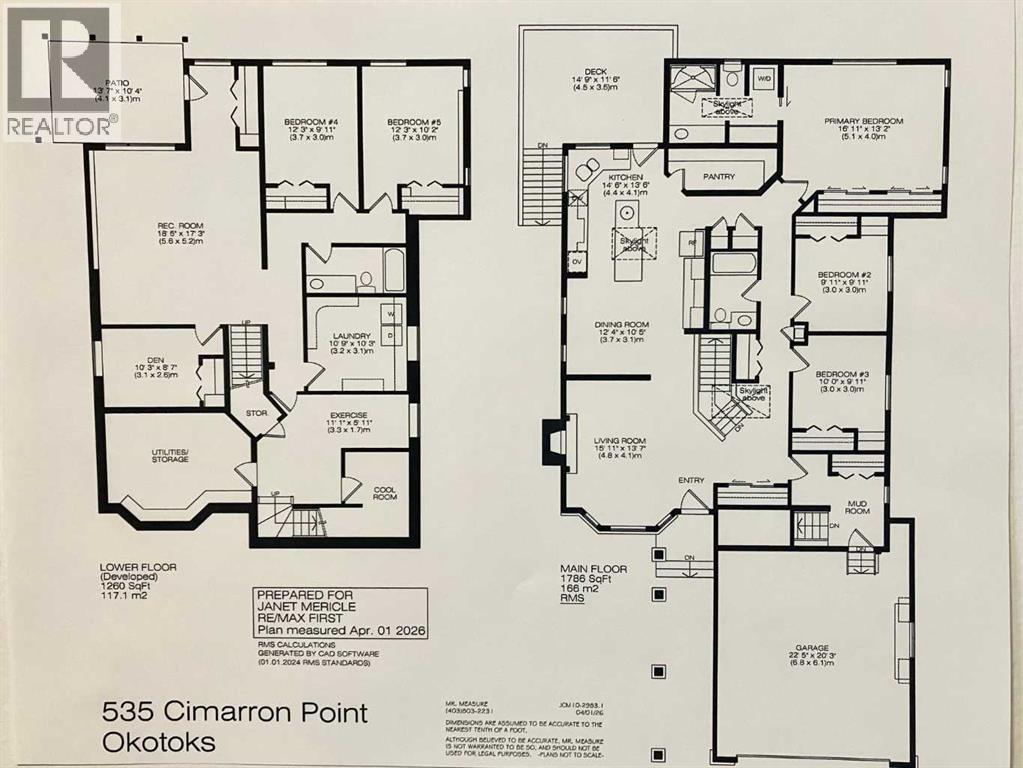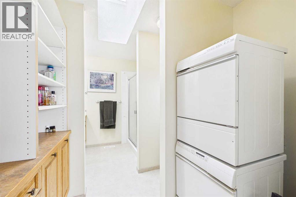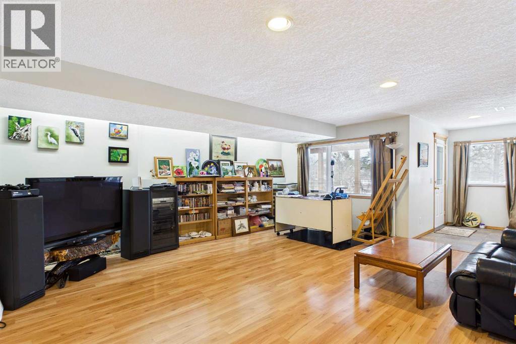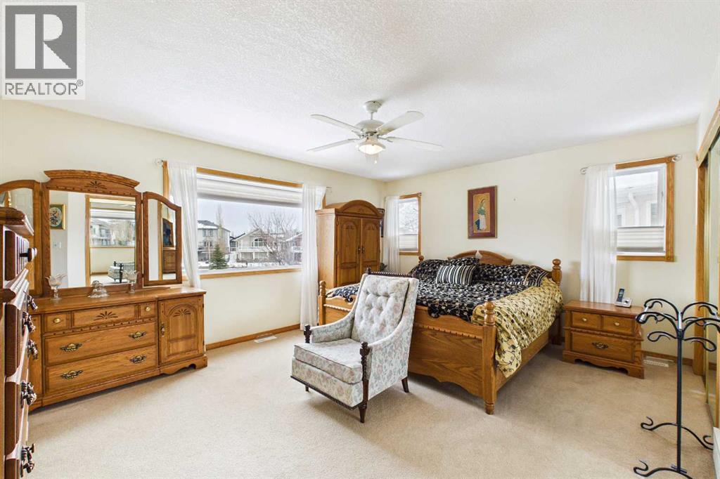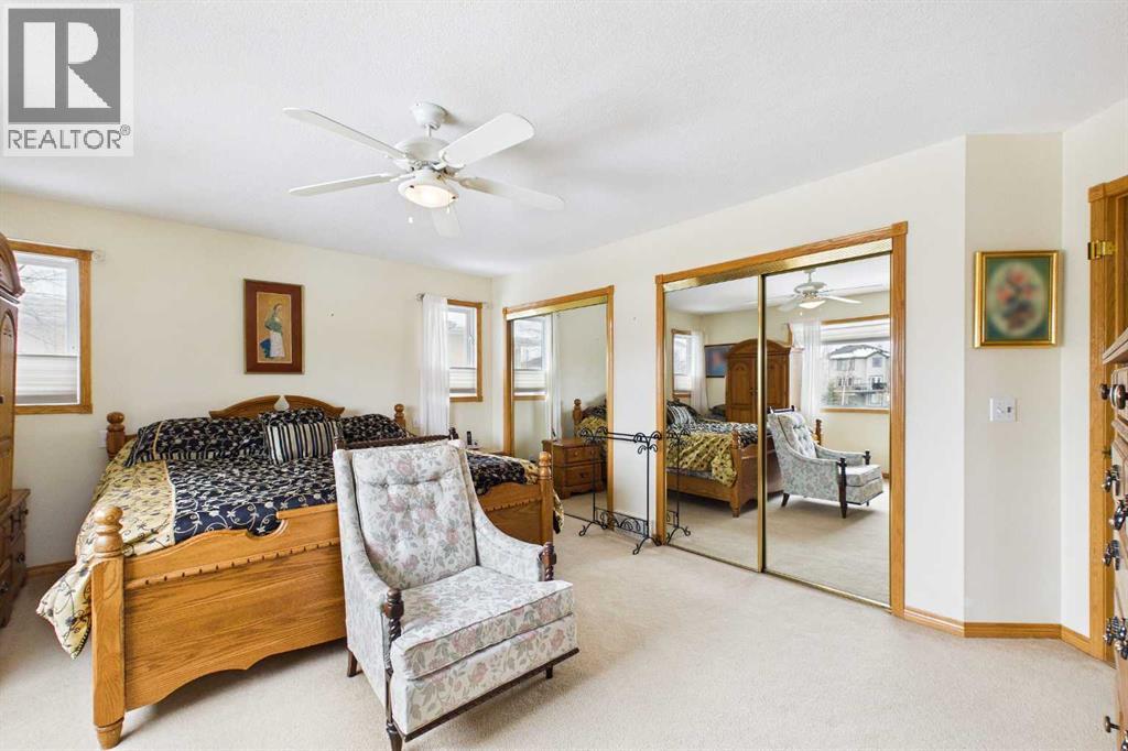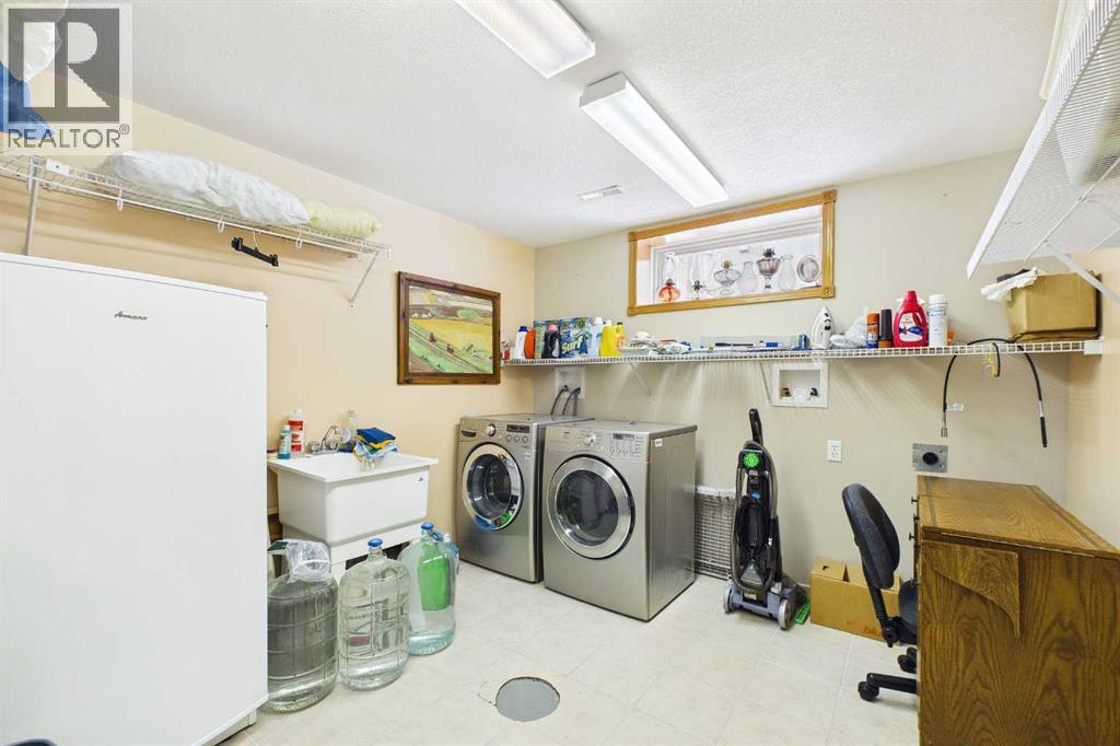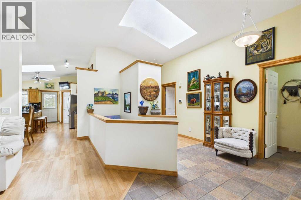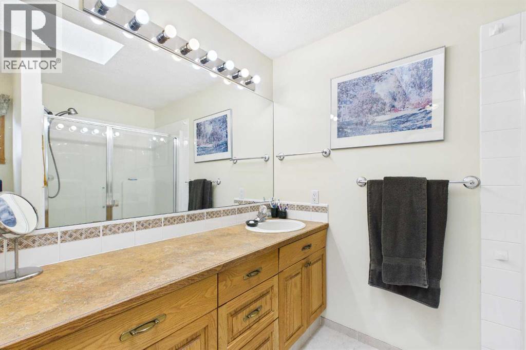 AN EXCEPTIONAL FULLY DEVELOPED WALK-OUT BUNGALOW IN A STUNNING LOCATION! Located on a large pie lot on a quiet cul-de-sac in one of the nicest areas of Okotoks, backing onto the large Cimarron Park Environmental Reserve. FIVE BEDROOMS, THREE BATHROOMS. A spacious bright quality-built home that offers a total of 3046 sq. ft. on two levels. Vaulted ceilings in the main floor principal rooms. THREE SKYLIGHTS and large windows provide this home an abundance of natural light. Bright welcoming spacious foyer with tile floors through to the rear mud room. This well-designed plan offers a formal living room with west facing bay window and elegant gas fireplace. The dining room is perfect for family gatherings. The Chef will love this spacious custom oak kitchen with an abundance of cabinets and deep drawers. French door fridge, two Thermador built-in ovens and Thermador gas cooktop. Large granite island with eating bar, sink and garburator, perfect for meal preparation. Additional granite counters feature double sinks with garburator plus a third counter area that would make the perfect coffee station and serving area when entertaining. The huge pantry is perfect for storing supplies and larger appliances. French door to the raised east facing deck. Spacious primary bedroom with two closets. Pocket door to the well-designed three-piece ensuite bathroom with skylight and laundry area. Oversized walk-in shower, ASKO stacking washer and dryer plus oak cabinets, counter and laundry storage bins. Two additional bedrooms on the main floor and four-piece bath with soaker tub/shower. Two separate staircases to the lower walk-out level that features in-floor heat. Large bright family area with French door to the covered patio. Den with closet makes the perfect home office. Two additional bright lower bedrooms and four-piece bathroom are exceptional space for families or guests. Bright lower laundry room features deep laundry sink and washer and dryer. Lots of storage plus a cold room. Double attached insulated garage with 220-volt outlet. Large east and south facing pie lot featuring thoughtful landscaping with trees, pond, perennials and rock features, make this the perfect yard. **PLEASE CHECK OUT THE VIDEO** (id:55577)