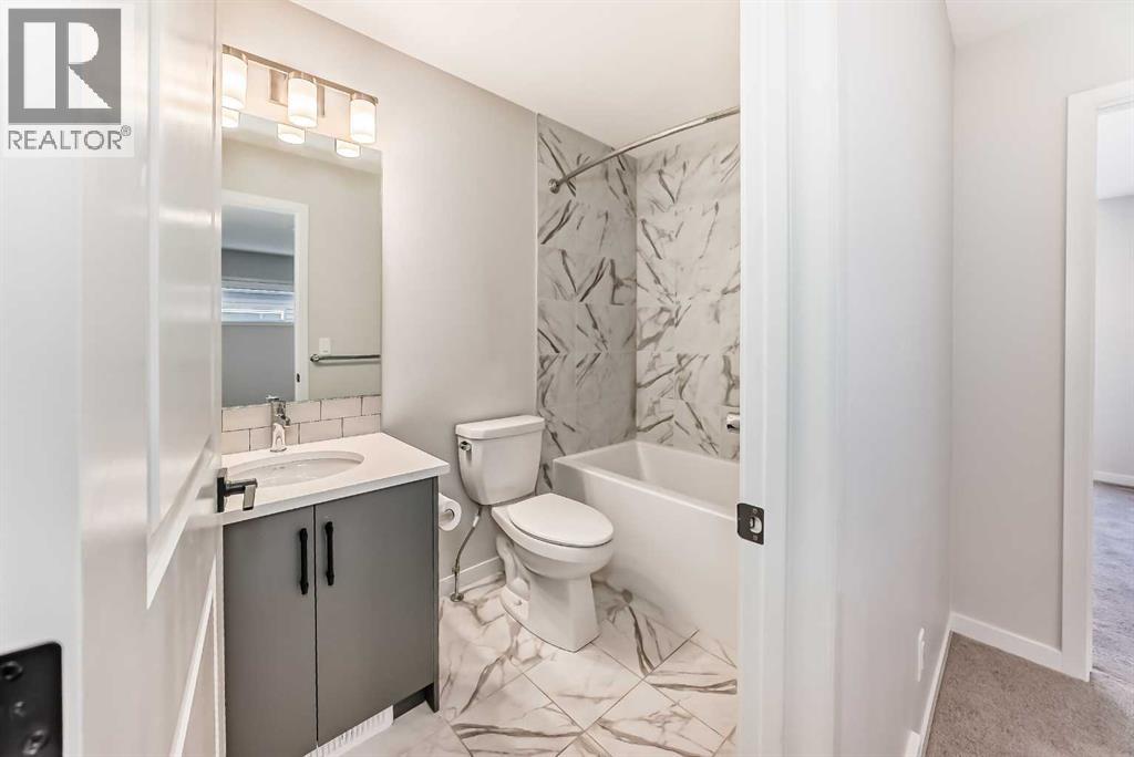 With over 2,500 sqft of living space, which includes 4 bedrooms and 3 full baths, plus a 2-bed, 1-bath LEGAL BASEMENT SUITE, this home, built by Trico in 2025, offers space, flexibility, and long-term value. The main floor is open and bright, finished with LVP flooring, QUARTZ counters, stainless steel appliances, and modern TWO-TONE CABINETS. The living area is anchored by a large electric FIREPLACE, creating a cozy family space. A MAIN FLOOR BEDROOM with an ensuite FULL BATH adds flexibility for guests, extended family, or a home office. Central A/C keeps the home comfortable in warm summer months. Upstairs, there’s a BONUS ROOM that works well as a family hangout or play space. The PRIMARY BEDROOM includes a WALK-IN CLOSET and an ensuite with DUAL SINKS and a TILED SHOWER. TWO MORE BEDROOMS and another FULL BATH, along with a convenient LAUNDRY room, complete the upper level. The basement was finished by the builder and includes a LEGAL 2-BED, 1-BATH SUITE with LAUNDRY and a private REAR ENTRANCE. The layout and size make it well-suited for rental income or extended family, offering real flexibility for changing needs over time. Outside, there’s a back deck, and the yard is partially fenced. There’s space to park two vehicles, with room to build a garage in the future while still keeping a usable backyard. One of the standout features of this location is the GLACIER RIDGE VILLAGE, slated to open in April 2026 and located just down the street! Designed for year-round use, the outdoor spaces include walking paths, a skating ribbon, playgrounds, basketball and tennis courts, a spray park, ice rink, firepit areas, and a toboggan hill. Inside, residents will have access to a gymnasium, gathering areas, program rooms, and spaces that can be rented for private events. Glacier Ridge is built around everyday convenience and family life, with parks, pathways, and services planned throughout the community. This is a home that works well today and makes sense for the future, without compromising on space or comfort. (id:55577)