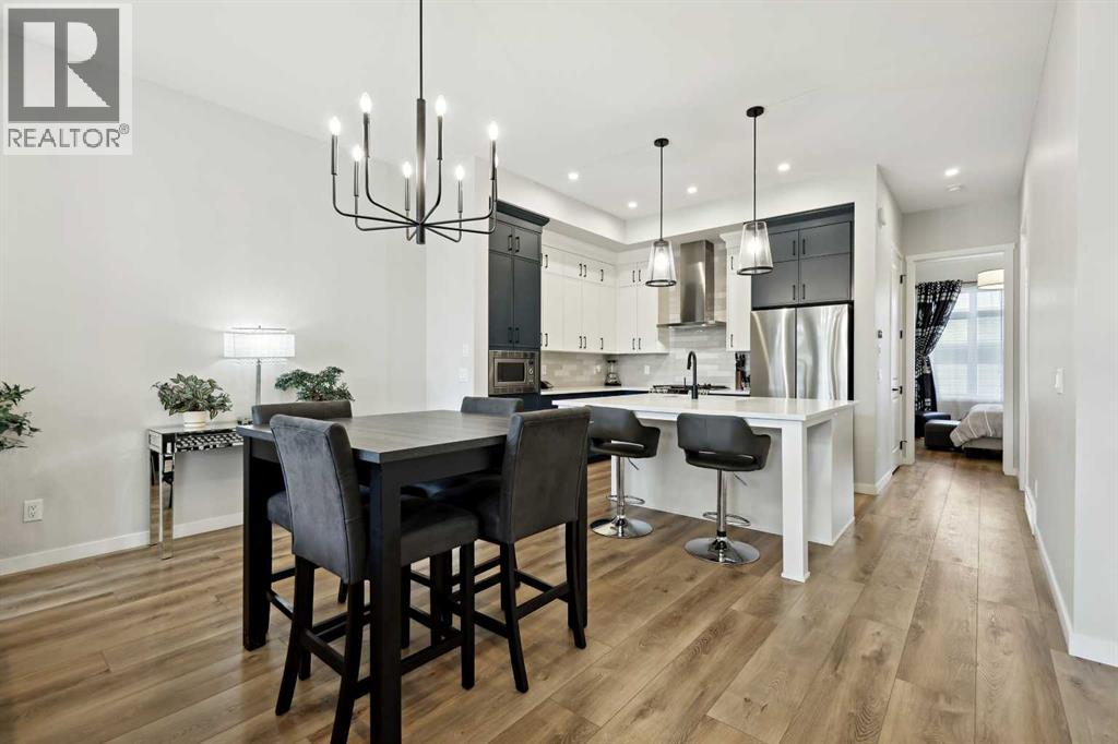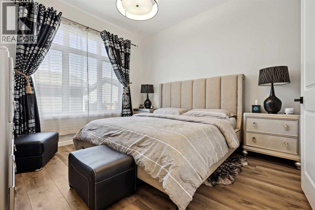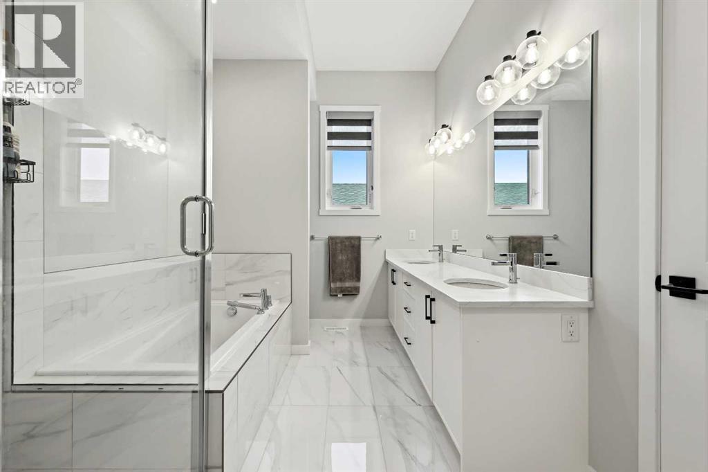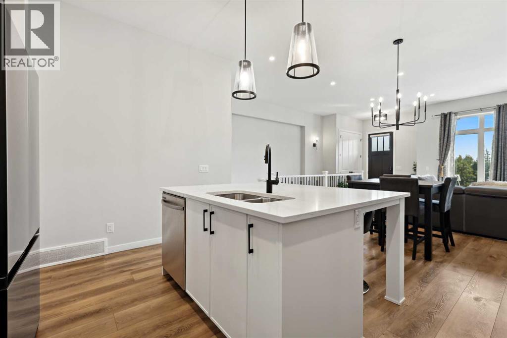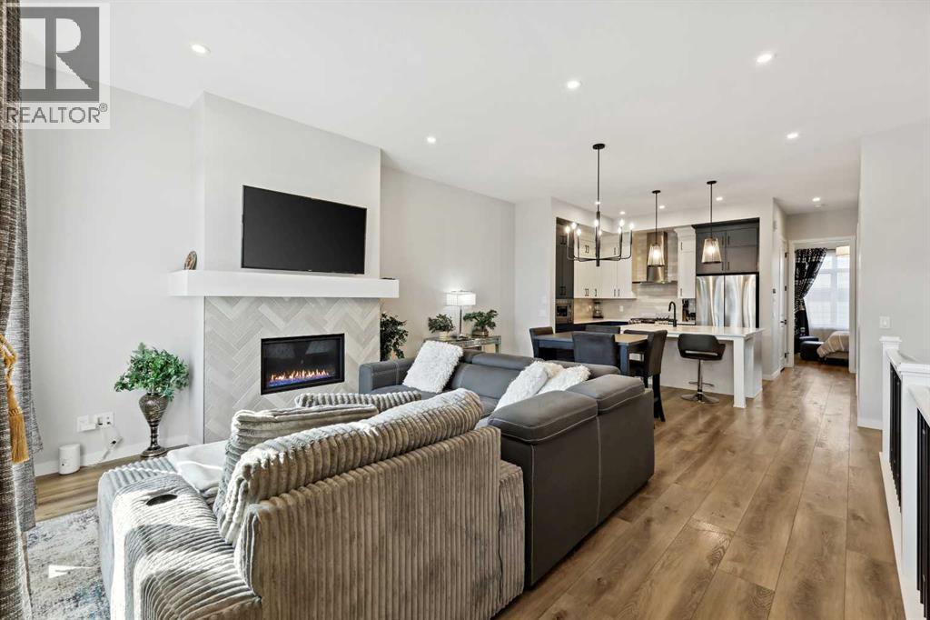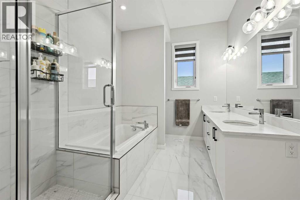 Experience elevated lakeside living in the heart of Mahogany — where timeless design meets exceptional comfort in this executive bungalow just moments from the water. With exclusive lake access, refined interiors, luxury vinyl plank throughout, and an expansive, thoughtfully planned layout, this residence offers a rare opportunity for single-level luxury in one of Calgary’s most prestigious communities.Soaring 10-foot ceilings and oversized windows define the main living space, creating an atmosphere that is both grand and inviting. The chef’s kitchen is a standout, blending beauty and function with its striking two-tone cabinetry, premium stainless steel appliances (including a gas range and range hood), generous pantry, and a statement island with breakfast seating — ideal for both casual mornings and elegant entertaining.The open concept living room, that connects both the kitchen and dining room, exudes warmth and sophistication with luxury vinyl plank flooring, a designer gas fireplace wrapped in herringbone tile, and captivating views of Mahogany Lake just beyond.The primary bedroom features a spacious walk-in closet and a spa-inspired ensuite complete with marble-style porcelain tile, a deep soaker tub, glass-enclosed shower, double vanity, and polished chrome fixtures — every detail designed for indulgent relaxation. A stylish 2-piece powder room completes the main level.Downstairs, the fully finished lower level offers exceptional versatility with a spacious family room, two additional bedrooms — both with their own walk-in closets — and a beautifully appointed 4-piece bath. Ideal for guests, extended family, or quiet evenings in.Outside, enjoy your own private courtyard-style patio and yard space, perfectly positioned off the mudroom (which conveniently includes the washer and dryer). The double detached garage offers ample storage with an electric vehicle charger and alley access, while central air conditioning and a water softener add thoughtful tou ches to enhance everyday living.Located in the award-winning lake community of Mahogany, you’ll have exclusive lake access, scenic walking trails nearby, as well as schools, shopping, dining, and more.This is more than a home — it’s a lifestyle. Schedule your private tour today and discover the elevated ease of bungalow living by the lake. (id:55577)