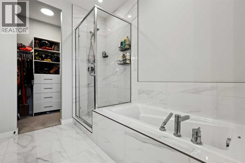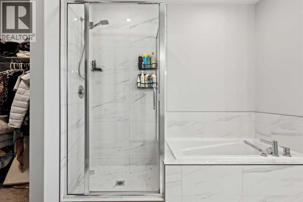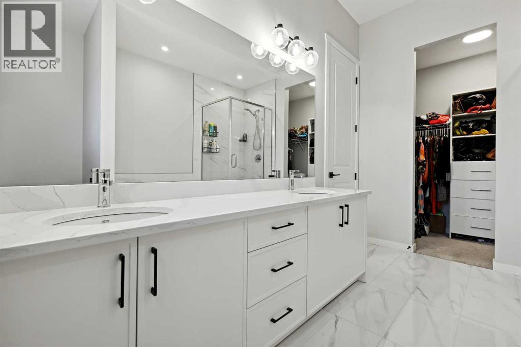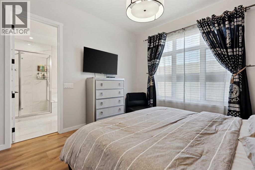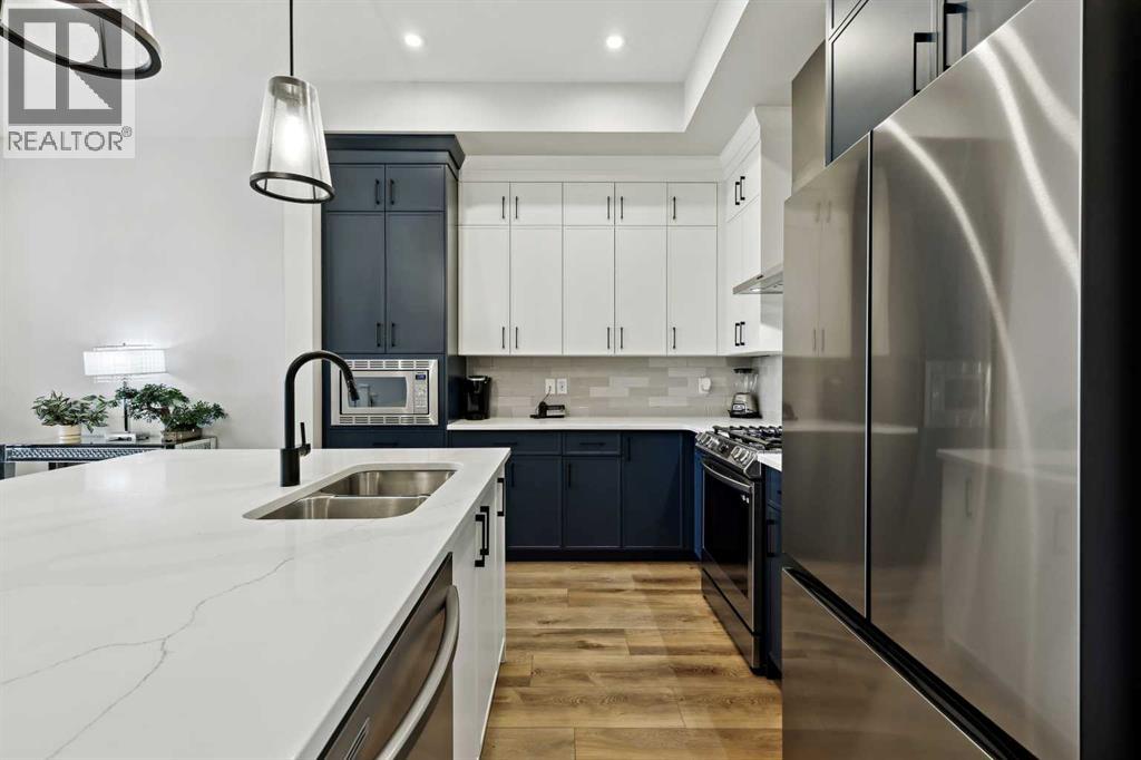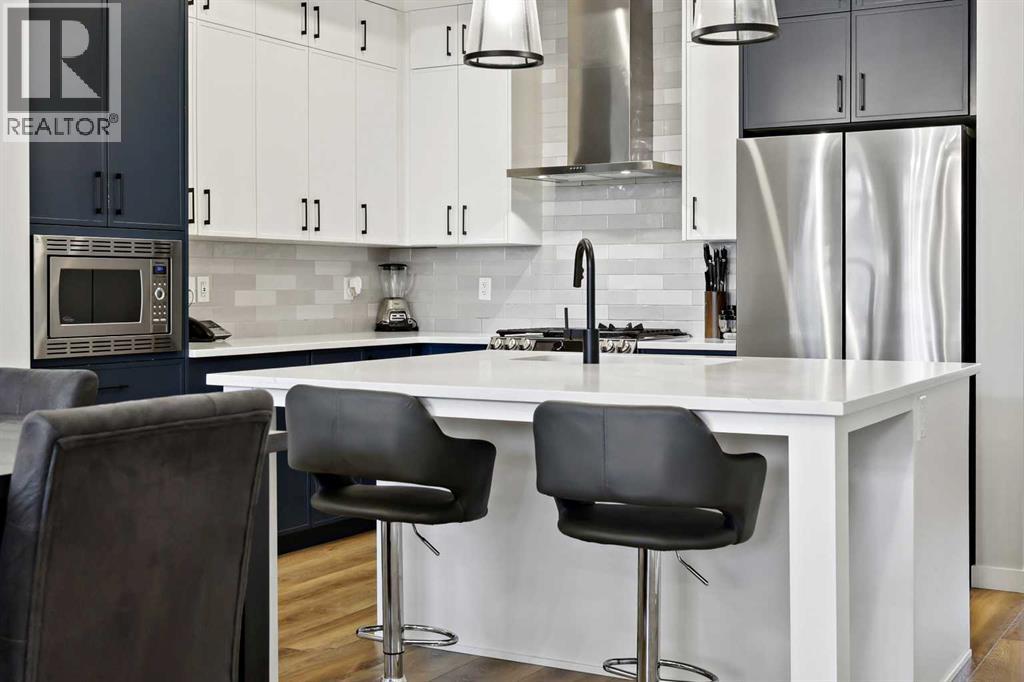 Experience elevated lakeside living in the heart of Mahogany — where timeless design meets exceptional comfort in this executive bungalow just moments from the water. With exclusive lake access, refined interiors, luxury vinyl plank throughout, and an expansive, thoughtfully planned layout, this residence offers a rare opportunity for single-level luxury in one of Calgary’s most prestigious communities.Soaring 10-foot ceilings and oversized windows define the main living space, creating an atmosphere that is both grand and inviting. The chef’s kitchen is a standout, blending beauty and function with its striking two-tone cabinetry, premium stainless steel appliances (including a gas range and range hood), generous pantry, and a statement island with breakfast seating — ideal for both casual mornings and elegant entertaining.The open concept living room, that connects both the kitchen and dining room, exudes warmth and sophistication with luxury vinyl plank flooring, a designer gas fireplace wrapped in herringbone tile, and captivating views of Mahogany Lake just beyond.The primary bedroom features a spacious walk-in closet and a spa-inspired ensuite complete with marble-style porcelain tile, a deep soaker tub, glass-enclosed shower, double vanity, and polished chrome fixtures — every detail designed for indulgent relaxation. A stylish 2-piece powder room completes the main level.Downstairs, the fully finished lower level offers exceptional versatility with a spacious family room, two additional bedrooms — both with their own walk-in closets — and a beautifully appointed 4-piece bath. Ideal for guests, extended family, or quiet evenings in.Outside, enjoy your own private courtyard-style patio and yard space, perfectly positioned off the mudroom (which conveniently includes the washer and dryer). The double detached garage offers ample storage with an electric vehicle charger and alley access, while central air conditioning and a water softener add thoughtful tou ches to enhance everyday living.Located in the award-winning lake community of Mahogany, you’ll have exclusive lake access, scenic walking trails nearby, as well as schools, shopping, dining, and more.This is more than a home — it’s a lifestyle. Schedule your private tour today and discover the elevated ease of bungalow living by the lake. (id:55577)