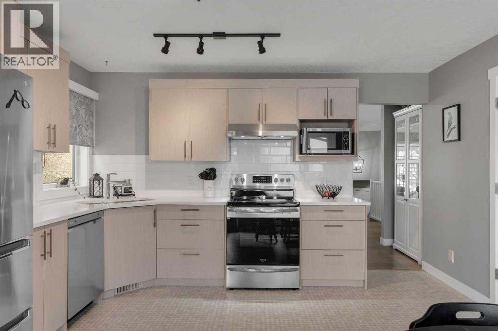 Welcome to 54 Hidden Vale Court NW. Located on a quiet cul-de-sac in the desirable community of Hidden Valley, this fully renovated 4-bedroom home offers a functional layout, modern upgrades, and a private southwest-facing backyard. The main level features vaulted ceilings in the living and dining area, complemented by large windows that flood the space with natural light. The new kitchen is thoughtfully designed with updated appliances (2021) and a spacious pantry, with direct access to the Duradek-covered deck—perfect for indoor-outdoor living and entertaining. Upstairs, you’ll find three well-sized bedrooms and two full bathrooms. The primary suite comfortably accommodates a king-sized bed and includes a walk-in closet and a private ensuite featuring a soaker tub and separate stand-up shower. Additional upgrades on the main level include knockdown ceilings, updated light fixtures, and modern window coverings. The fully developed basement offers excellent flexibility, with the ability to be closed off for added privacy—ideal for extended family or older children. It includes a large bedroom, full bathroom, a spacious living room with new gas fireplace, and a renovated gym/flex space that can also function as a home office. The renovated laundry room is located here, along with a generous utility and storage area. Enjoy direct access to the backyard through the basement mudroom, leading to a covered concrete patio beneath the upper deck—perfect for relaxing while watching the kids play. The fully landscaped and fenced yard can be accessed from both sides of the home. Extensive upgrades throughout the home include new appliances (washer, dryer, dishwasher, and gas range installed in 2021), renovated kitchen, bathrooms, and laundry room, new carpet in the basement, a renovated gym space, a radon mitigation system, new water heater, updated soft metals and exterior paint (professionally done stucco application), a new garage door and opener, upgraded light fixtures an d window coverings, a high-efficiency furnace and air conditioning, and the complete removal of Poly-B plumbing. To top off the long list, the home includes highest quality European Egress Windows. This home is ideally located within walking distance to parks and scenic walking paths, offering the perfect balance of quiet living and convenience. (id:55577)