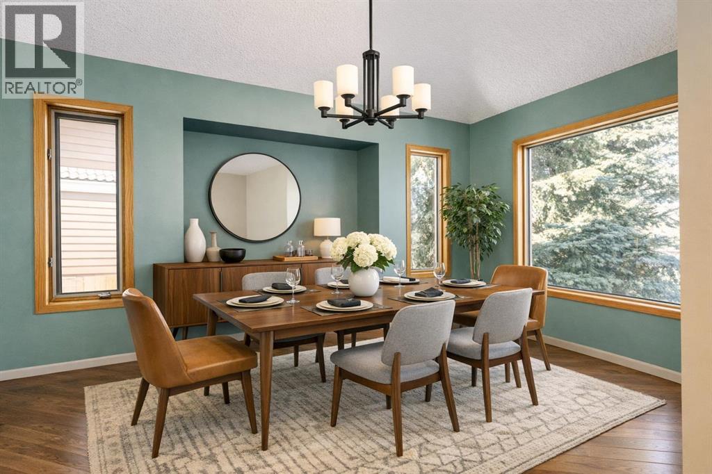 Welcome to this beautifully maintained two-storey split in Oakridge. Tucked away on a quiet cul-de-sac in Oakmount Estates, this meticulously maintained executive home is surrounded by mature trees and offers outstanding curb appeal. The home boasts an exceptional floor plan with bright, sun-filled living spaces, vaulted ceilings, and plenty of room for a growing family. The main floor highlights a welcoming living room and a spacious family room with a brick fireplace and custom wood built-ins. A formal dining room is positioned between the living room and kitchen which is ideal for those who enjoy entertaining. A functional u-shaped kitchen includes expansive countertops, plenty of oak cabinetry, an eat-in area and direct access to the rear yard - perfect for summer BBQ’s. Upstairs, you’ll discover a fabulous primary retreat that includes ample room for your king-size furniture plus a huge walk-in closet and ensuite. Completing the upper level are 2 large secondary bedrooms and a 4 piece family bath. The lower level is fully developed and highlights extra high ceilings, a spacious family room, 4th bedroom, plenty of storage, plus a cold room. One of the most unique features of this property is the rare combination of green space both in front and behind—children will spend countless hours playing in the cul-de-sac's park, while the private fenced backyard offers easy access and views of South Glenmore Park. You will love being within walking distance to schools, parks, and amenities, including top-rated Louis Riel School, renowned for its Science and GATE programs. And just steps away is South Glenmore Park where you will find incredible year-round amenities including a bike pump track, playgrounds, splash park, cross-country skiing, Glenmore Sailing Club, and scenic walking and biking paths along the Glenmore Reservoir. Shopping, dining, the Rockyview Hospital, Heritage Park, and major roadways including Stoney Trail, Glenmore Trail, and 14th Street are all easil y accessible from this terrific location. With its mature tree-lined streets, beautiful surroundings, and established community feel, this is a rare opportunity to own a home in one of Calgary’s most desirable, family-friendly neighbourhoods. (id:55577)