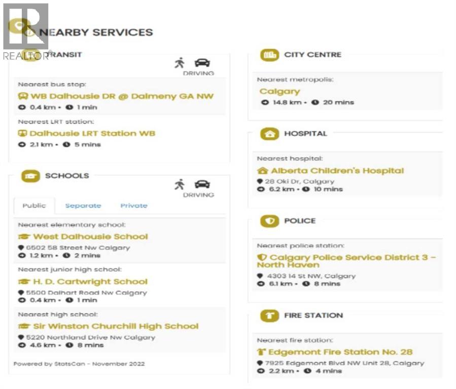 Open house September 18, 2025 1:30-4pm. Location! Location! Location! First Time on market ! Lots of potential with this bright and spacious home nested in an unbeatable location: a quiet cul-de-sac in the highly sought-after community of West Dalhousie – with schools, shopping, public transit including C-Train (Dalhousie Station), and beautiful green spaces including Nose Hill Park nearby! ** The HD Cartwright School and Dalhousie Community Association, tennis courts and sports field are just steps away! Easy access to major routes – John Laurie Blvd., Sarcee Trail, Crowchild Trail. Short commute to Dalhousie C-TRAIN Station and Shopping, Northland Shopping, Beacon Hill Shopping and University of Calgary! This bright and spacious Bilevel, with great curb appeal - was custom built by NU WEST HOMES with a functional plan, on an over sized lot of 659 Sq. Metres. It is on the market for the first time, offered by its original owner. The extra long driveways is a value added to the double front attach garage - with a side door, which allows separate entry to the basement level - developed with a bedroom, bathroom family room – with large windows. Main floor includes 3 large bedrooms and 2 4pc bathrooms (spacious master bedroom with a 4pc ensuite), double doors to the spacious kitchen with eating area, dining room off the kitchen overlooking the spacious living room with fireplace, Hot water tank was replaced in 2018. There is no side walk for snow shovel, just an extra long driveway which gives extra parking space!Booking your private viewings today! (id:55577)