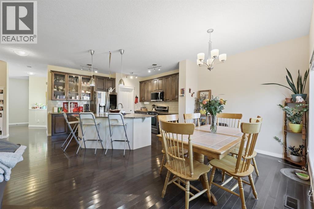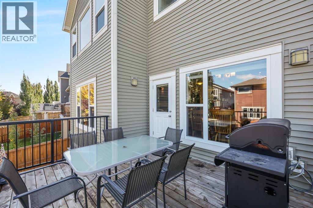 This executive two story WALK OUT home has 3 bedrooms, laundry, and a family room on the upper level with large windows to let in lots of natural light. The main floor features an open concept layout with a kitchen hosting granite countertops, a walk though pantry a spacious living room and a formal dining room, all enhanced by a double sided gas fireplace framed in exquisite stonework. A deck adjacent to the kitchen suitable for an outdoor patio, includes a gas BBQ hook up. The kitchen is equipped with a gas stove, refrigerator featuring a water/ice dispenser with an illuminated front door, and a newly installed dishwasher. The basement contains a private "mother in law" living area with its own laundry facilities, private entrance and privacy door from upstairs. The residence is warmed with forced air heating and cools you with AC! It also offers an attached heated double car garage with spacious back entry coat area and a significant storage room in the basement. The lower patio brings some privacy space, and a cozy sitting area Nearby walking path lead to Jumping Pound Creek, and paths to downtown. (id:55577)