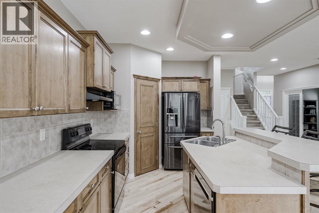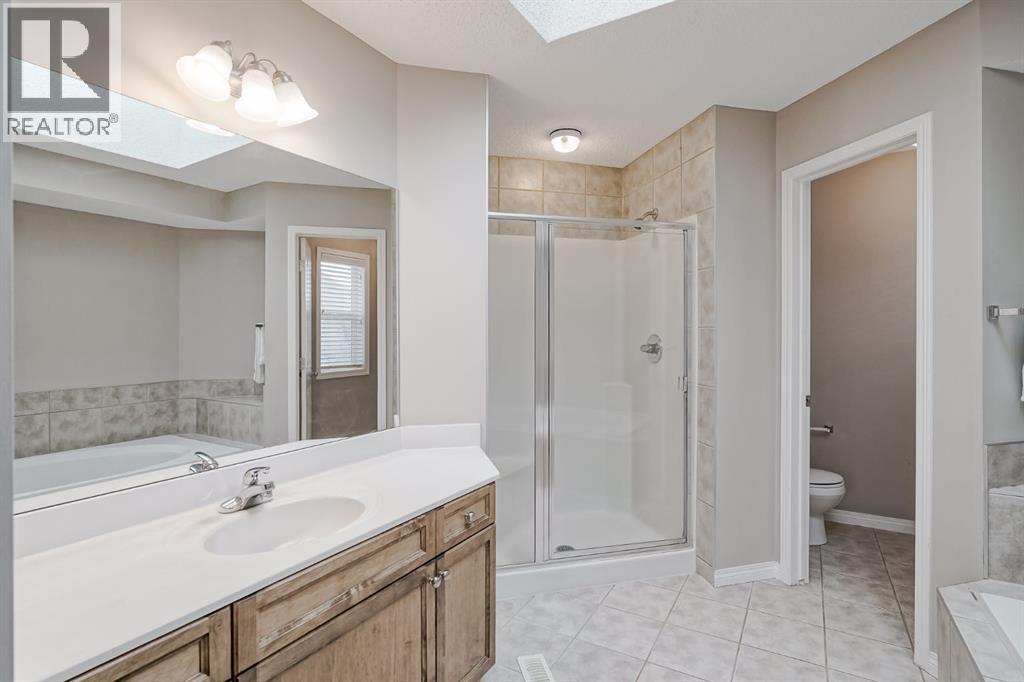 **Open House Saturday October 4th 12-2pm & Sunday October 5th 2-4pm**Welcome to Chaparral, a vibrant lake community offering year-round recreation and top-rated schools! This spacious Cedarglen-built 2-storey home features over 3,000 sq. ft. of thoughtfully designed living space with 5 bedrooms and 3.5 baths. Enjoy brand new hardwood floors on the main level, a warm great room with a gas fireplace and custom built-ins, and a functional kitchen with maple cabinetry, large island, and walk-in pantry. A flexible front room with French doors makes the perfect office or dining space. Upstairs, find a bright bonus room with vaulted ceilings and a charming window bench, plus three generous bedrooms including a king-sized primary suite with walk-in closet and a sun-filled ensuite with a large skylight. The fully finished basement adds two bedrooms, a full bath, and plenty of storage. Recent updates include a newer roof and brand-new hot water tank. Designed with timeless functionality and ready for your personal touch, this well-built home features a sunny southwest yard with underground sprinklers, offering incredible value in one of Calgary’s most desirable lake communities. (id:55577)