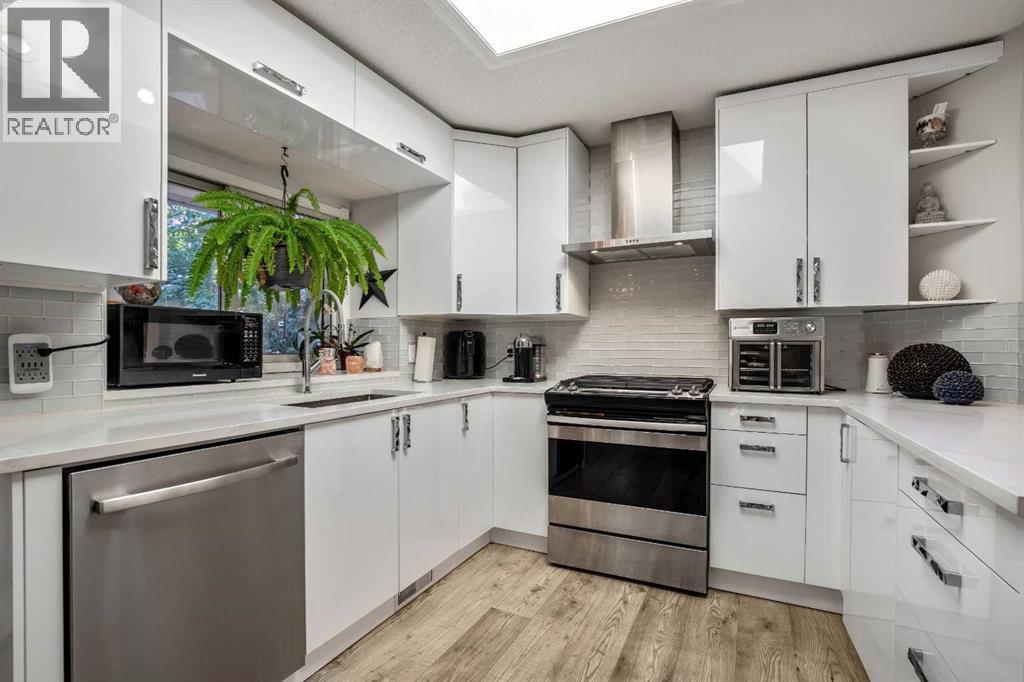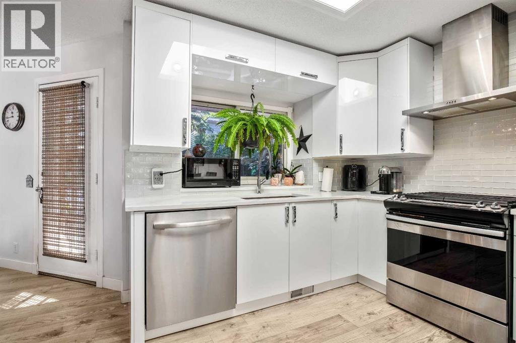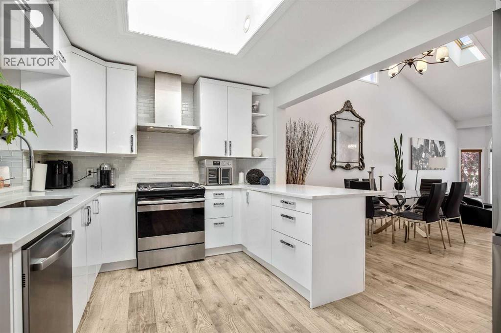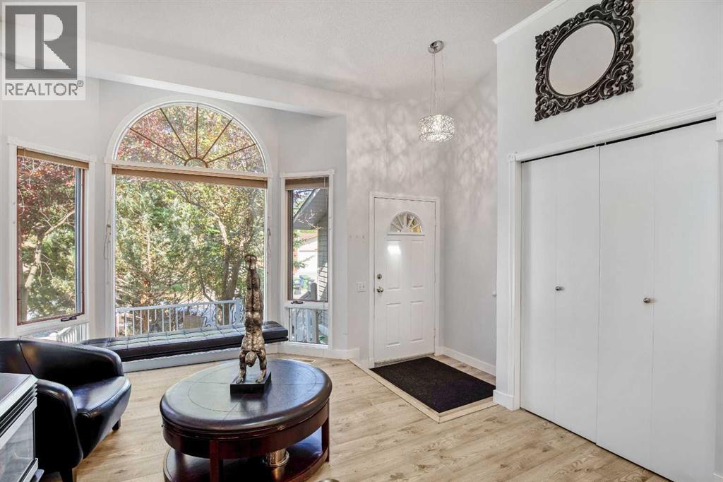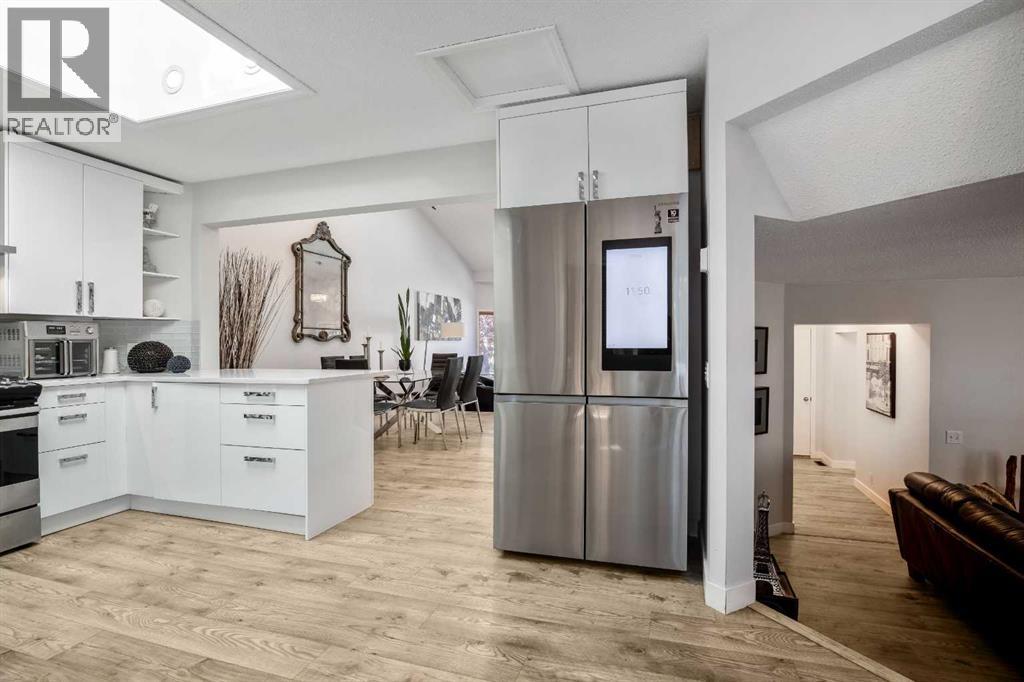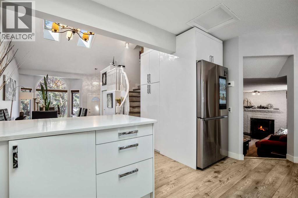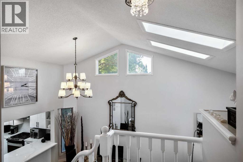 Impeccable living in an ideal location- Nestled in a peaceful pocket of Glenbow, one of Cochrane’s most beloved communities, this lovely home offers the perfect balance of tranquility and accessibility. Enjoy the serenity of a quiet neighbourhood retreat while being just moments away from Cochrane’s shops, restaurants, entertainment, and everyday amenities. As you approach, the charming front porch invites you in, setting the tone for the warmth and character found throughout. Step inside to be greeted by soaring ceilings and skylights that flood the space with natural light. The updated flooring and open-concept layout seamlessly connect the front sitting room, dining area, kitchen and the breakfast nook—perfect for everyday living and entertaining! The beautifully updated kitchen is the heart of the home, featuring quartz countertops, high-gloss cabinetry, a gas stove, and a Samsung smart fridge—blending function and modern luxury. Step outside from the kitchen to your private garden oasis—a peaceful backyard sanctuary ideal for your morning coffee or unwinding at the end of the day. Surrounded by mature greenery and birdsong, it’s a tranquil extension of your indoor living space. Upstairs, the spacious primary bedroom is a true retreat, with a spa-inspired tub and a beautifully updated ensuite bathroom for your ultimate comfort. Two additional bedrooms and a renovated main 4-piece bathroom, provides fresh and modern finishes the whole family will appreciate. The lower level is designed for connection and comfort, where a cozy wood burning fireplace becomes the centerpiece of your family room. French doors lead you to the hot tub jacuzzi, creating a seamless indoor-outdoor flow for year-round enjoyment. The basement offers additional flexible living space—perfect for guests, recreation, or a home office—whatever your lifestyle requires. Additional highlights include an attached double garage, an exposed aggregate front driveway, updated bathrooms throughout, and d irect access to Cochrane’s extensive trail system—perfect for exploring the natural beauty that surrounds you. All of this, within walking distance to schools, parks, and historic downtown Cochrane. Book your private showing today and experience the lifestyle this Glenbow gem has to offer! (id:55577)