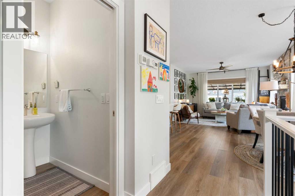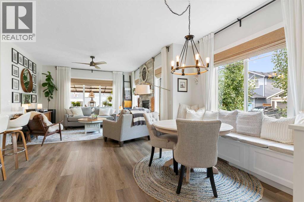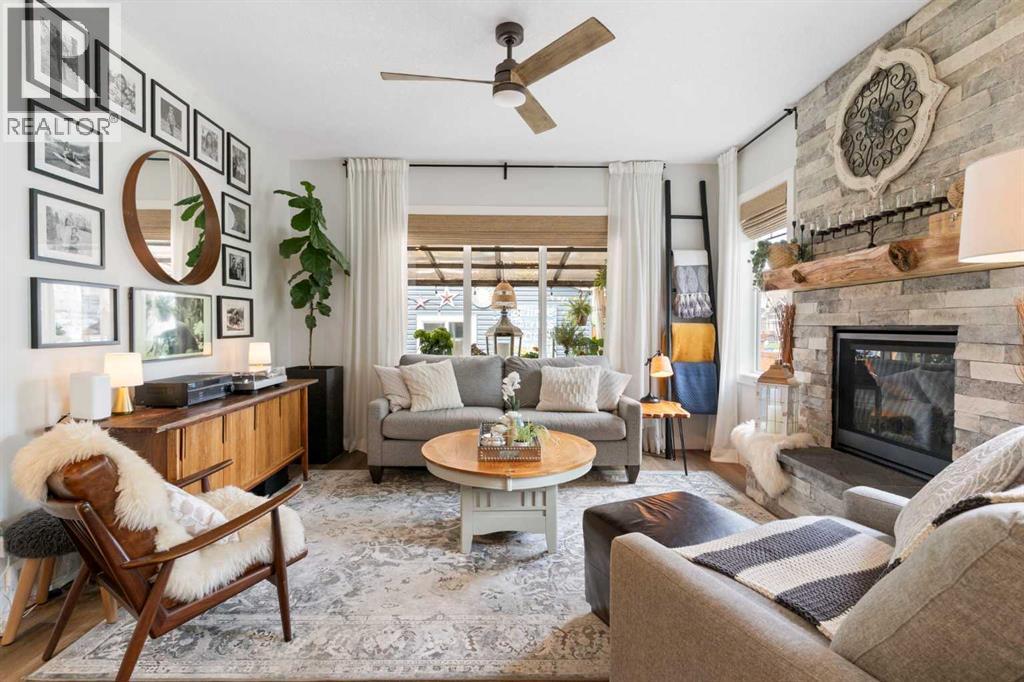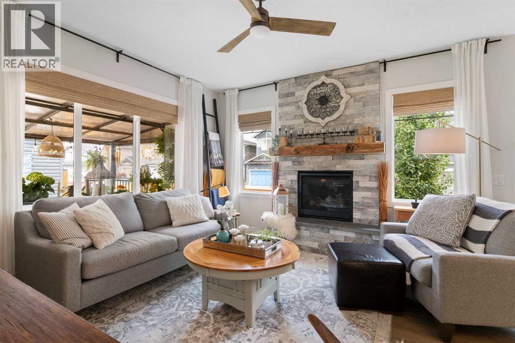 **OPEN HOUSE Sunday Oct 5th, 1-3 PM** Welcome to 6 Emberside Hollow, a sun-soaked corner-lot bungalow in Cochrane’s welcoming Fireside community. With just over 2,030 square feet of thoughtfully planned living space, this home blends modern style with everyday practicality.The main floor feels bright and open thanks to nine-foot ceilings, wide-plank luxury vinyl flooring, and large windows. A chef’s kitchen shines with full-height soft-grey cabinetry accented by undermount lighting, quartz counters, a spacious island that seats three, a gas range, stainless-steel appliances, and an undermount sink. Adjacent to the kitchen, the dining nook with built-in bench. A floor to ceiling brick fireplace anchors the living room, while a handy half bath and mudroom keep daily life organized. The primary bedroom offers a walk-in closet and a spa-style ensuite featuring dual sinks, a large tiled shower with bench, and a glass door.A metal-spindle railing leads to the lower level, where nine-foot ceilings make the family room feel spacious and inviting, perfect for movie nights or play space. Two generous bedrooms share a stylish four-piece bath, and a dedicated office with wall-to-wall desk and shelving lets you work from home in comfort.Outside, the fully fenced yard is designed for low-maintenance enjoyment. Top-quality artificial turf means no mowing, an irrigation system services flowerbeds and planters, landscape lighting sets the mood, and a circular gas fire pit invites evening gatherings. The detached garage measures 22'×22' (8ft tall door) and includes a high ceiling, two large windows, 40-amp 120/240-volt service, a 240-volt heater, overhead storage racks, and a built-in workbench, ideal for vehicles, hobbies, and extra storage. The additional gravel parking pad is perfect for extra vehicles, an RV or a trailer(25'x13' + additional 4' long when gate is open)Fireside is known for its walkable pathways, playgrounds, pump track, future skateboard park, and quick ac cess to Fireside School(K-8), Holy Spirit Catholic School(K-6), local coffee shops, and the Emberside commercial plaza. With Highway 22 only minutes away, Calgary’s city limits and the mountains are within easy reach. If you are looking for single-level living with modern finishes, an entertainer’s backyard, and a vibrant neighbourhood atmosphere, 6 Emberside Hollow is ready to welcome you home. (id:55577)