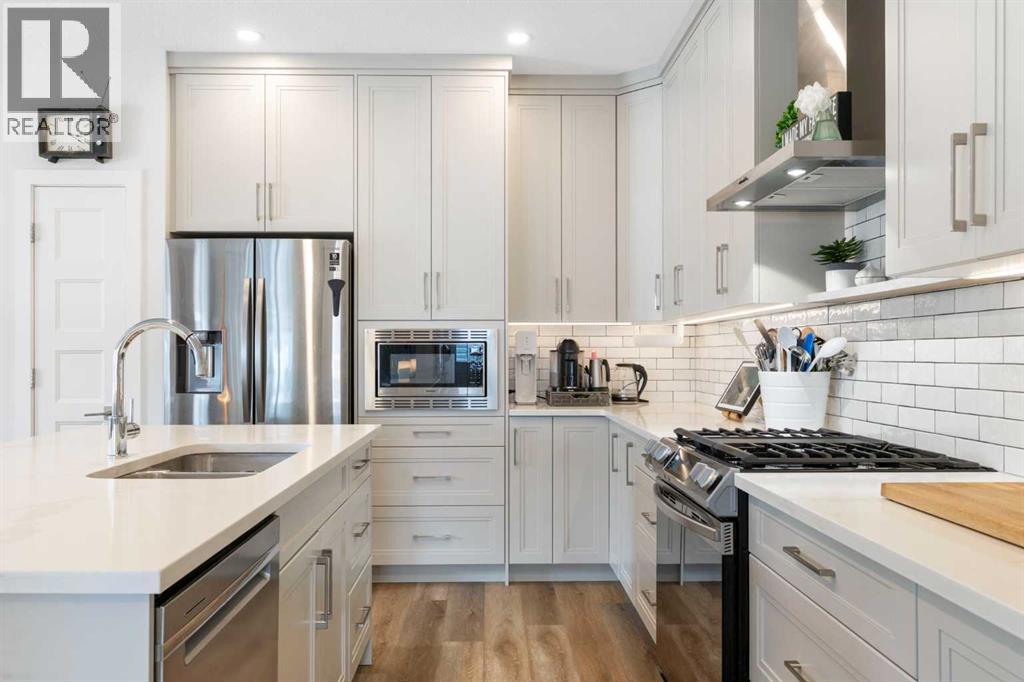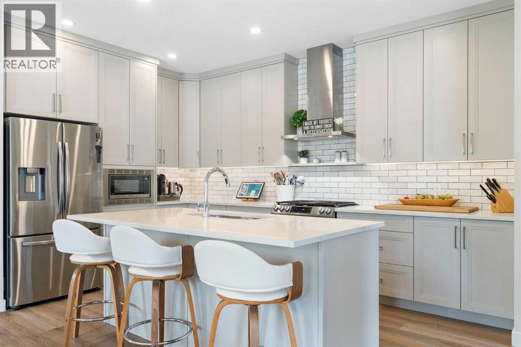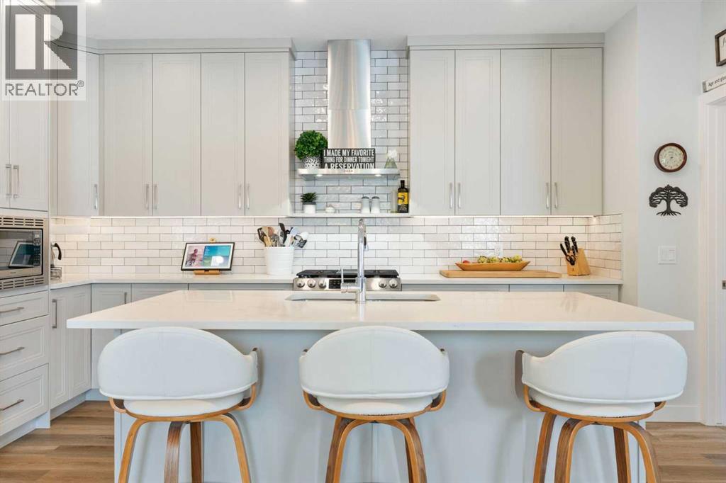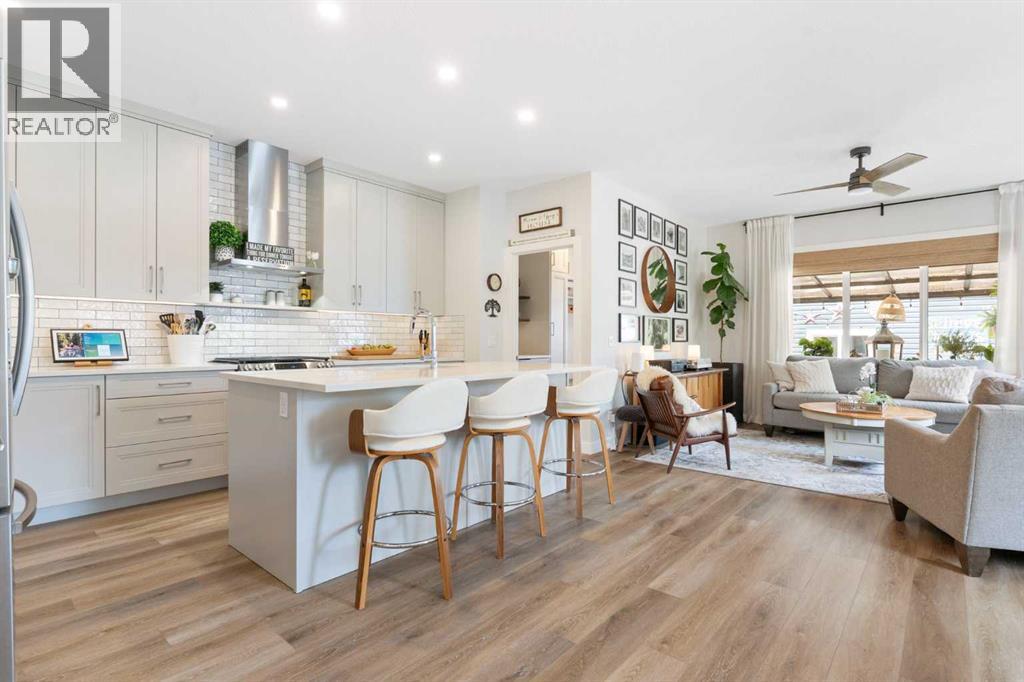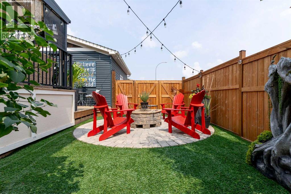 **OPEN HOUSE Sunday Oct 5th, 1-3 PM** Welcome to 6 Emberside Hollow, a sun-soaked corner-lot bungalow in Cochrane’s welcoming Fireside community. With just over 2,030 square feet of thoughtfully planned living space, this home blends modern style with everyday practicality.The main floor feels bright and open thanks to nine-foot ceilings, wide-plank luxury vinyl flooring, and large windows. A chef’s kitchen shines with full-height soft-grey cabinetry accented by undermount lighting, quartz counters, a spacious island that seats three, a gas range, stainless-steel appliances, and an undermount sink. Adjacent to the kitchen, the dining nook with built-in bench. A floor to ceiling brick fireplace anchors the living room, while a handy half bath and mudroom keep daily life organized. The primary bedroom offers a walk-in closet and a spa-style ensuite featuring dual sinks, a large tiled shower with bench, and a glass door.A metal-spindle railing leads to the lower level, where nine-foot ceilings make the family room feel spacious and inviting, perfect for movie nights or play space. Two generous bedrooms share a stylish four-piece bath, and a dedicated office with wall-to-wall desk and shelving lets you work from home in comfort.Outside, the fully fenced yard is designed for low-maintenance enjoyment. Top-quality artificial turf means no mowing, an irrigation system services flowerbeds and planters, landscape lighting sets the mood, and a circular gas fire pit invites evening gatherings. The detached garage measures 22'×22' (8ft tall door) and includes a high ceiling, two large windows, 40-amp 120/240-volt service, a 240-volt heater, overhead storage racks, and a built-in workbench, ideal for vehicles, hobbies, and extra storage. The additional gravel parking pad is perfect for extra vehicles, an RV or a trailer(25'x13' + additional 4' long when gate is open)Fireside is known for its walkable pathways, playgrounds, pump track, future skateboard park, and quick ac cess to Fireside School(K-8), Holy Spirit Catholic School(K-6), local coffee shops, and the Emberside commercial plaza. With Highway 22 only minutes away, Calgary’s city limits and the mountains are within easy reach. If you are looking for single-level living with modern finishes, an entertainer’s backyard, and a vibrant neighbourhood atmosphere, 6 Emberside Hollow is ready to welcome you home. (id:55577)