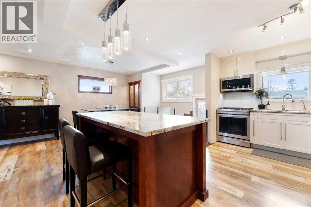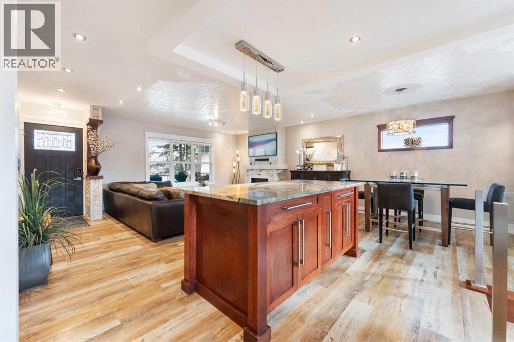 Tucked away on a quiet cul-de-sac in the highly sought-after community of Glendale, this beautifully maintained bungalow offers the kind of warmth and charm that instantly feels like home. Set on a stunning, park-like lot with mature trees and a sunny southwest backyard, this property blends privacy, comfort, and convenience—just minutes from downtown. One of the most special features of this home is the front porch—a peaceful, private retreat complete with a built-in infrared heater, allowing you to enjoy quiet morning coffees or unwind in the evening, comfortably, in every season. Inside, you’re welcomed by a bright, open layout designed for both everyday living and effortless entertaining. At the heart of the home is the kitchen—featuring a large central island that naturally becomes the gathering place for family and friends, seamlessly connecting to the main living areas. The inviting living room, complete with a cozy gas fireplace, is filled with natural light and enhances the warm, welcoming feel throughout. This home offers 3+1 bedrooms and 2 bathrooms (with in-floor heating), providing both comfort and flexibility for families, guests, or a dedicated work-from-home space. The fully finished lower level is designed for relaxation and enjoyment, featuring a spacious rec room with a home theatre projector and sound system—perfect for movie nights—along with a fourth bedroom, bathroom and a separate office or flex room. Step outside and you’ll discover where this home truly shines. The expansive backyard is an entertainer’s dream, complete with a firepit area, a pre-wired pad ready for a hot tub or sauna, and plenty of room to gather, unwind, and make memories—all surrounded by mature trees that enhance the sense of privacy. The oversized 2.5-car heated garage and additional RV parking offer incredible functionality, while central air conditioning ensures comfort through Calgary’s warmer months. Even the practical details have been thoughtfully considered, including a custom dog wash in the lower-level laundry—perfect for an active lifestyle. Located within walking distance to excellent schools, parks, and pathways, and just moments from the vibrant Glendale Community Centre—with tennis courts, events, and a true sense of community—this is a location that’s as special as the home itself. Close to everything that matters, yet quietly tucked away, this is a rare opportunity to own a beautifully cared-for bungalow in one of Calgary’s most established neighborhoods. Because there are houses… and then there are homes. This is one you’ll feel the moment you walk in. (id:55577)