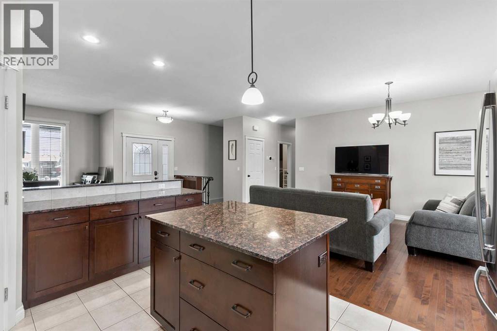 Welcome to this charming and spacious 1,673 sq ft bungalow featuring a rare lofted bonus room above the garage and numerous upgrades throughout. The main floor offers an inviting open-concept layout with a large kitchen that includes granite countertops, a corner pantry, abundant cabinetry, and a generous island overlooking the living and dining areas—perfect for both daily living and entertaining. This level also includes a comfortable bedroom, a full 4-piece bathroom, and the primary bedroom complete with a 3-piece ensuite. Upstairs, the expansive loft above the garage provides an ideal space for a family room, office, or hobby area. The fully developed basement includes an illegal suite with two bedrooms, a 4-piece bath, a spacious living and recreation area, and a kitchen equipped with a fridge, countertop cooktop, microwave, and sink, plus a large mechanical room and additional under-stairs storage. The home features many upgrades such as in-floor heating in the basement and garage, epoxy flooring and 9 ft ceilings in the basement, hot and cold water taps in the garage, a BBQ gas line on the back deck, new shingles and eavestroughs installed in 2025, and a hot water on demand system that is approximately three years old. Outside, enjoy the beautiful front veranda, landscaped yard, large back deck, and oversized storage shed—making this property both functional and inviting. (id:55577)