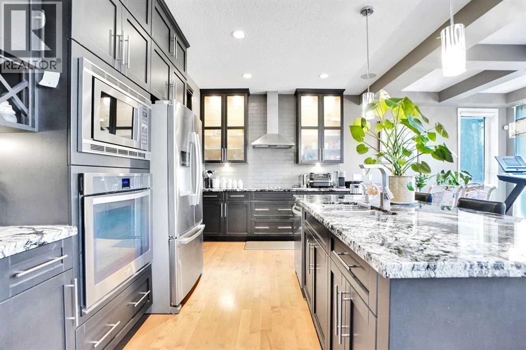 Welcome to your dream home — a meticulously maintained 4-bedroom, 3.5-bathroom sanctuary nestled in a peaceful cul-de-sacin one of the city’s most sought-after neighbourhood of Cranston. This impressive property offers over 2,424 sq ft of luxurious living space, thoughtfully designed for both comfort and style. Step inside and be greeted by soaring high ceilings and an abundance of natural light that pours through large windows, creating a bright and inviting atmosphere. The chef’s kitchen is a true showstopper —featuring built-in stainless steel appliances, granite countertops, custom cabinetry, and a spacious island perfect for entertaining or family gatherings. The open-concept main floor flows seamlessly into the elegant living and dining areas, anchored by a cozy fireplace. Upstairs, you’ll find a spacious primary suite with a spa-like ensuite and walk-in closet, along with two additional generously sized bedrooms and a full bath. Downstairs, the fully finished walk-out basement is an entertainer’s dream. Enjoy a custom wet bar, a large recreation space, an additional bedroom, and a full bath — perfect for guests or multi- generational living. Step outside to a beautifully landscaped backyard that opens directly from the lower level, offering privacy and plenty of space to relax or entertain. This home truly has it all — space, luxury, functionality, and a prime location. Don’t miss your chance to make it yours! Book a Showing today! (id:55577)