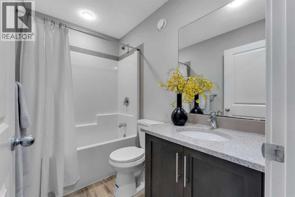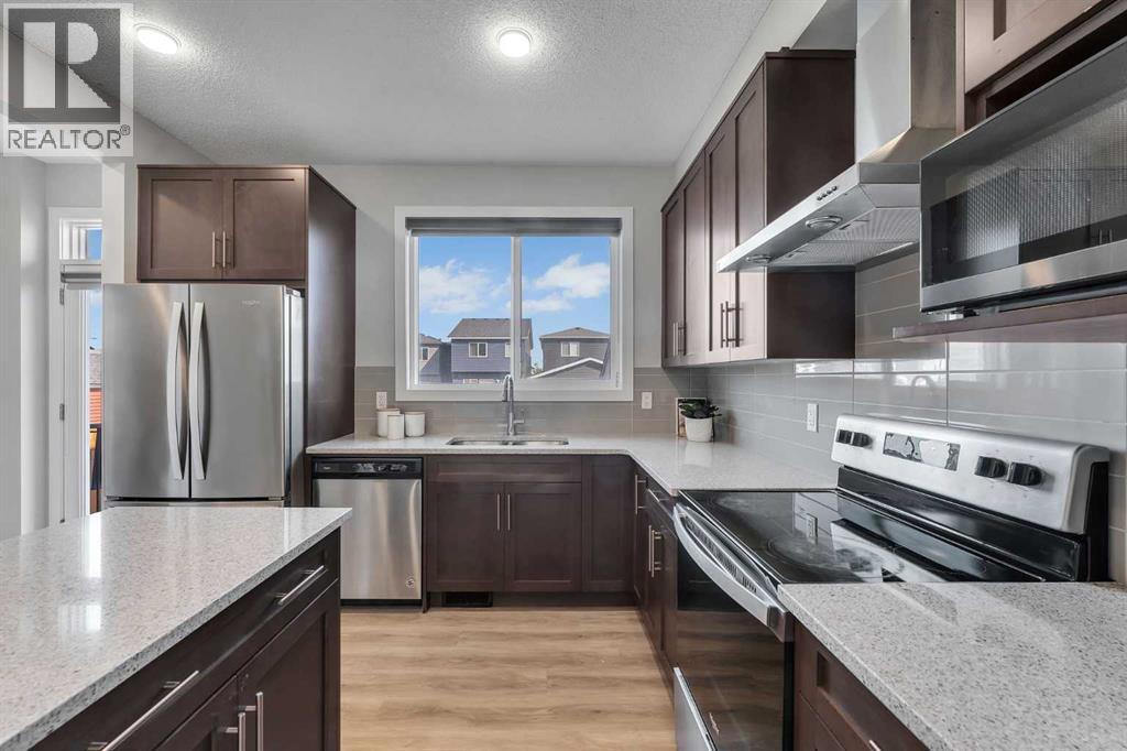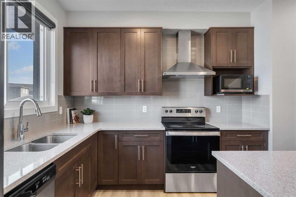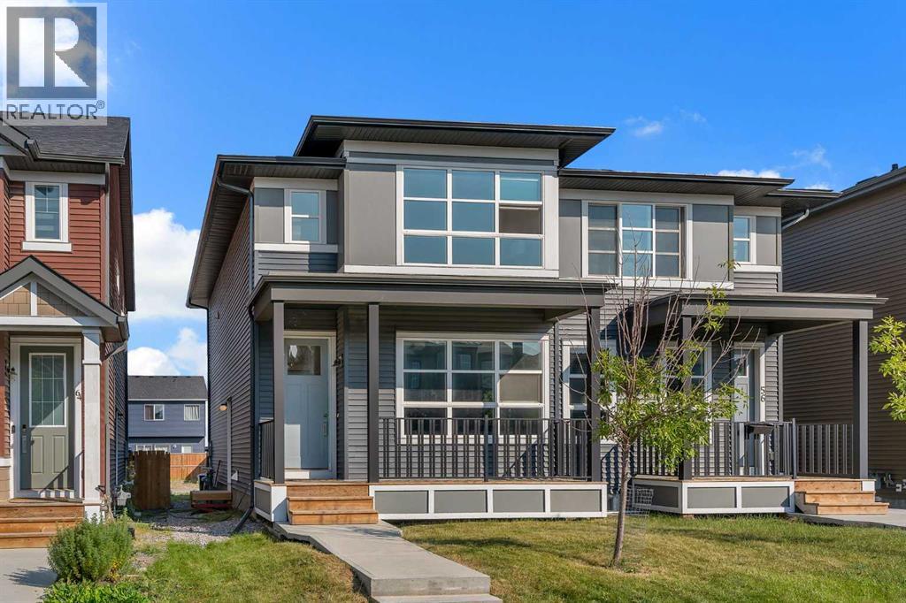 Welcome to this beautiful FULLY FINISHED duplex, located in Livingston, with easy access to Stoney Trail. From the moment you arrive, you'll fall in love with the charming curb appeal and spacious front porch, perfect for watching those evening sunsets. Step inside to find tall ceilings, open concept living, dining and kitchen, great for those family dinners or evenings with friends. A thoughtfully designed nook offers the perfect space for a home office, reading area, or homework station. Around the corner from the kitchen is a tucked away half bath and a spacious back entrance leading to your private yard and dedicated parking spaces. Head up the stairs to find a primary suite, complete with 3 piece bathroom and walk in closet. There are also 2 additional bedrooms, one full bathroom, laundry and a bonus room. The home has a separate entrance leading to the fully finished basement, with an additional bedroom, living space and full bathroom, ideal for guests, family or future income potential. This home is packed with thoughtful features, functional spaces, and endless possibilities, book your showing today! (id:55577)