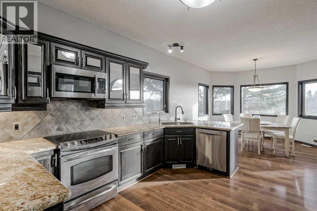 **OPEN HOUSE SAT NOV 29TH 1-3PM** Get excited! This fully finished bungalow delivers almost 2800 sqft of developed living space, style, LAKE PRIVILEGES, and the perfect foundation to make it truly your own! From the moment you step inside, the soaring 12' ceilings, rich dark-stained cabinetry and trim, and stylish laminate flooring create an impressive and welcoming atmosphere. **The bright, open kitchen is designed for both cooking and gathering, featuring abundant cabinetry, granite counters, stainless steel appliances, a handy eating bar, and a spacious dining area that flows right out to the deck (12' x 21'). The primary bedroom also offers direct deck access—your own private retreat—with a walk-in closet and a relaxing ensuite complete with corner jetted tub, separate shower, vanity, and makeup desk. A main floor office adds the perfect workspace, flex room OR SECOND BEDROOM UP! **The walkout basement delivers even more living space, boasting laminate flooring throughout, a cozy family room with a second fireplace, a huge recreation room for entertaining, two additional bedrooms, a full bathroom, and plenty of storage. **Outside, enjoy a beautifully landscaped backyard featuring a patio, shed, RV parking off the back lane, and the added bonus of a double attached front garage. Plus, enjoy peace of mind knowing all Poly-B plumbing has been recently replaced. **This home truly has it all - style, space, upgrades, and an amazing location, ready for your personal touch!** (id:55577)