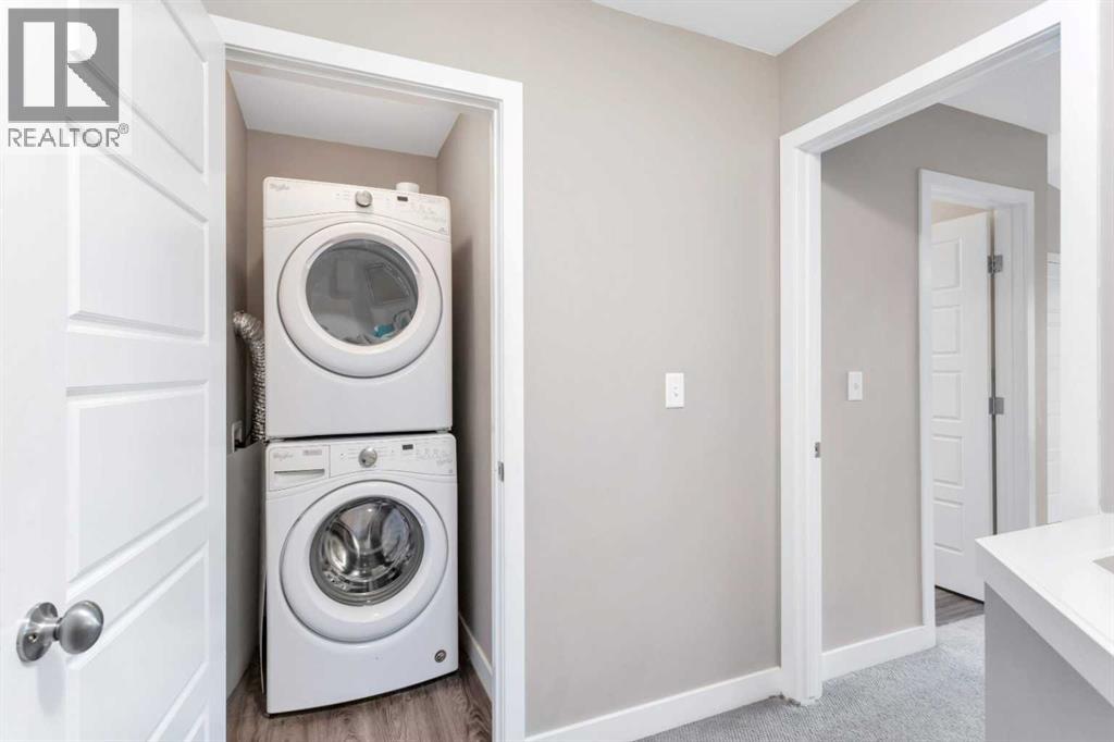 Located in the desirable community of Clearview Ridge, this stylish 2-bed, 2.5-bath townhome offers comfort, convenience, and a modern layout. The townhome features an attached, heated tandem double garage, where you will also find the utility room and additional storage space. Upstairs, the main living area features vinyl floors, a bright living room, and a 2-piece bathroom. The kitchen features ample cabinetry, black appliances, and access to the west-facing deck—ideal for enjoying morning coffee.The top floor features two spacious bedrooms, each with its own en-suite, large windows, and good closet space. A stackable washer/dryer is conveniently located on the bedroom level.Enjoy a shared green space out back and quick access to walking trails just steps from the front door. Close to schools, parks, and Clearview Market’s shops and restaurants—this is an ideal home for first-time buyers, downsizers, or investors. (id:55577)