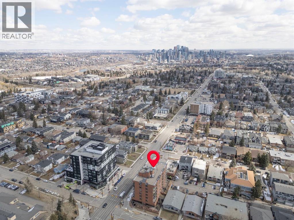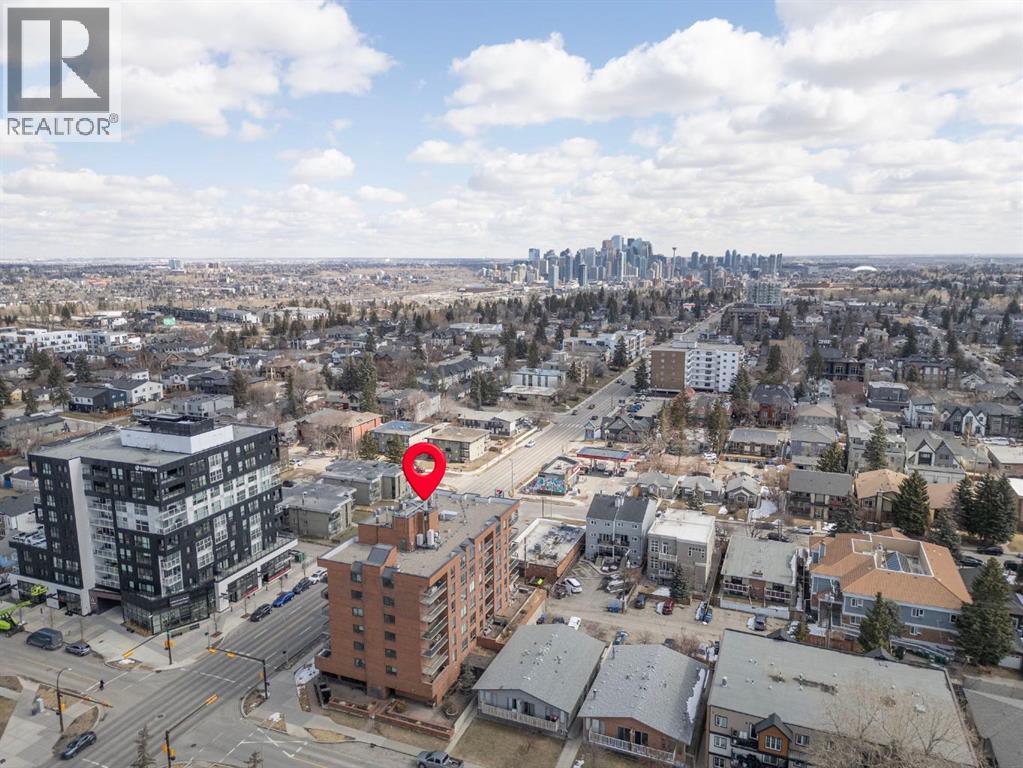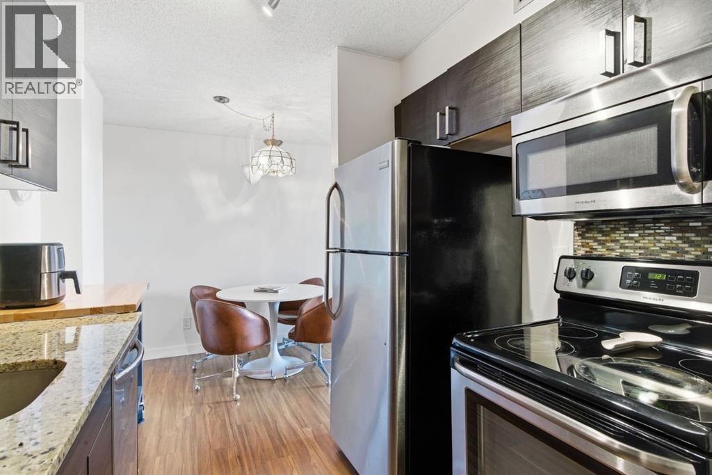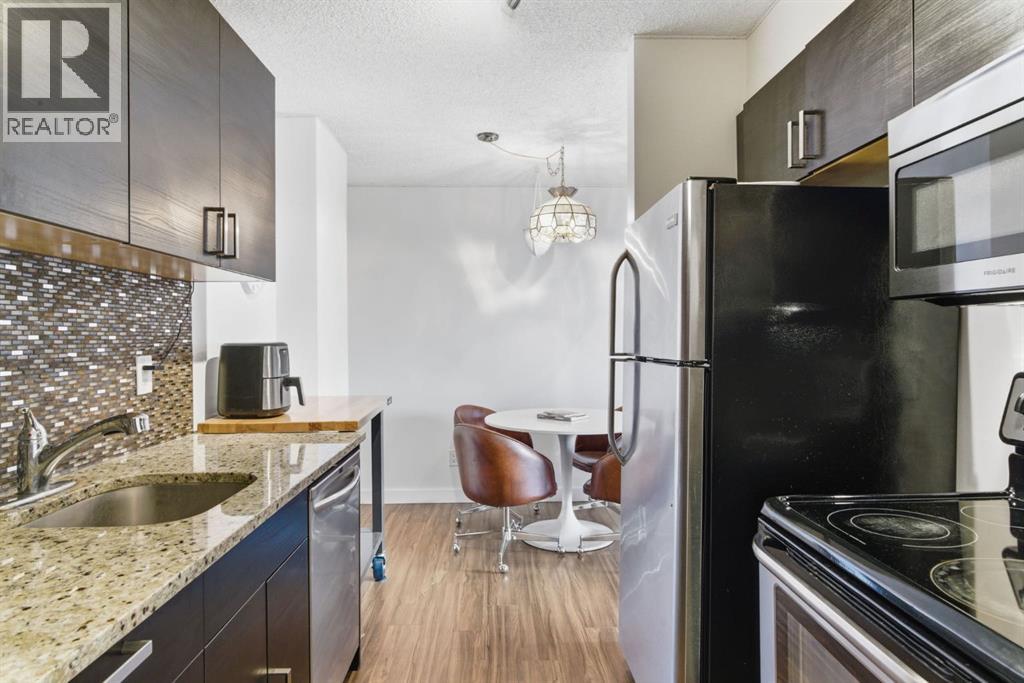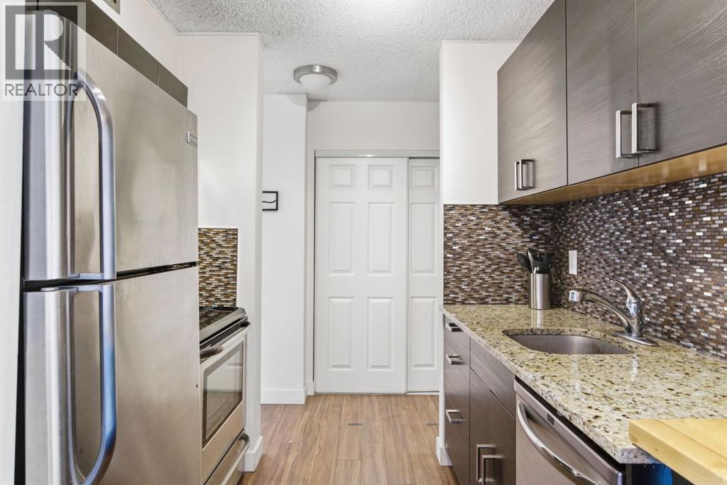 Welcome to a fantastic opportunity in a well-managed concrete building, perfectly located on vibrant 17th Avenue! This bright, south-facing 2-bedroom condo offers over 750 SF of well-designed living space, filled with natural light throughout the day—ideal for first-time buyers or investors. Enjoy the sunny exposure from your quiet south-facing balcony—perfect for relaxing or enjoying your morning coffee. The kitchen has been updated with granite countertops and stainless steel appliances, offering both style and functionality. This home features two generously sized bedrooms, a 4-piece bathroom with a soaker tub, and the convenience of newer in-suite laundry. A titled underground parking stall adds everyday comfort. Located in a secure, professionally managed building with condo fees that include all utilities except electricity, this is truly a low-maintenance and affordable option. Walking distance to the C-Train, shops, restaurants, and amenities, and just steps to the Killarney Aquatic Centre. A great opportunity in a prime location—don’t miss it! (id:55577)