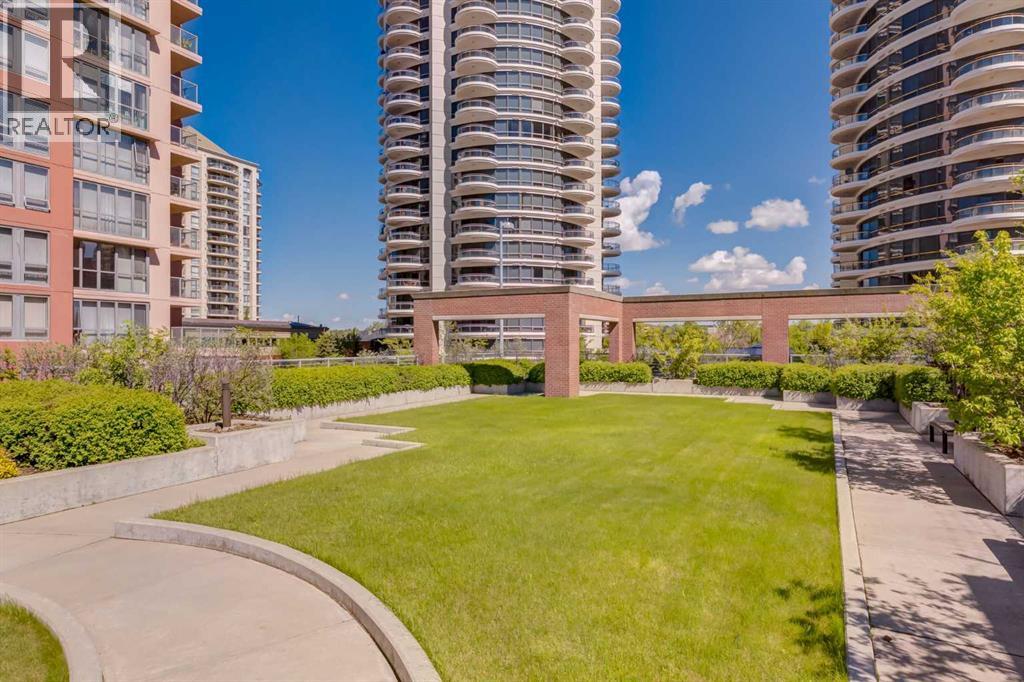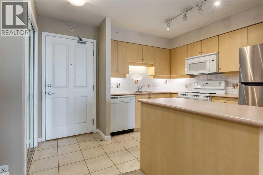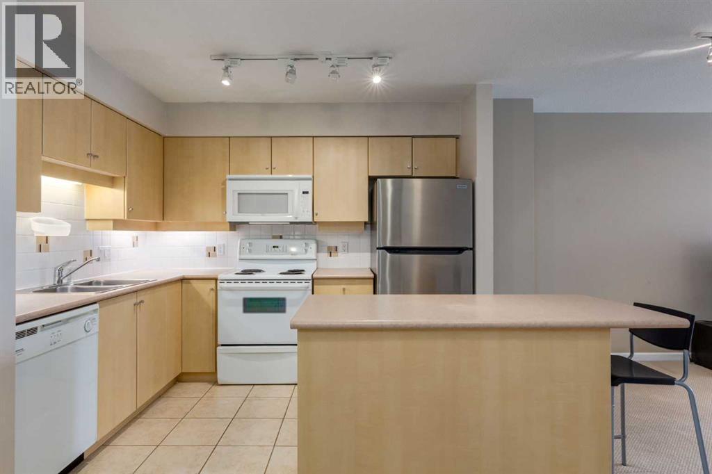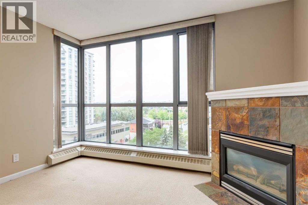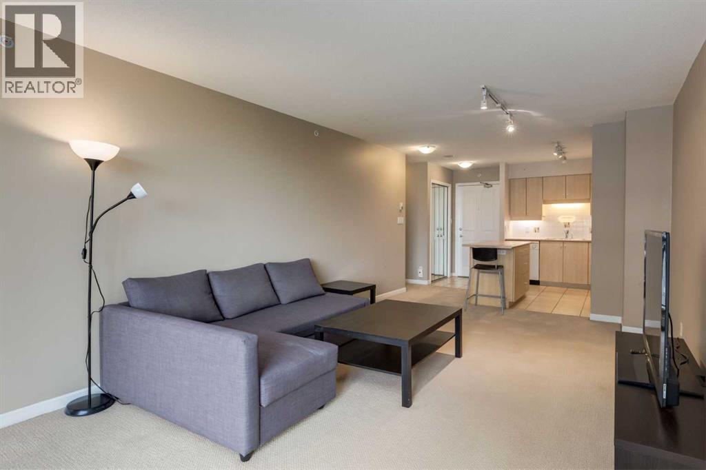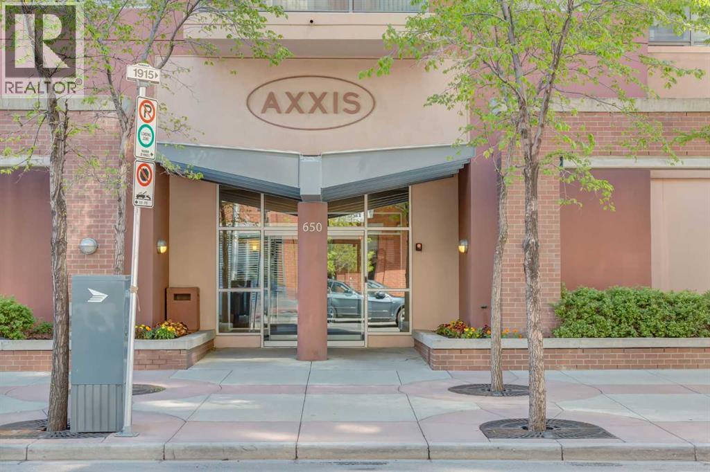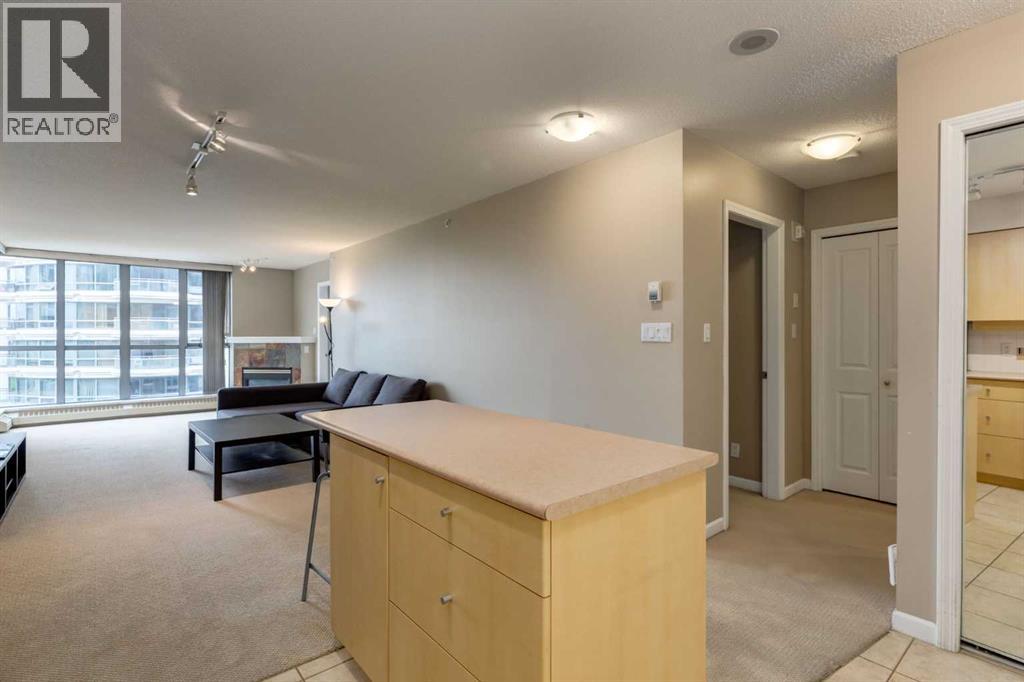 Welcome to the Axxis building located in the heart of West Downtown. This unit features an open floorplan with carpet and tile flooring throughout. A large kitchen with plenty of upper and lower cabinetry and an island. Dining area and living room with a cozy corner fireplace. Large bedroom, a den that could be used as an office space and full 4pc bathroom. Assigned secured underground parking, storage locker and insuite laundry. Concrete building providing a quiet living and slight views of the Bow RIver. Amenities include a fitness centre and a party/recreation room. Just steps away from LRT Station, restaurants, shopping, pathways and the Bow River. Don't miss out on this opportunity. Make your private showing today. (id:55577)
