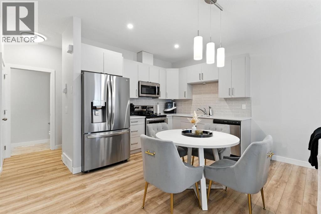Discover modern living in this beautifully maintained 2 bedroom, 2.5 bathroom stacked townhouse in Airdrie’s sought-after Canals community. With 1,082 sq. ft. of thoughtfully designed space, this home offers an open-concept main floor with durable vinyl plank flooring, a bright living area, and a sleek, contemporary kitchen perfect for everyday living and entertaining. A convenient mudroom off the entrance leads to the attached garage, while a main floor powder room adds guest-friendly functionality. Upstairs, enjoy cozy carpeting, upper-level laundry, and two spacious bedrooms, including a private primary suite with a walk-in closet and 4-piece ensuite. A second full bathroom provides added convenience, and the undeveloped basement offers endless potential for a home office, gym, or extra storage. Perfectly located along 8th Street SW, you’re just minutes from shopping, dining, schools, parks, and scenic walking paths along the canals. Whether you're a first-time buyer, downsizer, or simply looking for low-maintenance living in a vibrant neighbourhood, this move-in-ready home is full of comfort, style, and everyday convenience. (id:55577)