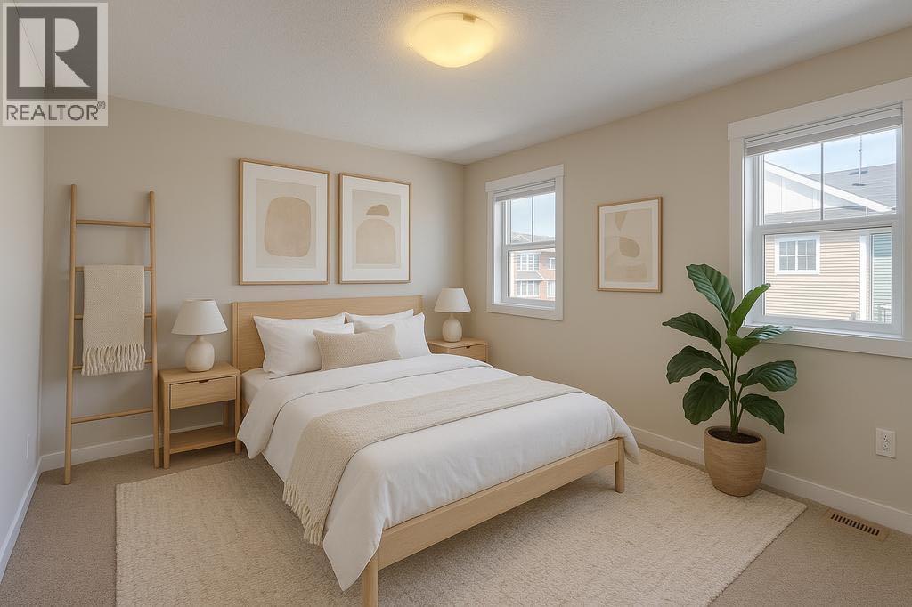 Welcome to this turn-key, move-in ready condo located in the desirable community of King’s Heights in Airdrie. Designed with style and function in mind, the modern centre kitchen is a true highlight featuring quartz countertops, a large eat-up island, stainless steel appliances, an upgraded refrigerator, pendant lighting, and wood-grain laminate flooring throughout the main level.The open-concept design is bright and inviting with large windows that flood the space with natural light, while the back deck provides the perfect setting for summer barbecues or quiet evenings outdoors. Upstairs you’ll find the convenience of upper-floor laundry along with two spacious primary suites, each offering a walk-in closet and its own four-piece ensuite bathroom.The attached garage adds everyday convenience with a walk-out to a private concrete patio and outdoor space.Set in King’s Heights, this home offers the perfect balance of comfort and location, with easy access to parks, pathways, schools, shopping, dining, and commuter routes. Don’t miss this opportunity to own in one of Airdrie’s most sought-after communities! (id:55577)