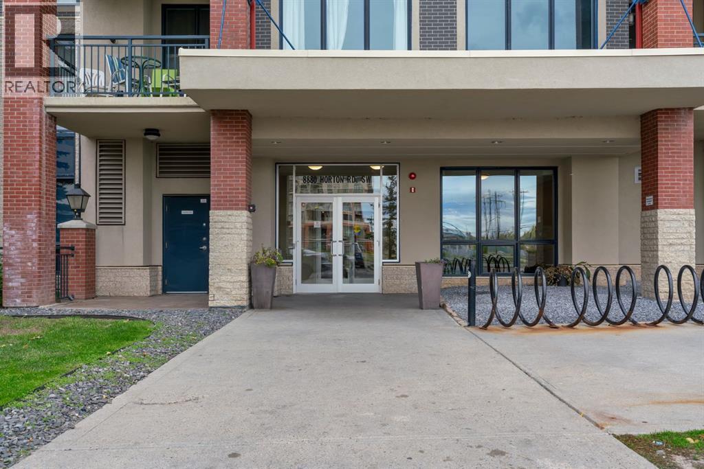 This stunning 1-bedroom, 1 full-bath, 1 den 6th floor unit is a true testament to pride of ownership, featuring thoughtful updates and an open-concept living space with 9 foot ceilings that create a spacious, airy atmosphere. With newer LVP flooring, stainless steel appliances, this modern residence is the urban haven you’ll love coming home to. The energy-efficient building boasts large south-facing windows that flood the rooms with natural light. Cooking enthusiasts will appreciate the well-appointed kitchen, equipped with light and airy cabinetry for ample storage, and a large granite island perfect for meal prep or casual dining. The breakfast bar connects the kitchen to the dining and living areas, making entertaining a breeze. Step out onto the balcony, where a gas line makes barbecuing easy, all while enjoying sunny southern views. The spacious dining area is ideal for intimate dinners or larger gatherings, and the generous living room provides ample space for your furniture, creating a versatile environment for relaxation or hosting guests. Retreat to the primary bedroom with a large closet, huge bonus is the fabulous den area that provides the perfect space for an office, or if you have guests, add a dynamic Murphy bed, and voilà, you have a versatile space for overnight visitors! Located down the hall, the convenience of in-suite laundry that simplifies everyday chores. The elegantly finished 4-piece bathroom features a granite counter and dedicated storage area ensures your living space remains organized and clutter-free. This unit is move-in ready, allowing you to settle in and enjoy immediately. For added convenience, the condo includes one unassigned heated indoor parking stall and bike storage on the main level of the parkade. Building amenities cater to a modern lifestyle, featuring a dedicated concierge service from Monday to Friday, 24-hour security, and three high-speed elevators for easy access. Relax in the sunroom terrace on the 17th floor, w here you can unwind and take in panoramic views. The prime location offers unbeatable convenience, with direct parkade access to Save-On-Foods, Tim Hortons, and the "Shops at Heritage" right next door. The Heritage LRT Station is just across the street, providing quick and easy transit access.For outdoor enthusiasts, nearby bike trails, Glenmore Reservoir, Fish Creek Park, and numerous green spaces offer endless recreation options. Major shopping centers like Walmart, Chinook Centre, and South Centre are only minutes away, along with a variety of restaurants, pubs, and amenities that make this location truly exceptional. Don't miss your chance to experience this incredible property. Great revenue property or first-time home buyer. (id:55577)
