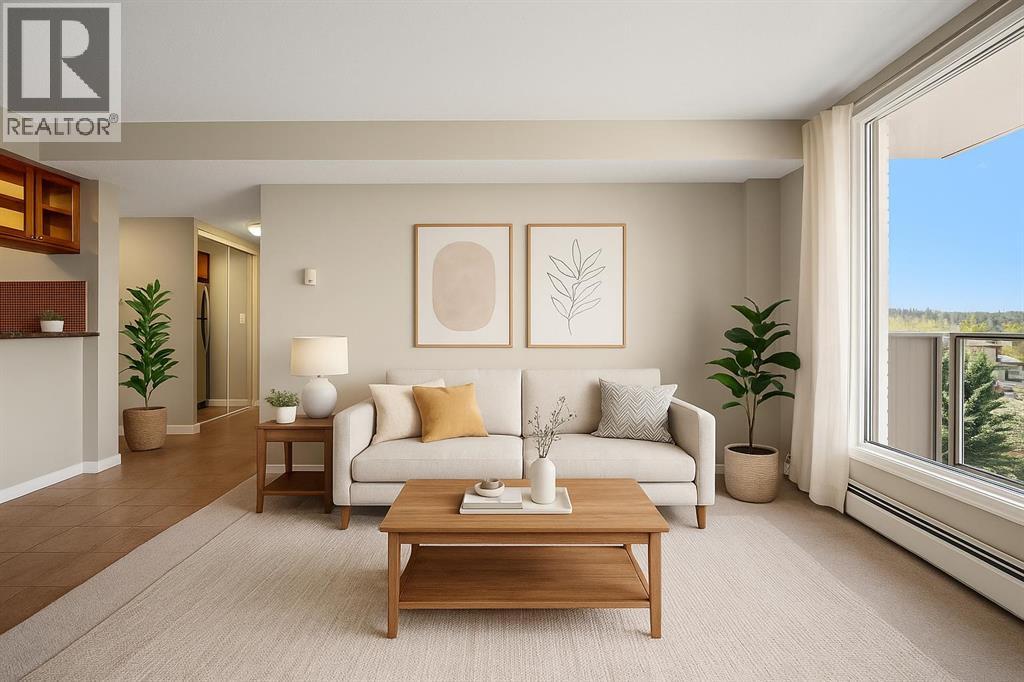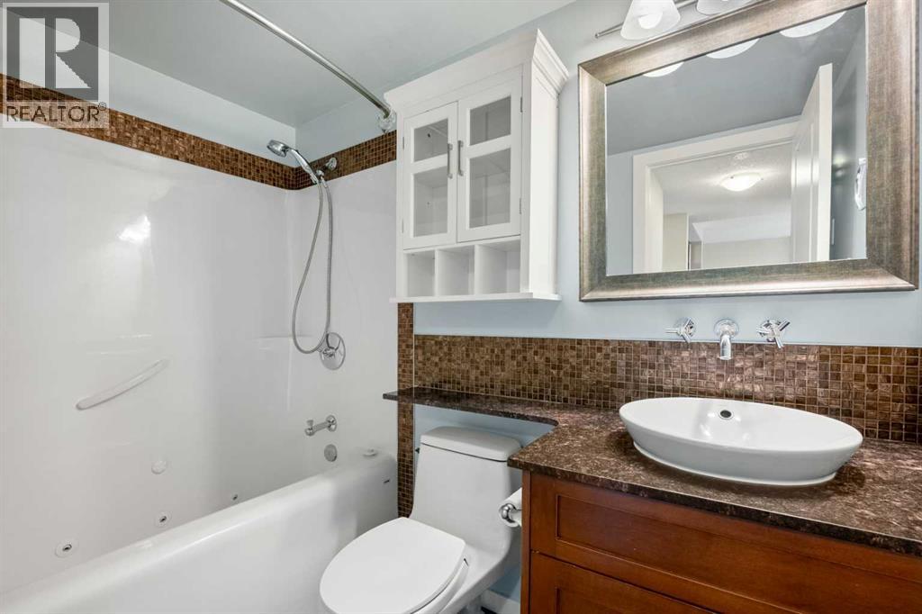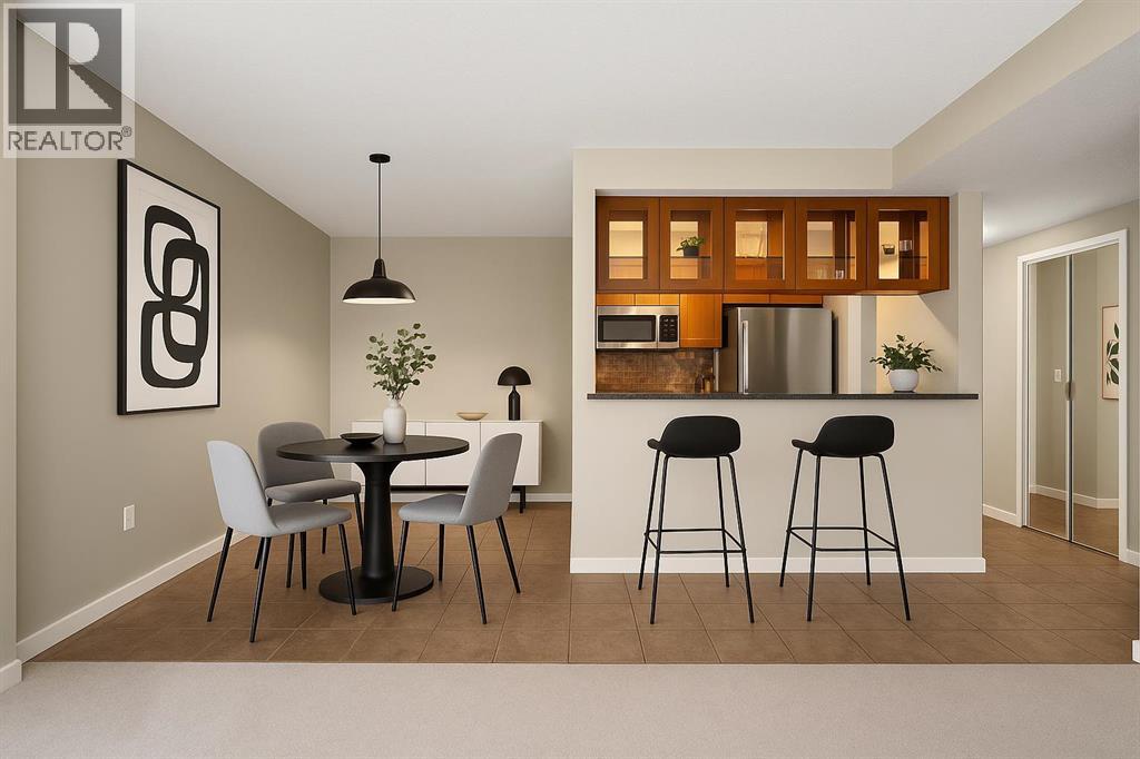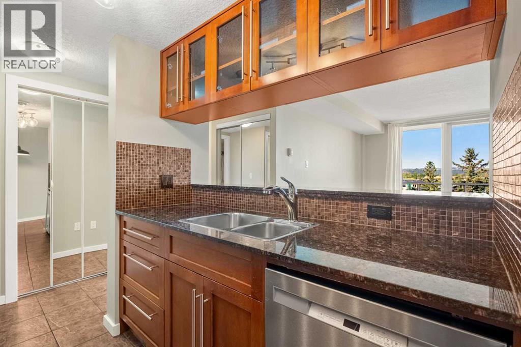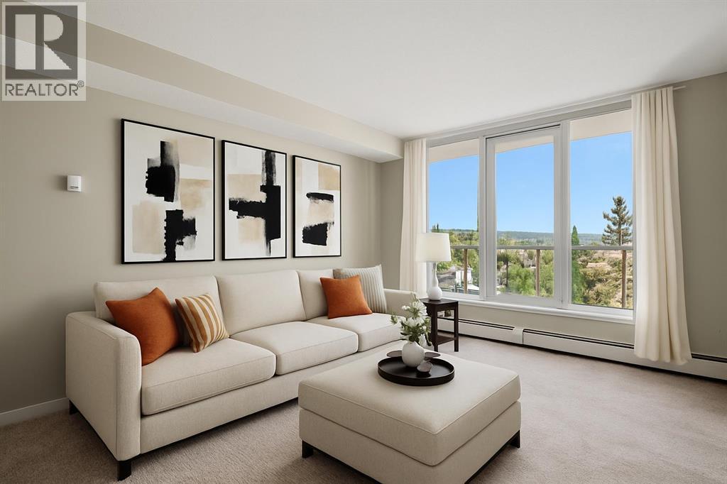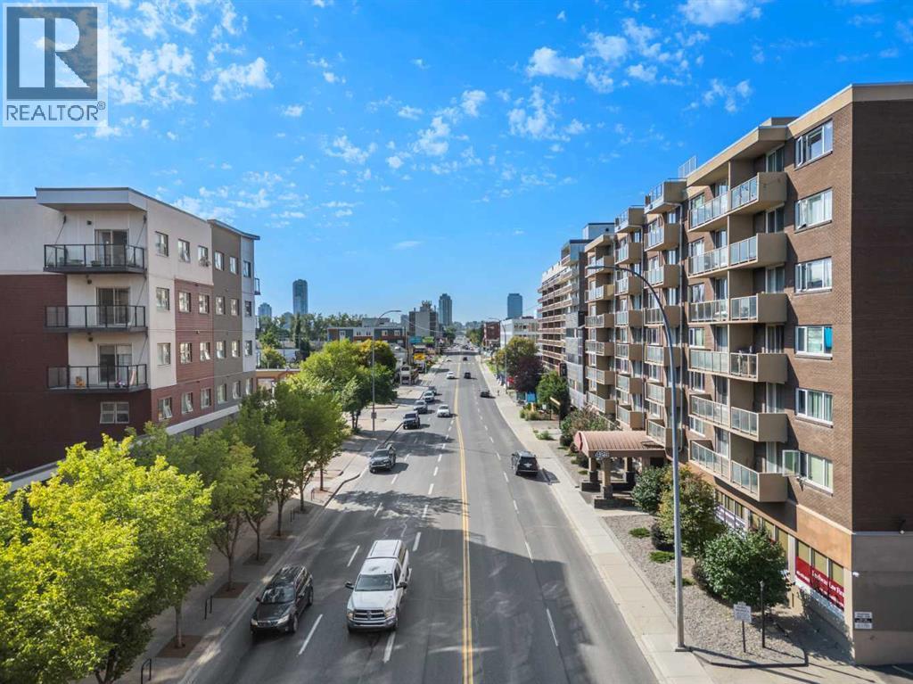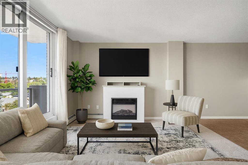 Don't miss this highly upgraded + move-in ready west facing condo in Kensington! Perched up on the 6th floor, you will gravitate towards the open concept floor plan, big windows, natural light + brand new plush carpet installed just last week. A contemporary kitchen awaits: granite counters, tile backsplash, stainless steel appliances, breakfast bar plus new fixtures/faucet/microwave + dishwasher. Start the evening in the dining nook and then migrate over to the expansive living area with a bottle of wine. Cozy up to the fireplace while watching your favourite show, feet up and appreciating the complete privacy offered. When weekends call, step out to the patio, fire up the BBQ and enjoy the sunset views! When it's time to retreat, you will love the size of the primary bedroom [and its windows] - showcasing a sliding dual door closet along with built-in cabinets to house your entire wardrobe. Steps outside you will find a stylish bathroom with wall mount fixtures, medicine cabinet + jetted soaker tub. Rounding out the full list of perks are Hunter Douglas blackout blinds, in-suite laundry, a designated parking stall + oversized storage locker. You will certainly appreciate the onsite fitness area and bike room. Close to coffee shops, boutiques, restaurants, lounges, grocery, C-Train, SAIT while being mere minutes into the downtown office core. An opportunity meant for discerning buyers - this unit needs absolutely nothing but you! (id:55577)