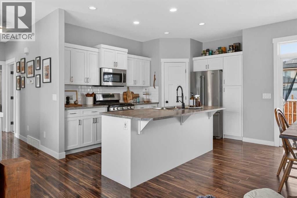 Located in the picturesque community of Diamond Valley (Turner Valley), this home offers the perfect balance of small-town charm, everyday convenience, and a lifestyle rooted in connection.Set on a lot with desirable west backyard exposure, you’ll enjoy natural light from midday through the evening, creating the perfect setting for long summer nights outdoors. The large tiered deck is made for entertaining, while the expansive yard offers plenty of space for kids, pets, and gardening. The front yard welcomes the morning sun, while the backyard becomes a warm, sun-filled retreat into the evening. Back alley access provides ample parking, including RV space, with room to build an oversized garage while still maintaining a generous yard.Inside, the main floor offers thoughtfully designed living space with 9-foot knockdown ceilings, creating an open, bright, and comfortable feel. The layout is both practical and inviting, ideal for everyday living and gathering with friends and family. Modern finishes enhance the space, highlighted by a stylish white kitchen complete with a gas range, corner pantry, and centre island, all flowing seamlessly into the main living and dining areas.The lower level is unfinished and ready for your vision, featuring four large windows and a bathroom rough-in, offering excellent potential for future development.Tucked into a quiet street with respectful, friendly neighbours, this home reflects the strong sense of community that makes this area so special. Families will appreciate being just minutes from Turner Valley School, multiple playgrounds, and walking paths, making daily routines simple and connected. Situated along the edge of town, it offers a quieter setting while still keeping everything close at hand.Living here means embracing a lifestyle. Located at the gateway to Kananaskis Country and along the iconic Cowboy Trail, you’re minutes from hiking, biking, fly fishing and endless outdoor recreation. The community offers an impre ssive range of amenities, including an outdoor pool, library, off-leash dog park, shops, restaurants, brewery, distillery and access to local medical care through Oilfields General Hospital, many of which are within walking distance. Commuters will value the accessibility, with approx 20 mins to Okotoks, 35 mins to South Health Campus and Seton and 50 mins to downtown Calgary.Evenings here are something special. Whether it’s relaxing on the deck, hosting friends, or enjoying quiet family time, the backyard truly becomes an extension of the home. On clear nights, you may even catch the beauty of the dark sky and northern lights, a rare and memorable experience.This is more than just a home. It’s where families grow, neighbours connect, and everyday moments become lasting memories.Come for a look, stay for life. (id:55577)