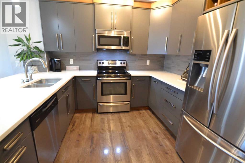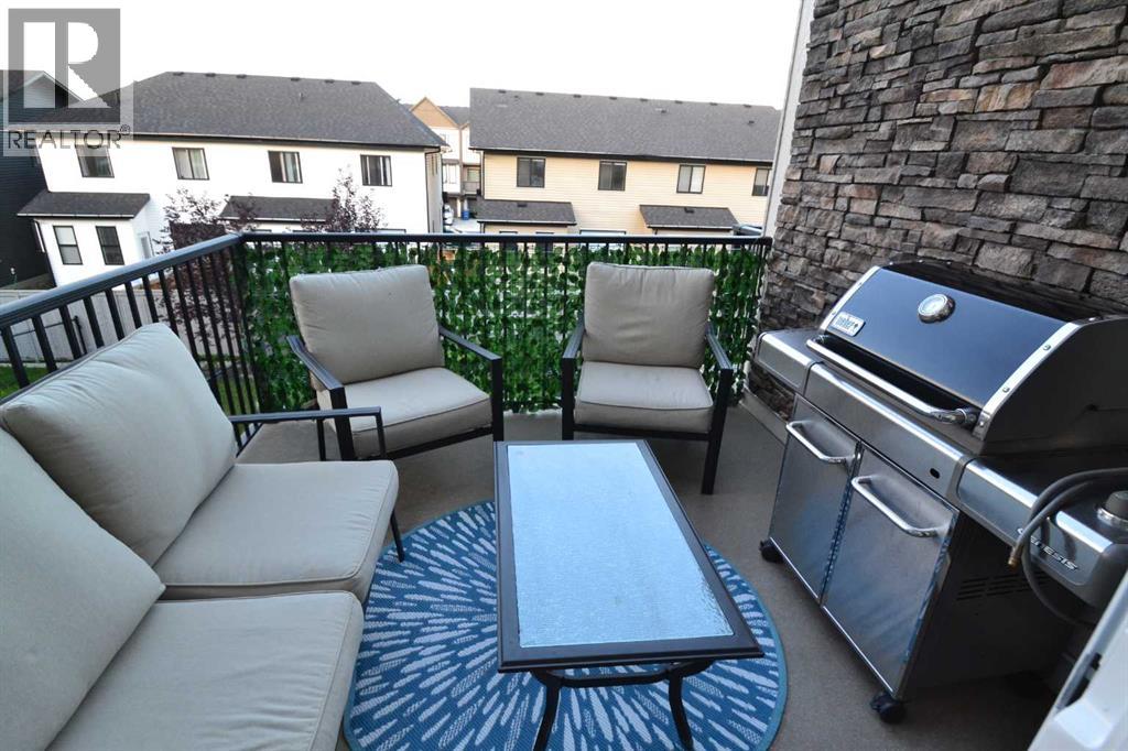 NO CONDO FEES - NOT A CONDO - Welcome to easy living in the quiet Airdrie community of Hillcrest. Beautifully finished, move-in ready townhouse with beautifully landscaped fenced yard, attached garage with large paved driveway for 2 cars. Spacious 3-bedrooms, 2.5 baths. Bright and inviting open concept main floor with 9-foot ceilings and neutral tones, filled with natural light from expansive windows with a very functional layout designed for comfortable everyday living. The Chef-inspired kitchen boasts stainless steel appliances, elegant quartz countertops and ample cabinetry, seamlessly flowing into a spacious living and dining area with an island for sitting - ideal for hosting or relaxing with family. There is also a 2-piece bath for convenience. Step out onto the large balcony overlooking the beautifully landscaped yard, perfect for barbecuing and relaxing. Upstairs has a separate laundry room, 3 generously sized bedrooms, including a tranquil primary suite, complete with a walk-in closet and private 3-piece ensuite. Two additional bedrooms and a 4-piece bath complete the space. Excellent location with walking paths, close to schools, parks, shopping and quick easy access to Calgary. If you’ve been searching for a stylish, functional home in a well-established community, without the added cost of condo fees, look no further, this may be just what you’ve been looking for. (id:55577)