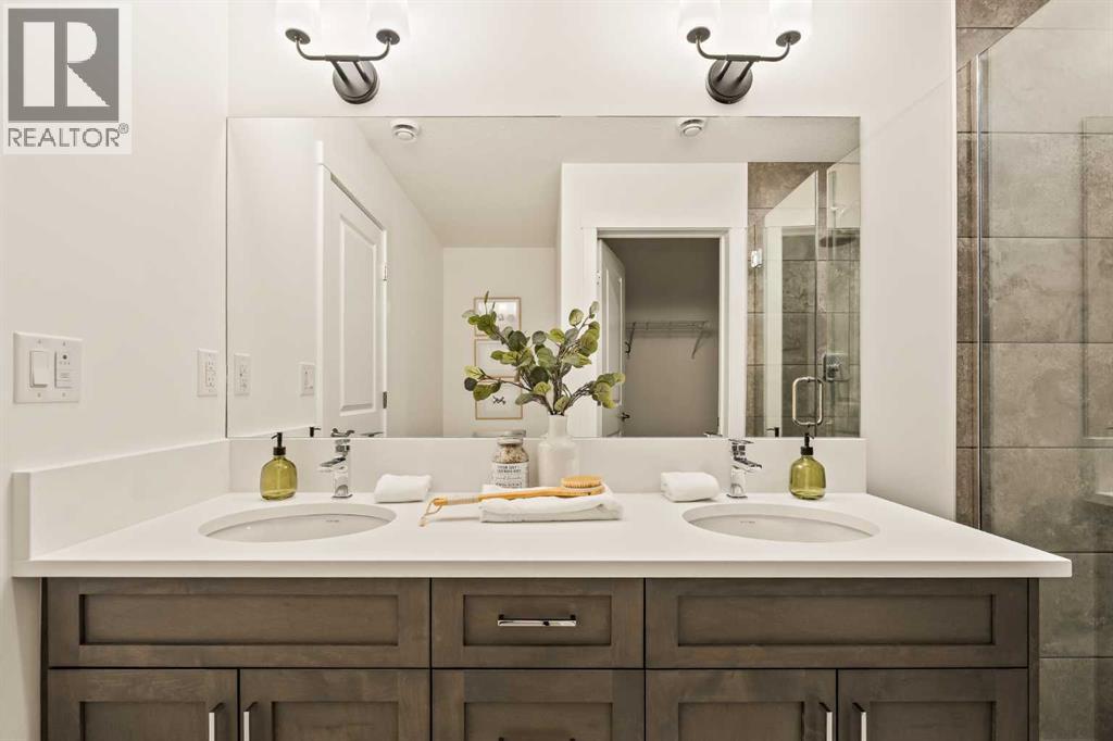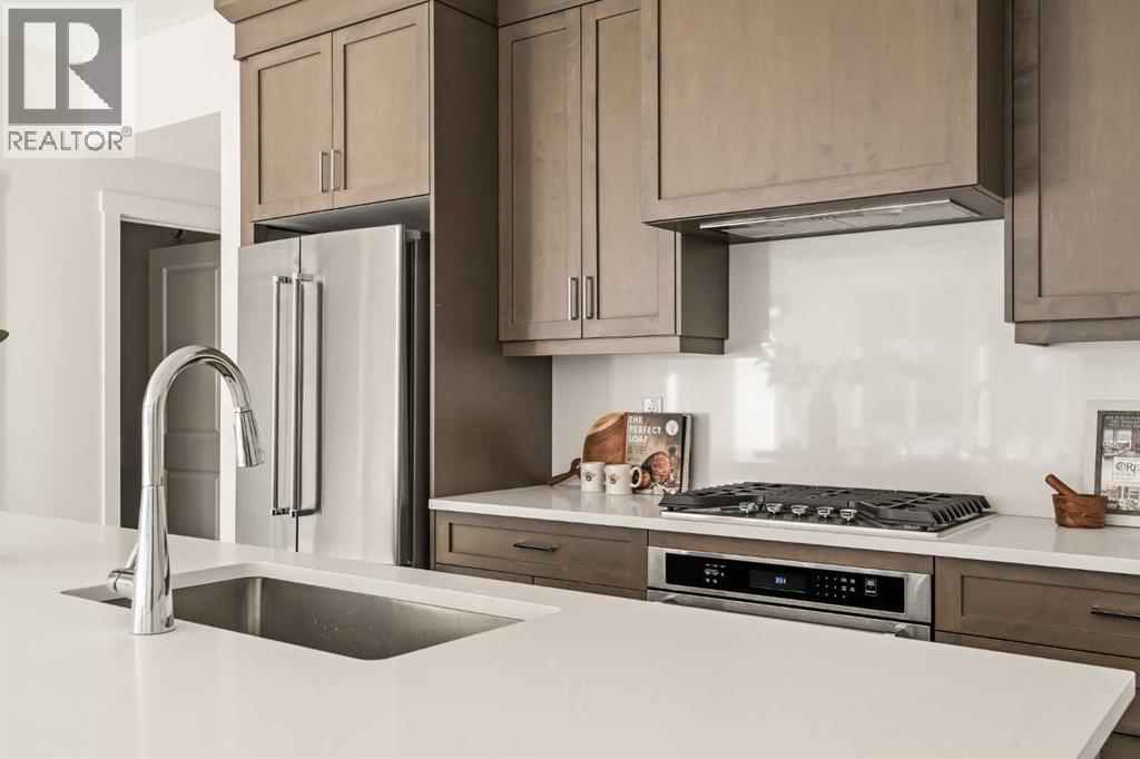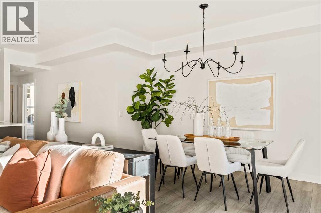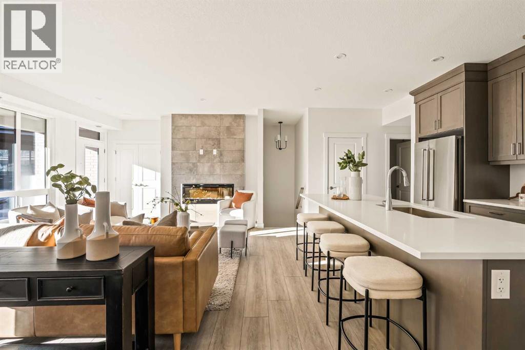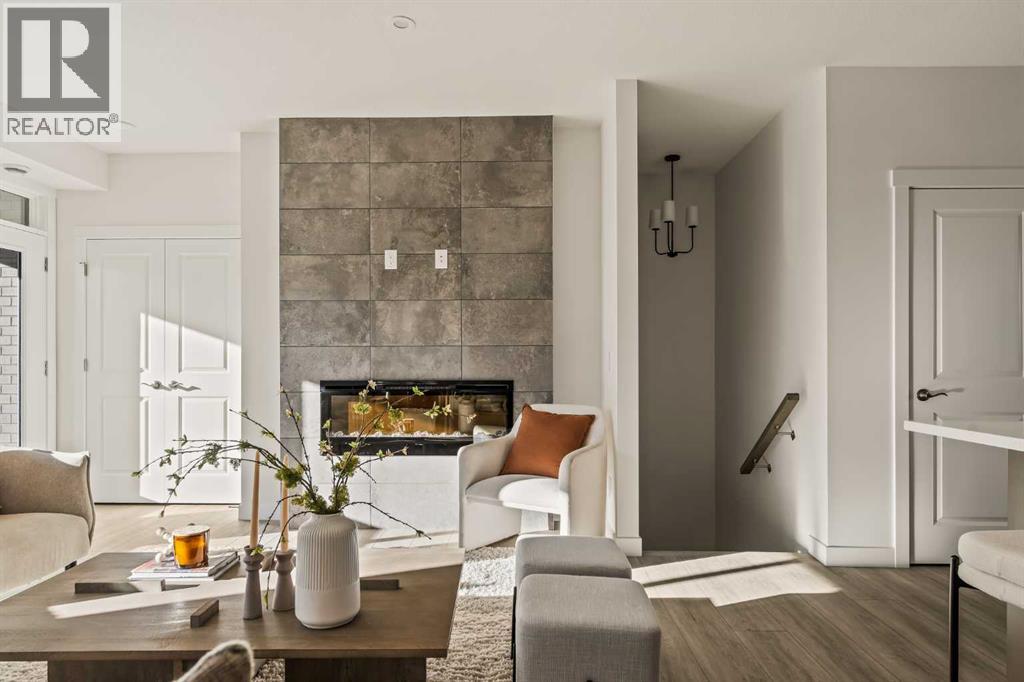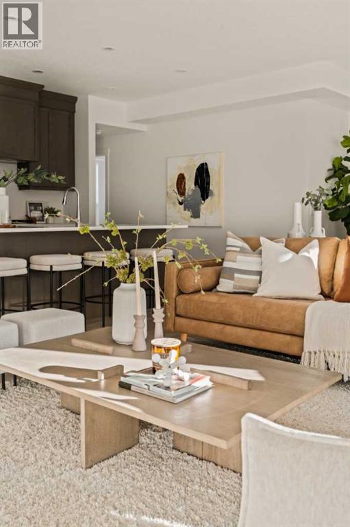 Welcome to the Regent at Crown Park, a beautifully crafted bungalow-style townhome offering true single-level living without compromise! This unique design combines the benefits of a bungalow lifestyle without compromising on storage or garage space, all while moving into a brand new beautiful home with full warranty! Thoughtfully designed with down-sizers in mind, this maintenance-free residence is perfect for those who travel or simply prefer a lock-and-leave lifestyle free from exterior upkeep, landscaping, or snow removal. This brand-new 3-bedroom, 2-bathroom home offers nearly 1,300 sq.ft. of well-planned living space on one level, plus a lower level featuring extensive storage and access to the oversized double garage. At the heart of the home, a stunning open-concept living area was created for effortless entertaining. The central kitchen seamlessly connects the living and dining spaces while a full wall of south-west facing windows floods the interior with natural light all year long. Timeless finishes include warm-tone natural wood shaker maple cabinetry, light quartz countertops, and a premium built-in appliance package featuring a gas cooktop, built-in oven, and chimney hood fan - ensuring the chef is always part of the conversation. A striking floor-to-ceiling tile fireplace anchors the great room, offering a warm focal point and comfortable seating for gatherings. The spacious dining area easily accommodates a full table and buffet, providing exceptional furnishing flexibility. Privately positioned at the rear of the home, the primary retreat features a generous walk-in closet and spa-inspired ensuite with dual vanities and a tiled walk-in shower with 10mm glass. A centrally located laundry room with upper cabinetry and folding counter enhances everyday convenience while naturally separating the primary suite from the secondary bedrooms. Two additional bedrooms and a full bathroom provide versatility for guests, a home office, media room, or creative sp ace - while maintaining excellent resale appeal. The lower level offers a large storage room and an oversized utility room (approx. 17' x 7') ideal for hobbies or seasonal storage. A double closet and oversized double attached garage completes the interior features on the lower level. Step outside to your private covered southwest-facing patio spanning over 26 feet that overlooks the park and includes a gas line, hose bib, and A/C rough-in - the perfect setting for relaxed outdoor living and future upgrades in mind. Bungalow-style townhomes with double attached garages are exceptionally rare. Enjoy added peace of mind with comprehensive builder warranty coverage plus Alberta New Home Warranty. Located minutes from downtown and surrounded by established amenities, Crown Park offers the confidence of a mature community paired with the comfort of a brand-new home. This is one of the very last brand new opportunities remaining - a truly rare opportunity you won’t want to miss! (id:55577)