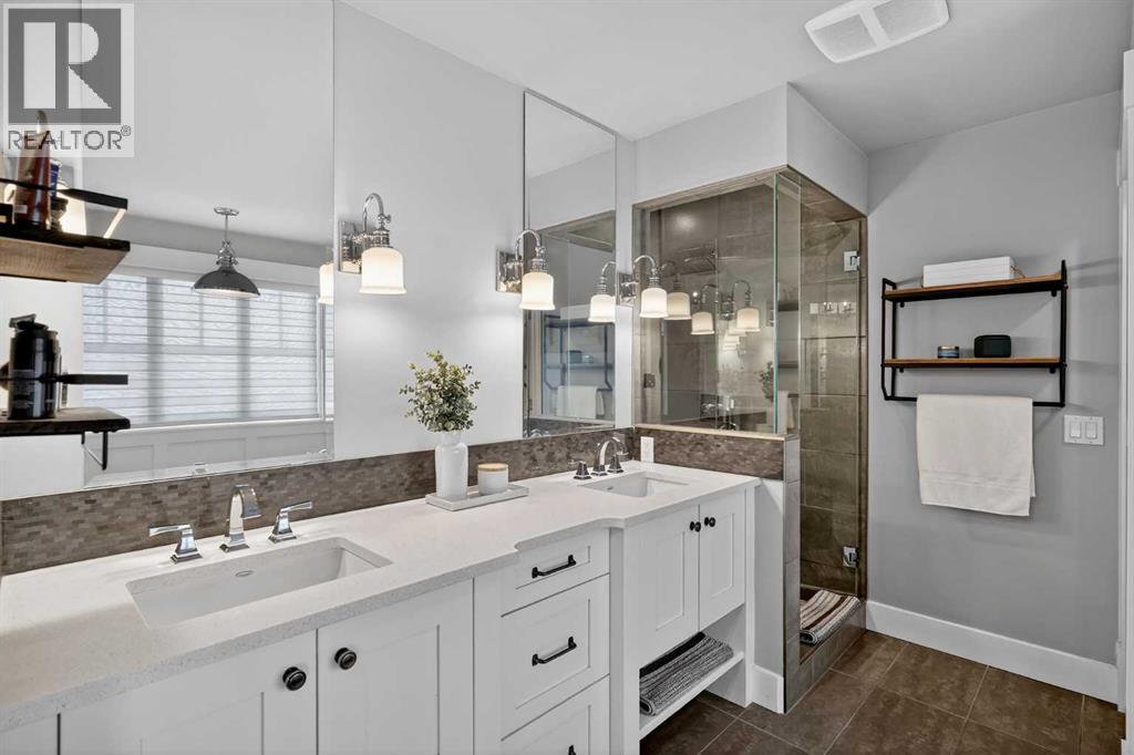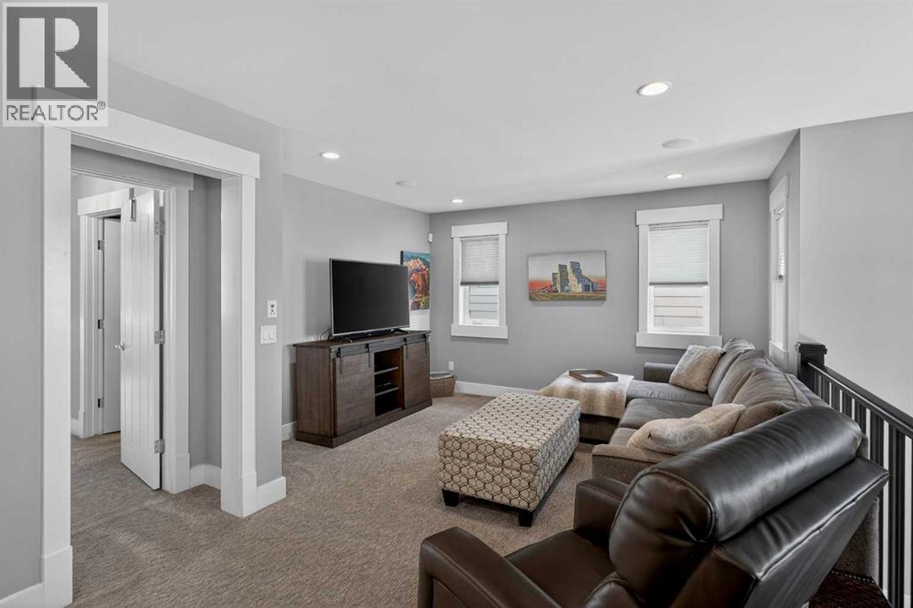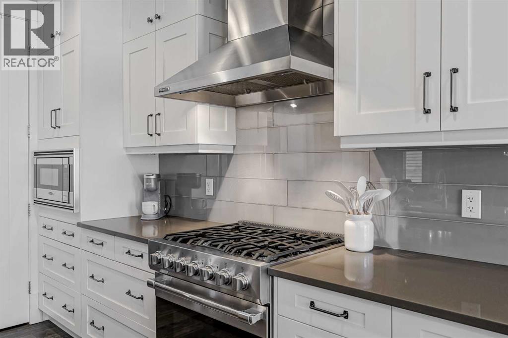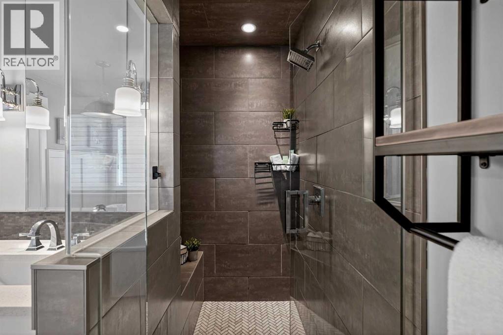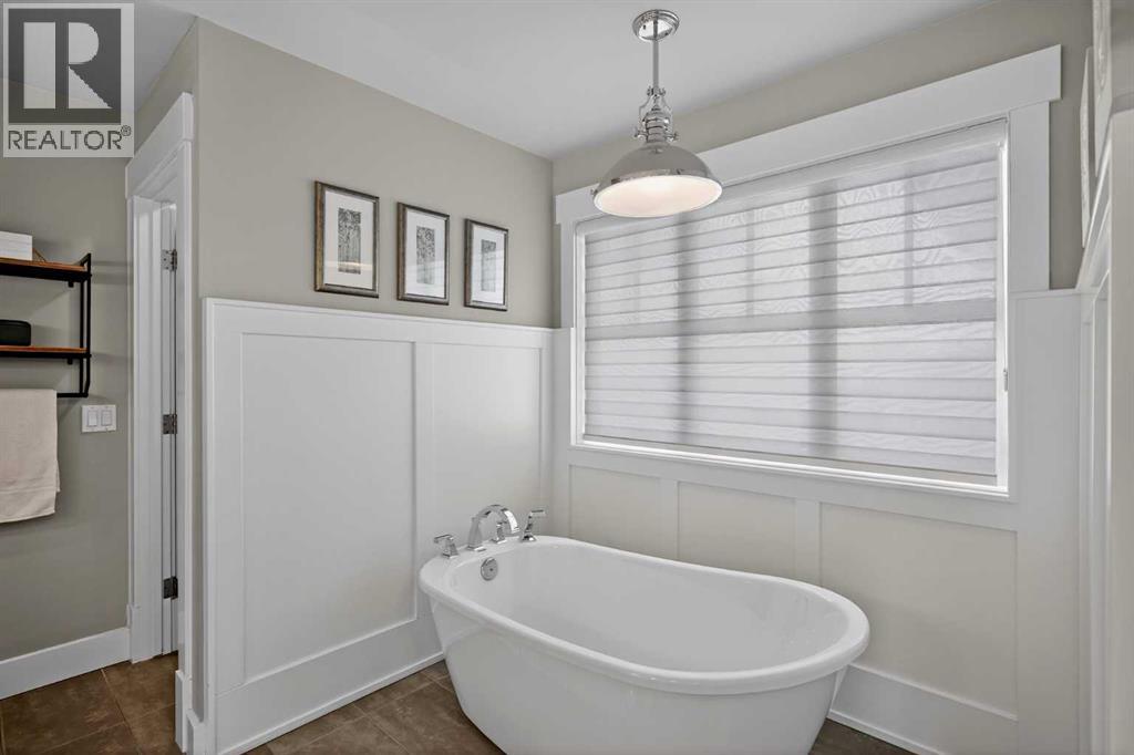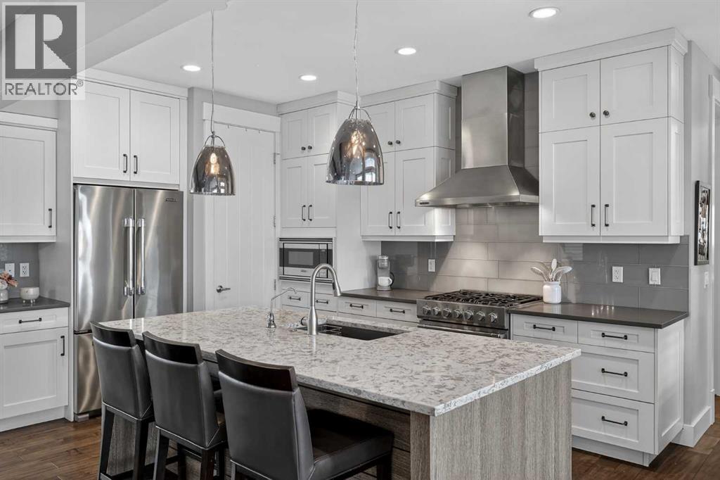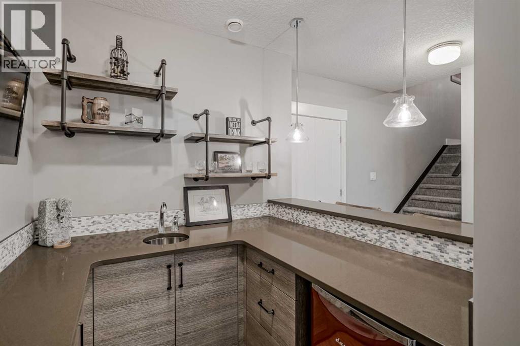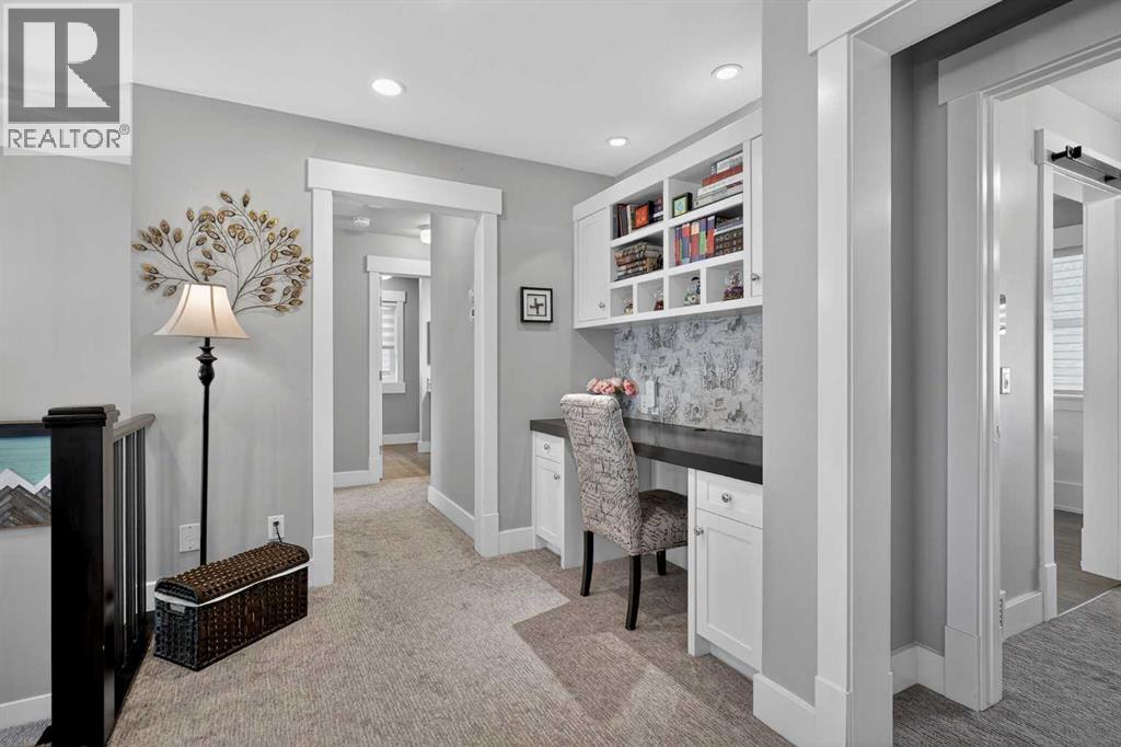 This former Crystal Creek show home is the definition of opulence and luxury. Located directly across the street from Coopers Pond, this 4 bedroom, 3.5 bathroom stunner truly has it all. Curb appeal is evident as you approach the home welcoming you before you even enter. As you come inside, you are immediately greeted with high ceilings and gorgeous wood floors that span the main level. Your eyes will be drawn to the infinite details that are impossible to miss such as the wood beams on the ceiling above your dining room, which is framed with a double-sided fireplace set into a stone wall and accompanied by a classy wine bar. The kitchen is a chef's dream equipped with ultra-high-end Viking stainless steel appliances, 2 different types of stone countertops, tons of cabinetry and drawers featuring every upgrade available when the home was constructed. The open floor plan flows from your kitchen into your dining room and through to your large living room overlooking the north facing back yard making this the perfect space for entertaining or for quiet nights at home with the family. A beautiful sliding door allows for ease of access to your large, covered deck, creating the best indoor/outdoor cooking and dining experience. Your half-bathroom with custom wallpaper and a fully equipped laundry room finish off the main level before heading upstairs. With a truly unique design feature exclusive to this home, the home office is a show piece in itself, featuring a gorgeous feature wall framing 3 large south facing windows looking over Coopers Pond and bathing the space in natural light. Your home office has been taken to a level you have never seen before! The bonus room is a great size for family movie nights and offers you a built in desk area for homework or arts and crafts. The primary suite is something you would see in a high end New York hotel and is the perfect space to make your own retreat. The bedroom itself is huge and will easily fit your king-size bed and al l of the accompanying bedroom furniture. The spa inspired ensuite is to die for with gorgeous tile floors, an upgraded dual vanity, a massive soaker tub, and a walk-in shower with custom tile work and a seat. Your large walk in closet finishes off the primary suite before heading to the second and third bedrooms which are in a separate wing upstairs. Both are a great size and have direct access to the 4 piece bathroom located between the two bedrooms. The basement is fully finished and is an entertainer's dream. You have your own wet bar with a fridge as well as a games area and large living space making it optimal to host friends and family for the big game or just a game night at home. The guest bedroom is a great size and is tucked into a private corner of the basement right beside another full bathroom. This home has dual furnaces, dual air conditioners, in floor heating, a triple tandem garage ,and hot water on demand. The large lot gives you a tranquil back yard backing on to green space. (id:55577)