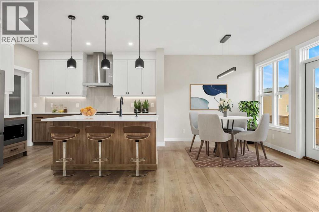 Nestled in the emerging northwest community of Amblefield, This home offers a harmonious blend of modern design, thoughtful functionality, and timeless finishes.The main floor showcases an open-concept layout anchored by a spacious flex room, perfect for a home office, study, or guest space. The kitchen is both elegant and practical, featuring quartz countertops, full-height cabinetry, and a layout designed to inspire any home chef. The adjoining great room is an inviting space for gathering, enhanced by a fireplace and pot lights that create warmth and ambiance. The knock-down ceiling texture adds a refined finish that ties the entire main level together with understated sophistication.Upstairs, the home offers a thoughtful family-focused design with a central bonus room that provides a natural separation between the primary bedroom and the secondary bedrooms. The full laundry room on this level adds everyday convenience, while the 5-piece ensuite is a retreat of its own—complete with dual sinks, a tile and glass shower, a deep soaker tub, and a spacious walk-in closet.Designed for future flexibility, this home includes a separate side entrance leading to the basement, which comes complete with rough-ins and a 9’ foundation—ready for your personal customization or future suite potential (subject to municipal approval).With its east-facing backyard, residents can enjoy sunny mornings and shaded evening gatherings, perfect for entertaining or relaxation. 62 Amblefield Common NW is more than just a new build—it’s a home that combines elegant finishes, smart design, and family-friendly comfort in one of Calgary’s most exciting new neighborhoods. Whether you’re seeking versatility, style, or the opportunity to personalize your space, this home delivers on all fronts. Don't miss your chance to view this property - visit the showhome today! (id:55577)