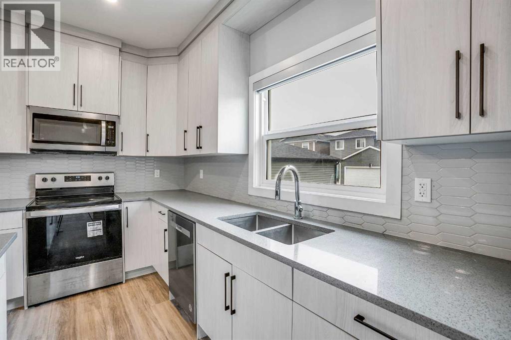 HUGE PRICE REDUCTION!!! Discover this stunning detached home in Airdrie, perfectly situated to offer serene pond views right from your doorstep. From the moment you enter, the well-thought-out floor plan and sophisticated finishes will immediately impress. The main floor boasts a bright, open-concept layout, featuring a versatile office or extra living area near the foyer, a spacious family room, and a stunning kitchen with quartz countertops, an undermounted sink, sleek white accents and a walk-in pantry. A practical mudroom and a convenient 2-piece bathroom complete the space. Upstairs, you’ll discover three well-appointed bedrooms, including a spacious primary retreat featuring a walk-in closet and a private 4-piece ensuite. The additional bedrooms are generously sized, easily accommodating queen beds, and share a modern full bathroom. A conveniently located laundry room adds extra storage and functionality.The unfinished basement, with its separate side entrance, offers endless possibilities — whether you envision a customized rec room or an income-generating Basement. Combining style, functionality, and an unbeatable location close to amenities, this Midtown gem is ready to become your new home. Don’t miss out on this fantastic opportunity! (id:55577)